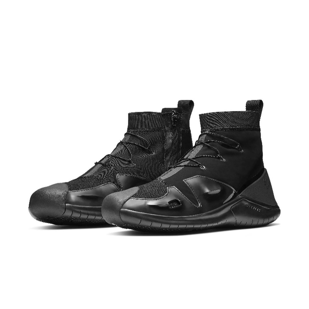 Insieme i due partner hanno creato una Free TR 3 SP, una sock-runner ispirata alla silhouette delle hiking shoe del brand americano, caratterizzata da suola Free e da supporti laterali traslucidi in plastica sulla quale è stata montata un’imponente suola prodotta da Vibram facilmente rimovibile grazie a degli strap. Completano il look uno Swoosh sulla caviglia laterale, un altro più grande stampato sul lato mediale, e suole interne in pelle co-branded. Prodotta in due colori, "Black" e "Light Bone", la nuova Nike Free TR 3 SP firmata da Matthew M. Williams sarà rilasciata nei prossimi mesi.