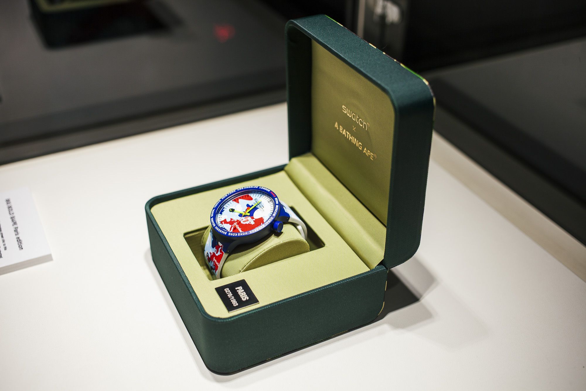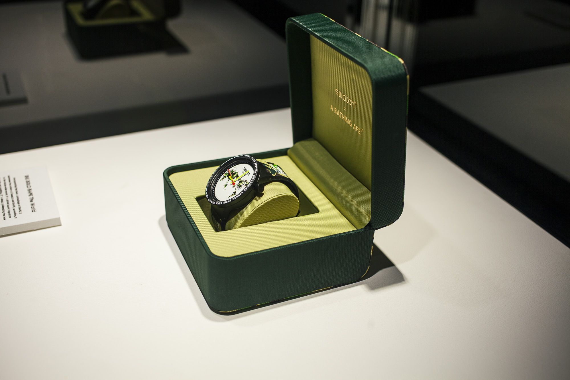 Se A Bathing Ape è uno dei brand di riferimento dello scena street, Swatch - fondata solo 10 anni prima da Nicolas Hayek - rappresenta un'icona nel mondo dell'orologeria casual. Pop, originale e forte di un heritage che affonda le sue radici in Svizzera, Swatch è stata protagonista di una rivoluzione nel mercato degli orologi, riuscendo a proporre prodotti a prezzi accessibili con un gusto iconico.