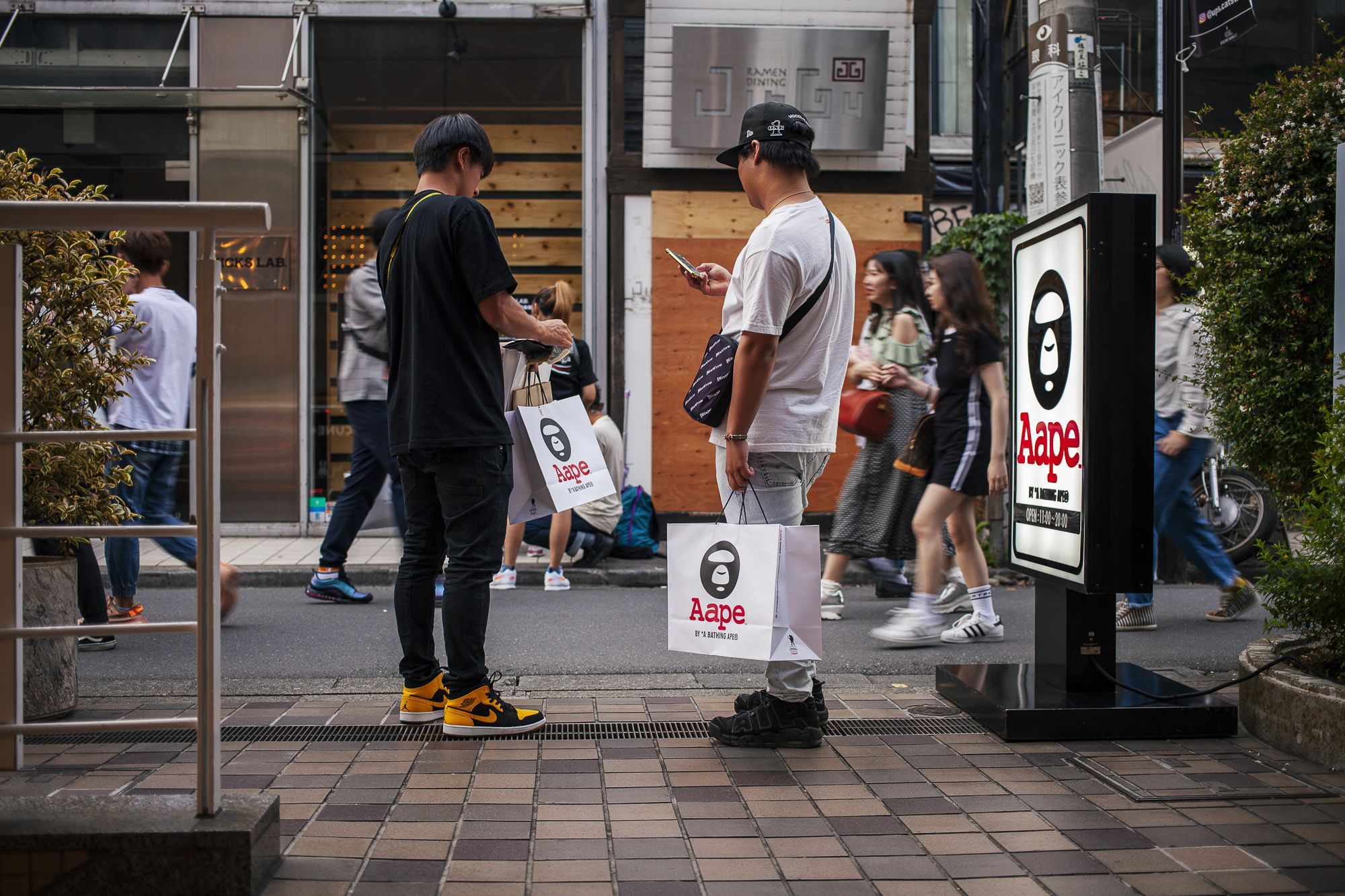 È proprio nel distretto di Harajuku a metà degli anni '90 che nasce la cultura street. Ispirati dalle subculture occidentali, in particolare punk e l’hip-hop, due ragazzi - Jun "Jonio" Takahashi e Tomoaki Nagao - conosciuto allora e ancora oggi come NIGO - aprirono il loro negozio chiamato NOWHERE. Era in una posizione scomoda, difficile da notare all'epoca, poco prima di Internet, lo shopping funzionava essenzialmente con il passaparola. Lo spazio del negozio era diviso in due, e la metà di NIGO era dedicata principalmente alla produzione di graphic tee: era il 1993 e stava nascendo A Bathing Ape, uno dei marchi più popolari dello streetwear giapponese.