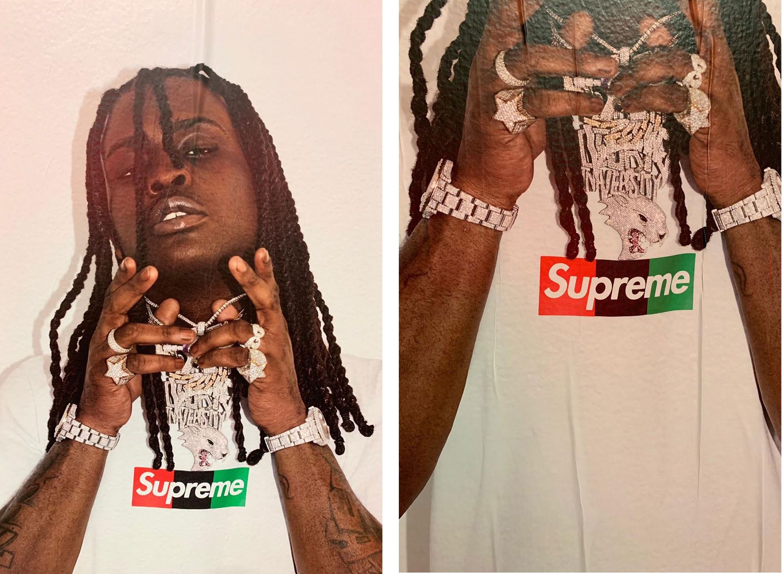 Una Box Logo di Supreme mai vista prima è esposta alla mostra di Virgil Abloh Indossata dal rapper Chief Keef con un box logo inedito
