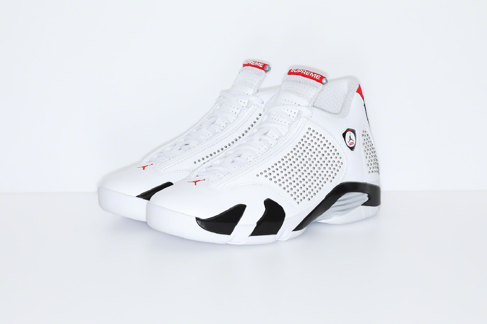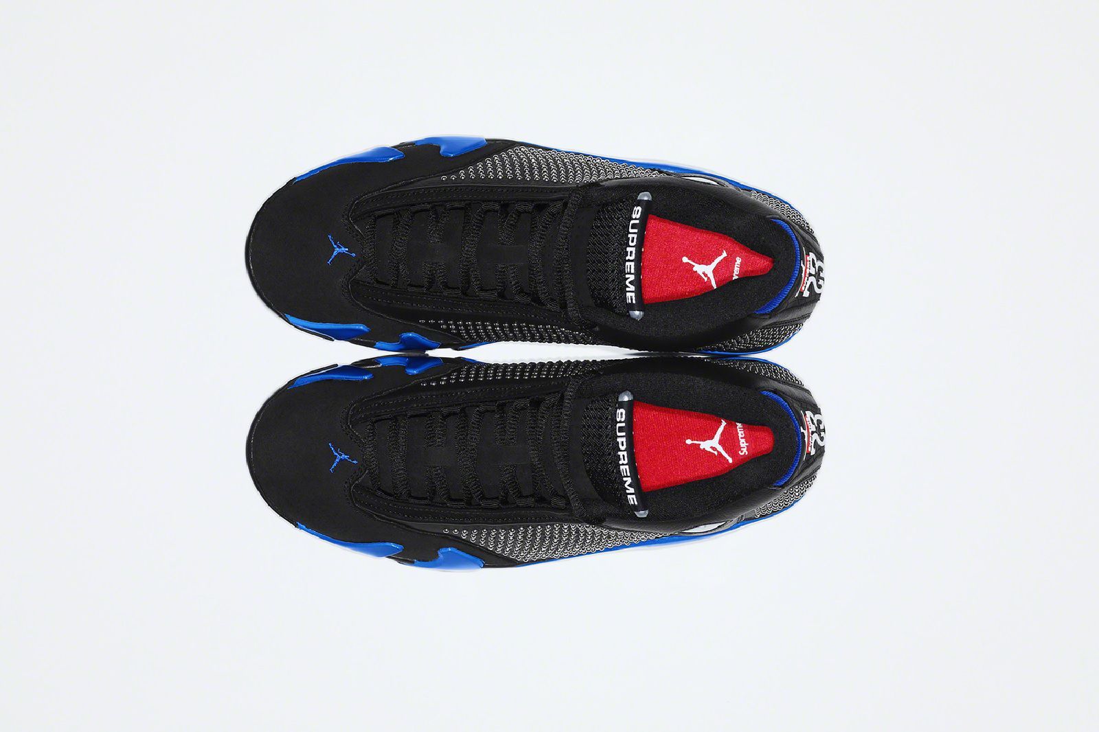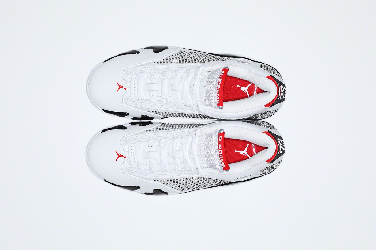 Dopo una prima collaborazione nel 2015, che comprendeva diverse varianti di Jordan V e alcuni capi d’abbigliamento, Supreme NY torna ad unire le forze con Jordan Brand e svela una nuova Air Jordan XIV. La sneaker, un culto da quando l'ha indossata Michael Jordan durante il "Game 6" delle finals NBA del 14 giugno 1998, è ispirata alla passione di MJ per la sua Ferrari 550 Maranello ed ora torna ora con un look ancora più deciso. La tomaia è in pelle e nabuk con borchie metalliche e accenti di rosso; pannelli a contrasto dell'intersuola, linguetta in mesh; co-branding e “23” stampato sul tallone. Realizzata in esclusiva per Supreme NY, l'Air Jordan XIV sarà proposta in due varianti di colore e sarà disponibile nei negozi di New York, Brooklyn, Los Angeles, Londra, Parigi e online il 13 giugno; in Giappone arriverà solamente il 16 giugno. Il prezzo previsto dovrebbe essere circa $248.