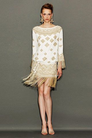 E' un tribale elegante impreziosito da frange, strascichi e pieghe. Largo utilizzo di tessuti lucidi e tanto color oro a ricalcare la raffinatezza della collezione; il tutto è abbinato a imponenti accessori: turbanti in perfetta sintonia con gli abiti, lunghi orecchini, larghi bracciali che avvolgono metà braccio.