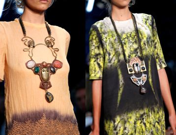 I look sono arricchiti da importanti collane con pietre, gufi e scarabei, piccoli accorgimenti che farebbero sentire chi li indossa delle vere sciamane.
