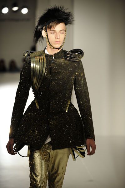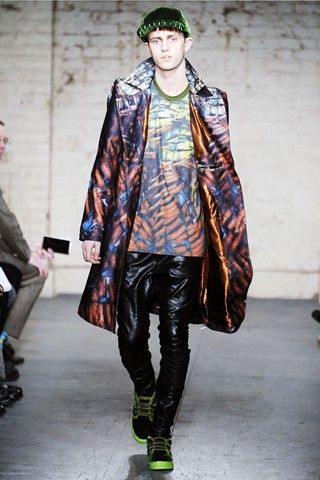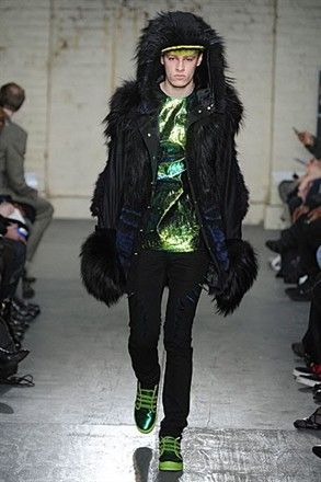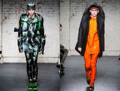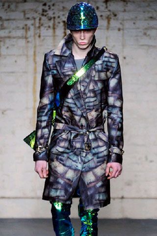Contraddistinta da un occhio particolarmente sovversivo e ispirato alla scena socio-politica contemporanea, caratterizzata da un leitmotiv piuttosto militaresco, sentiremo sicuramente parlare in futuro di Katie Eary. La giovane londinese diplomata al Royal College of Art nel 2008 ha debuttato sulle passerella della London’s Man Fashion Week con una collezione più unica che rara: colori improbabili, materiali tecnici e chiari riferimenti a scenari di guerra e turbamento sono i temi dominanti nella sua catwalk.