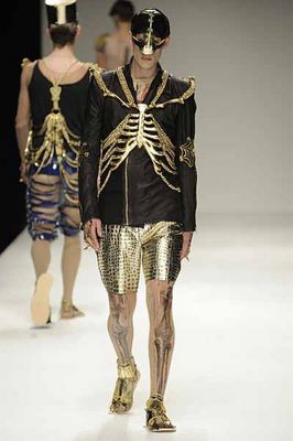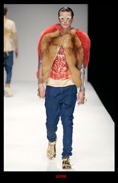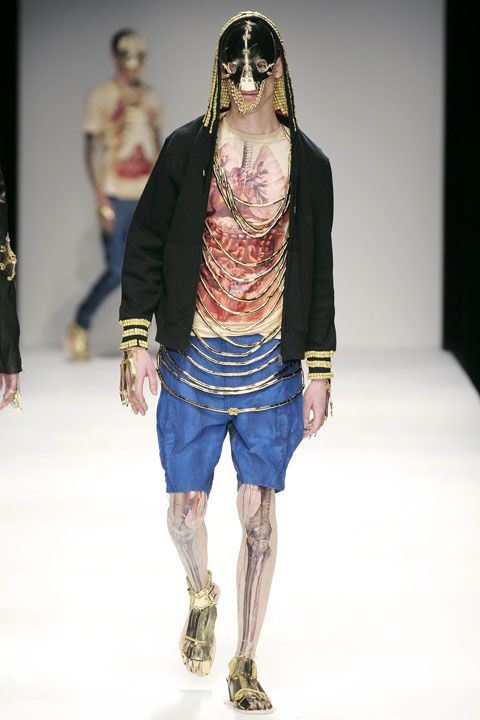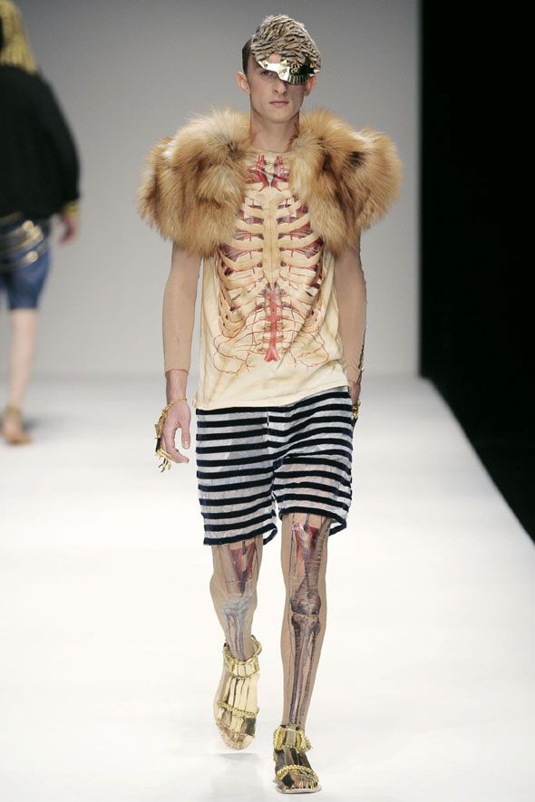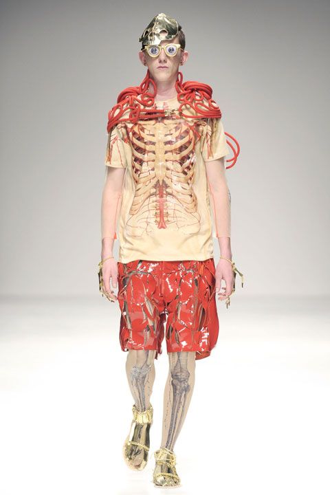 L’audace innovatrice che, “come venditrice di pop-corn in un cinema all’età di sedici anni, si strappava la divisa per non omogeneizzarsi e sembrare un aneroide (cit. Vogue)” propone un quadro piuttosto calzante per l’attuale momento storico e delle texture un pò scientifiche, quasi alla Hermann Nitsch: trame confuse, alternanza tra colori vividi e scuri e stampe raffiguranti il sistemi circolatorio e osseo del corpo umano, outfit dal tocco carnevalesco accentuati dal trucco piuttosto pronunciato da un use/abuse di accessori. Sull’onda innovativa tendente più al nipponico Comme des Garçon che all’avanguardia europea degli Antwerp Six, la Eary ha indubbiamente rivoluzionato una concezione stilistica ormai ripetitiva e ristagnante.