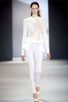 Ma Hakaan rappresenta innanzitutto un’importante conferma: il diktat estetico delle silhouette ultra strutturate è infatti già stato perfettamente interiorizzato dal pubblico della moda, istruito nel corso degli ultimi anni a suon di Balenciaga e Maison Martin Margiela, pubblico il quale si orienta quindi alla perfezione in questo trionfo di spalle squadrate, tagli, abiti geometrici e forme che sembrano quasi generate da righello e compasso.