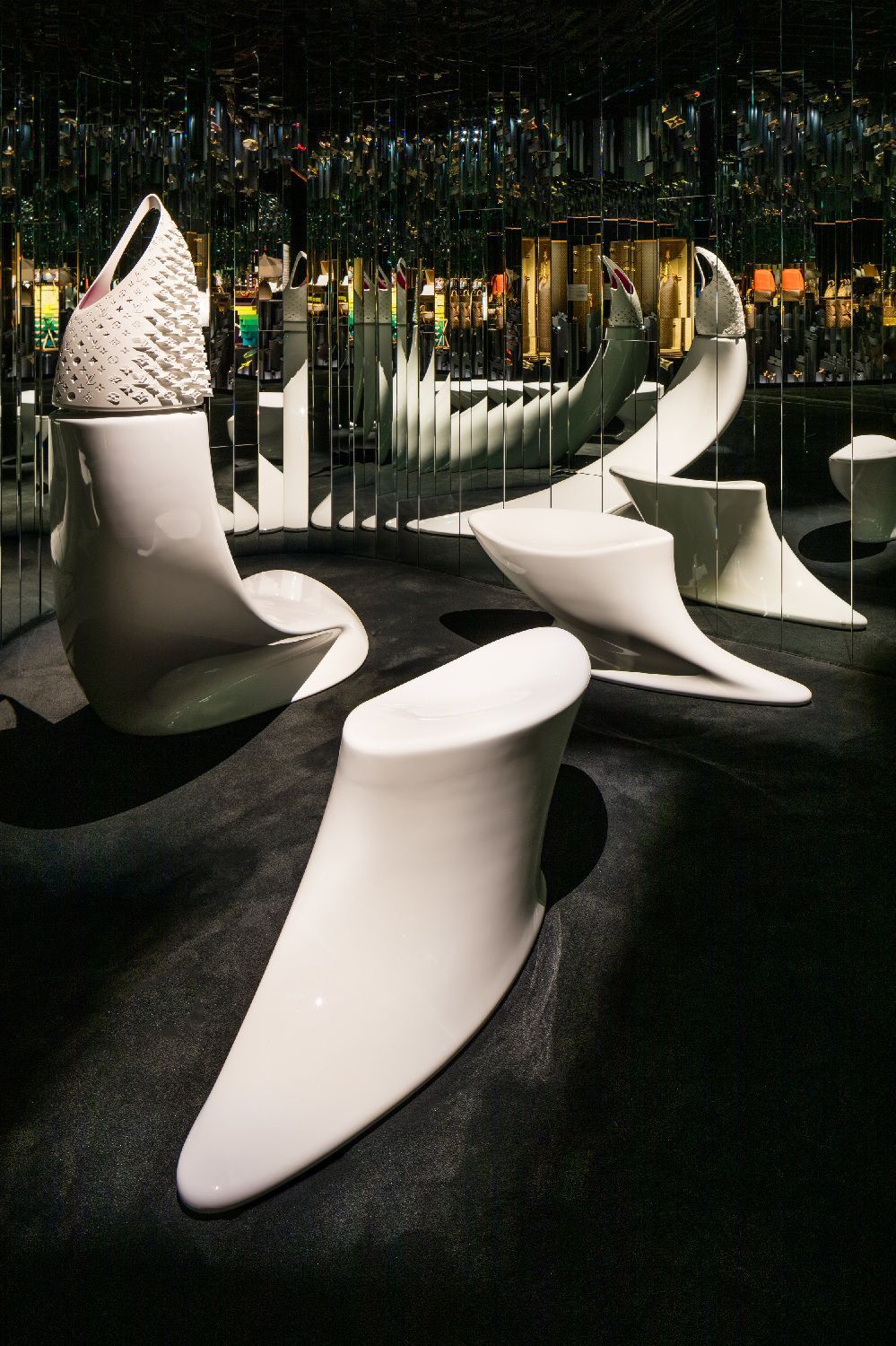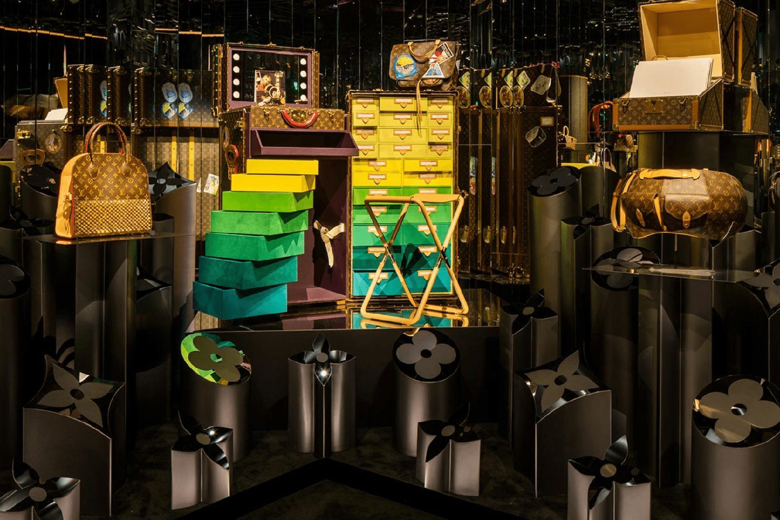 In 10 stanze distribuite su due piani, si snodano oltre 180 articoli rappresentativi dell’archivio del brand che mettono in scena il dialogo continuo di LV tra passato e futuro, patrimonio e modernità, savoir-faire e innovazione. Il viaggio visivo e interattivo inizia dal ritratto di un Louis Vuitton a 16 anni realizzato dal pittore americano Alex Katz e prosegue con una serie di spazi multicolore occupati da bottigliette di profumo art decò, mobili e bauli speciali dei primi del Novecento. Un pannello luminoso posizionato accanto ad una scultura in bronzo mai vista prima d'ora di Sylvie Fleury ci ricorda tutti gli artisti che hanno rielaborato l’iconico Monogram del marchio da Stephen Sprouse a Takashi Murakami, da Damien Hirst a Jeff Koons. In un’altra stanza troviamo le collaborazioni di Louis Vuitton con altri prestigiosi designer che hanno trasformato le tradizionali borse LV in pezzi unici nel loro genere, come il sacco da box creato da Karl Lagerfeld, un baule da fotografo realizzato di Cindy Sherman, una borsa-scultura di Zaha Hadid.