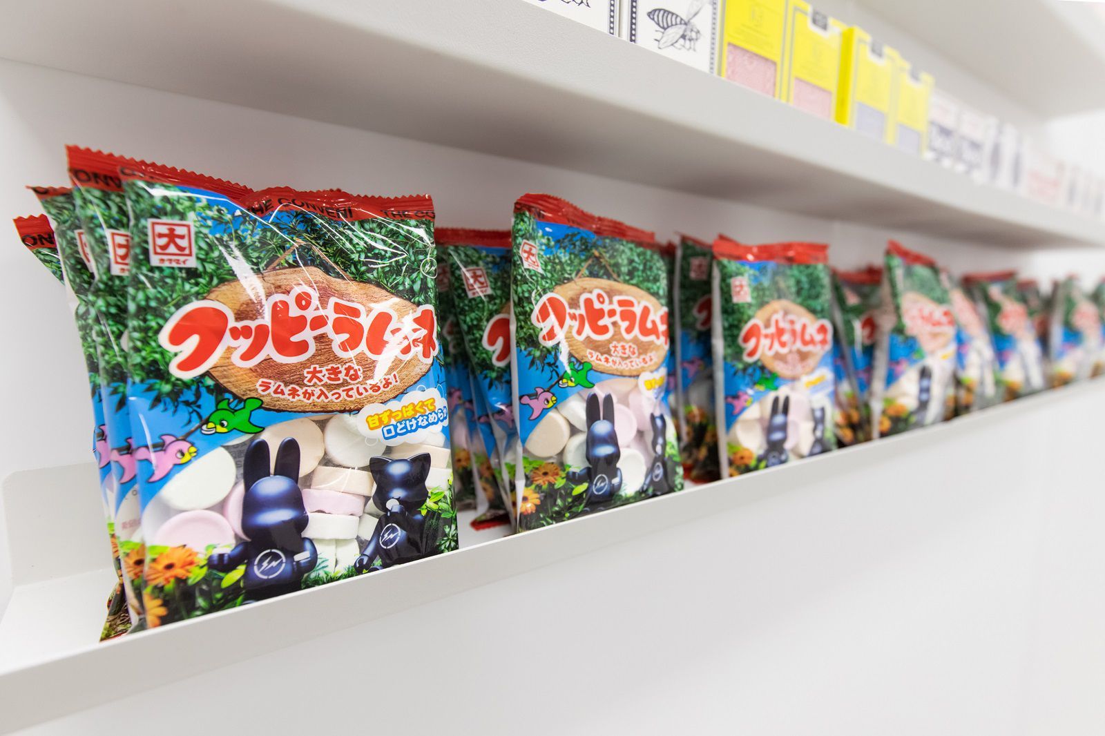 In collaborazione con HBX, la destinazione e-commerce di Hypebeast, il team del designer ricrea l’atmosfera di un classico minimarket, con tanto di scaffali e frigoriferi che espongono le bevande fredde. Disposti in bella vista in questi spazi ci sono una serie di prodotti di moda e lifestyle pronti all'uso, confezionati per parodiare gli autentici prodotti alimentari presenti in ogni convenience store giapponese: felpe, tees, cappelli, tappi, sacchetti, oggetti di cancelleria, tote bag, calzini e anche un'esclusiva t-shirt realizzata in partnership con HBX. Tutti arrotolati come onigiri wrap o in bottiglie di plastica e colorate lattine di soda, infilati in sacchetti di patatine o cartoni del latte.