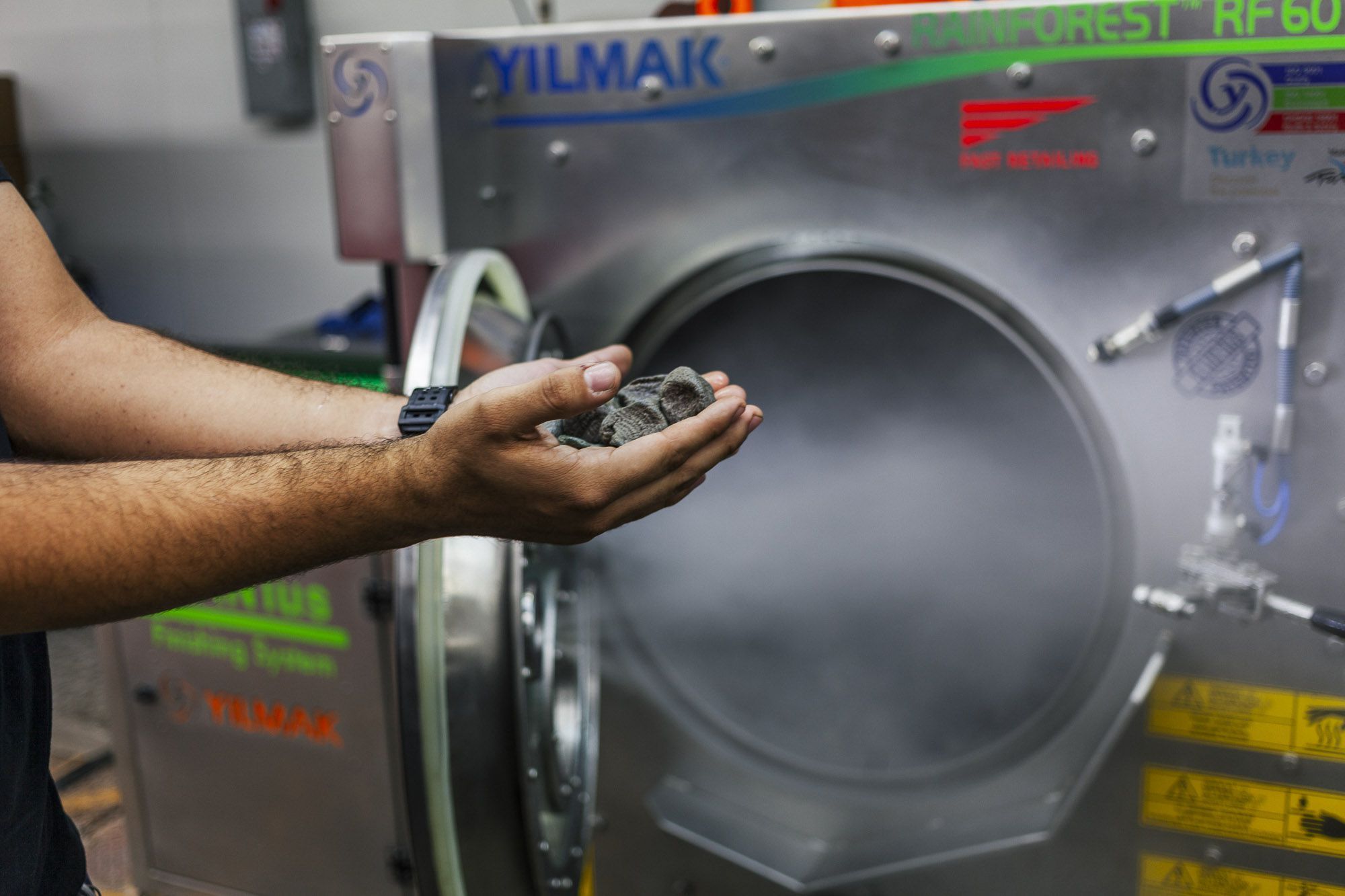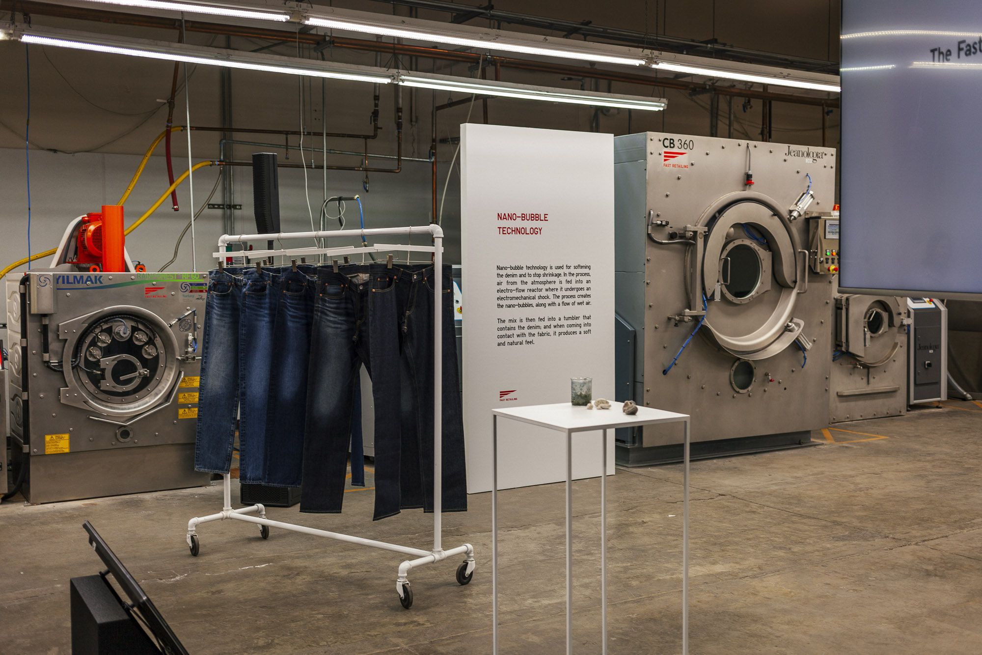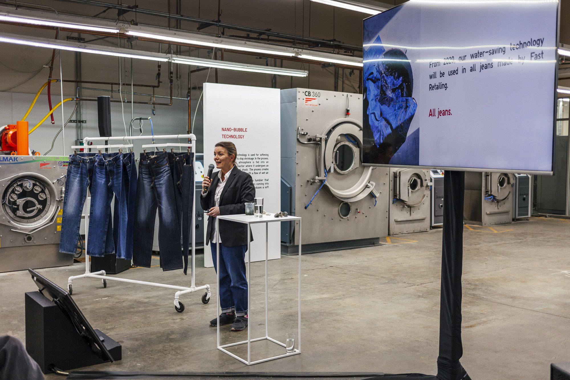 Fast Reatailing e il JIC hanno come obiettivo la totale eliminazione dell’acqua dal processo di lavaggio del jeans, il cui utilizzo ad oggi risulta ridotto del 99%. Le wash machine utilizzate al JIC, rispetto a macchinari tradizionali non immergono i capi in acqua ma usano una tecnologia di nanobubble che riduce quasi totalmente il consumo d'acqua. Tra le innovazioni nel lavaggio c’è anche quello di aver sostituito la pietra pomice - che nel tempo si deteriora provocando residui di polvere - con una pietra ecologica prodotta artificialmente.