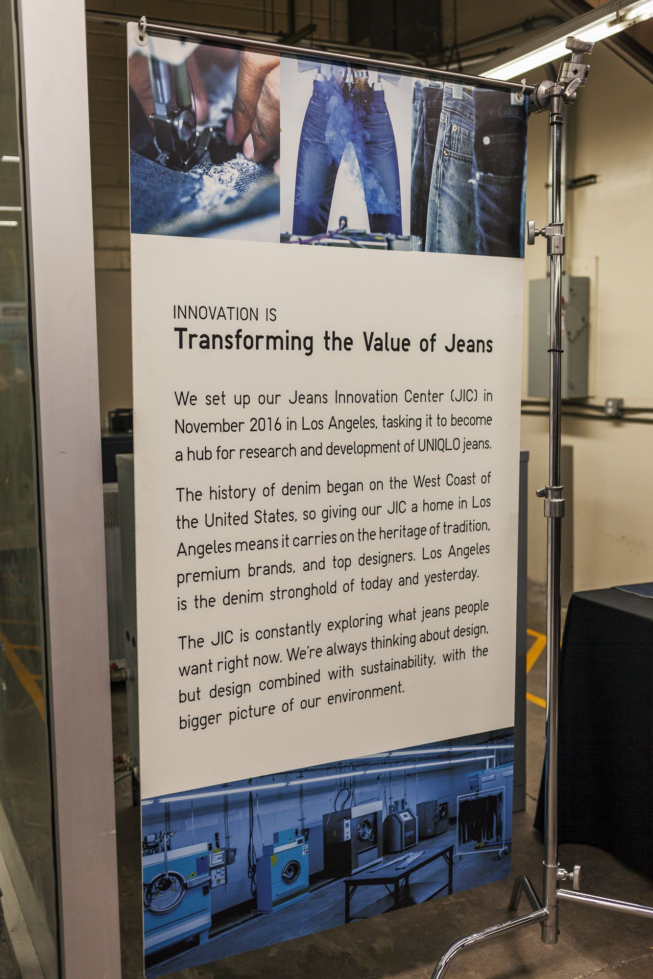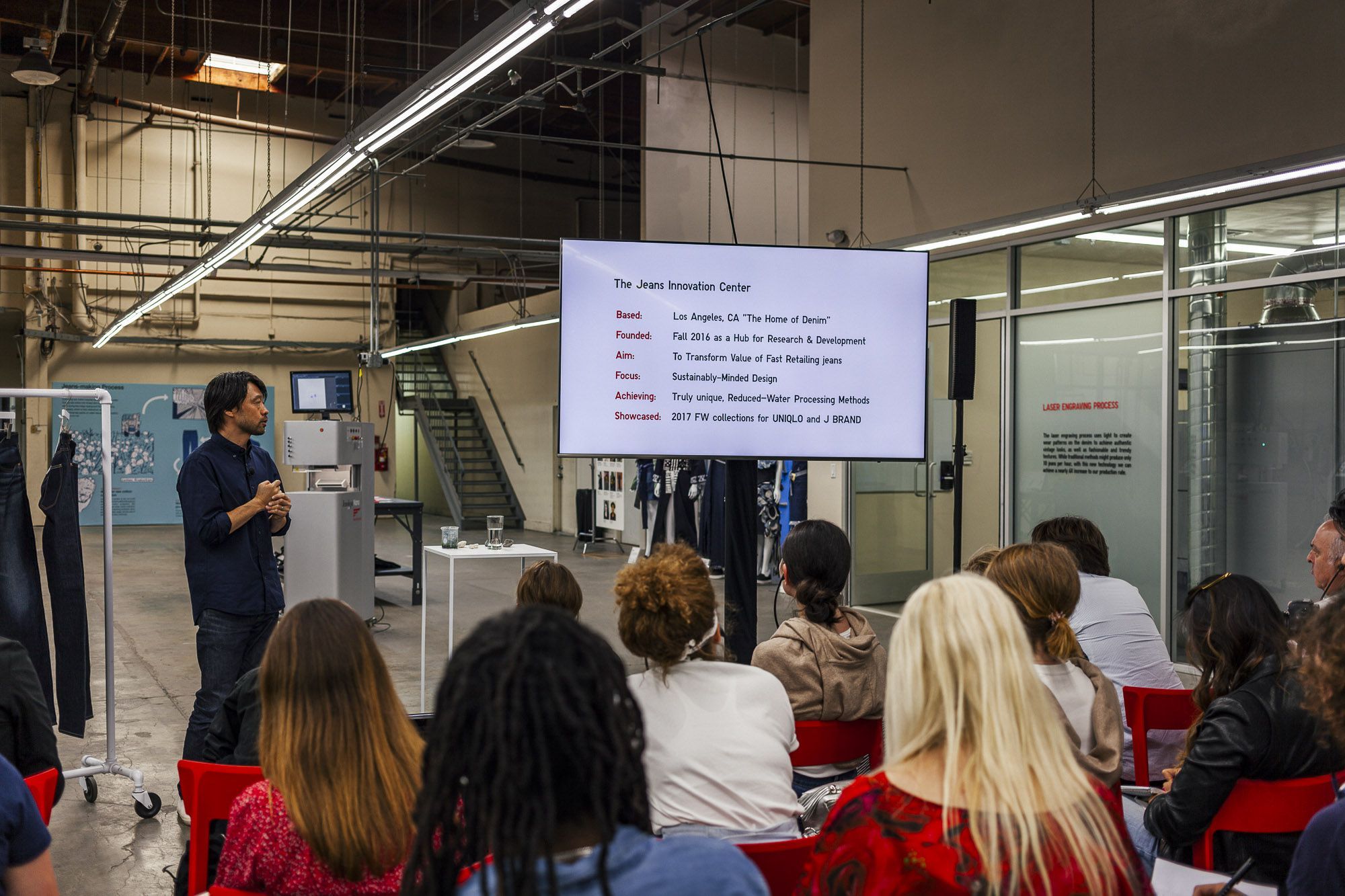 Tra i vialoni di downtown Los Angeles dove le palme si stagliano contro il cielo azzurro e il sole della golden hour illumina i grattacieli, Uniqlo ci ha portato a visitare il Jeans Innovation Center (JIC) cioè il laboratorio che si occupa di ricerca e sviluppo nel campo del jeans per Fast Retailing, il gruppo che possiede tra i vari marchi Uniqlo e J Brand. Entrando nella warehouse si ha l'impressione di trovarsi in una fabbrica del futuro: ci sono enormi macchinari in metallo simili a lavatrici su un lato e robot automatizzati dotati di raggi laser sugli altri. Al centro della sala Masaki Matsubara, Yukihiro Nitta e Veronique Rochet - rappresentanti di Fast Retailing - stanno per spiegare per la prima volta ai giornalisti da tutto il mondo come e perché il modo di produrre i jeans nel JIC è una piccola rivoluzione nel campo della sostenibilità della moda.