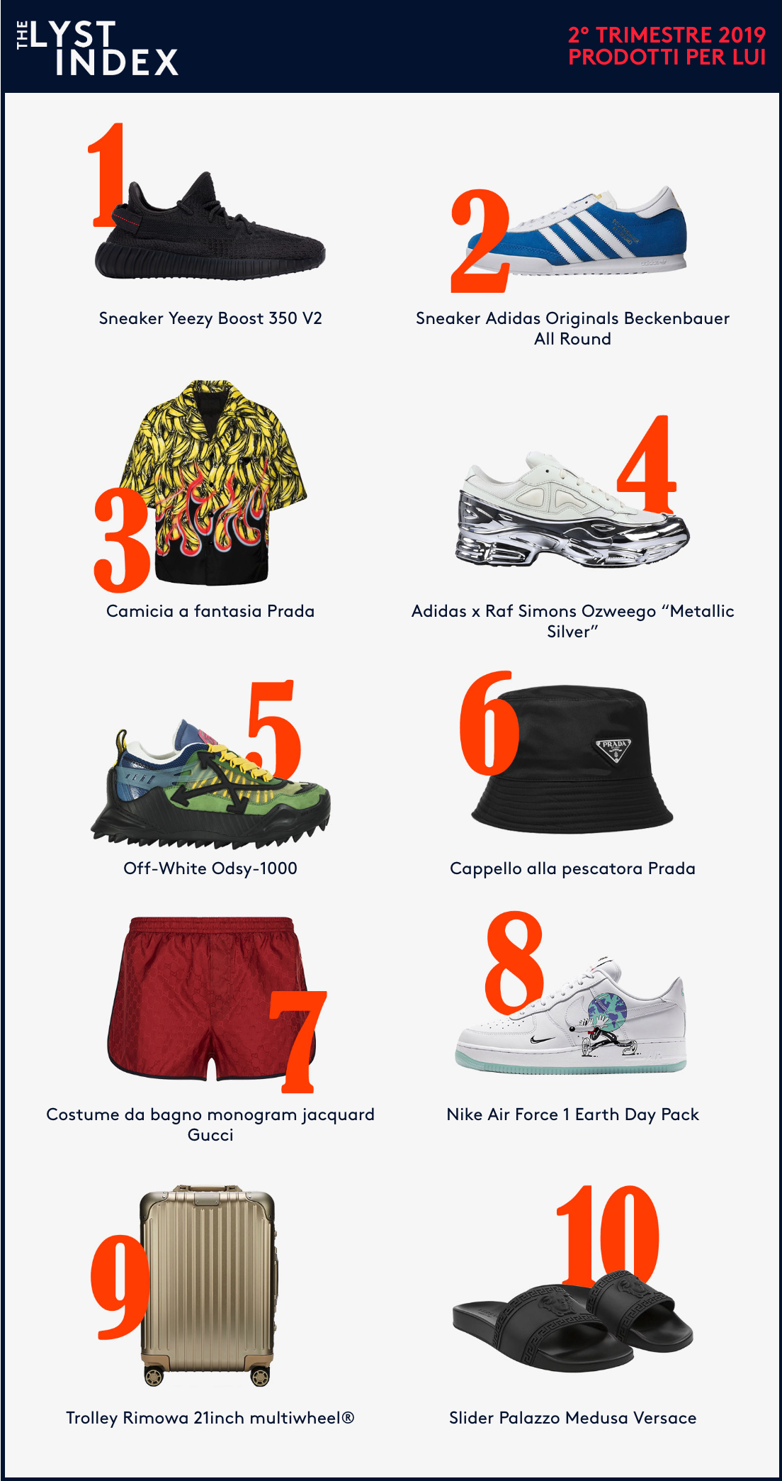 I 10 item da uomo più cercati nel secondo trimestre del 2019 Tanti must have dell'estate nella classifica stilata da Lyst Index