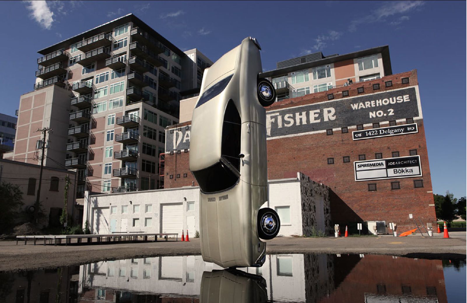Una curiosità: gli scatti di Tyron Lebone con l’auto posizionata sottosopra ricordano l’installazione History of Suspended Time: Monument for the Impossible di Gonzalo Lebrija.