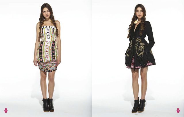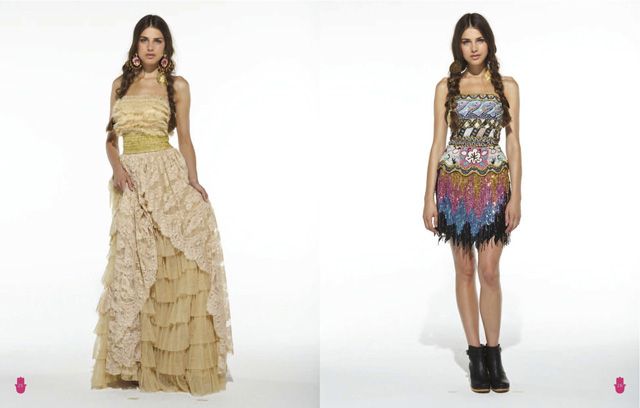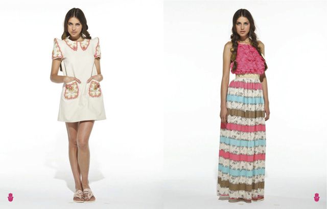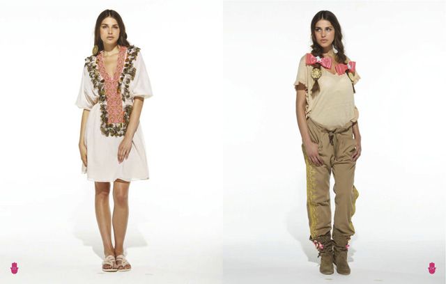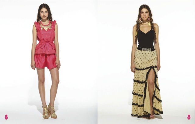 MANOUSH è colori accesi, dolci tagli e disegni divertenti e per la bella stagione propone un affascinante mix di maxi dresses e gonne fruscianti, strati di chiffon, abiti peplo, capi chic, speciali, impreziositi da perline o da minuziosi dettagli rilucenti. Immancabile il set di lingerie, Indian Boots, zoccoli, zeppe e a completare il quadro un corredo di gioielli dorati propriamente della tradizione zingara.