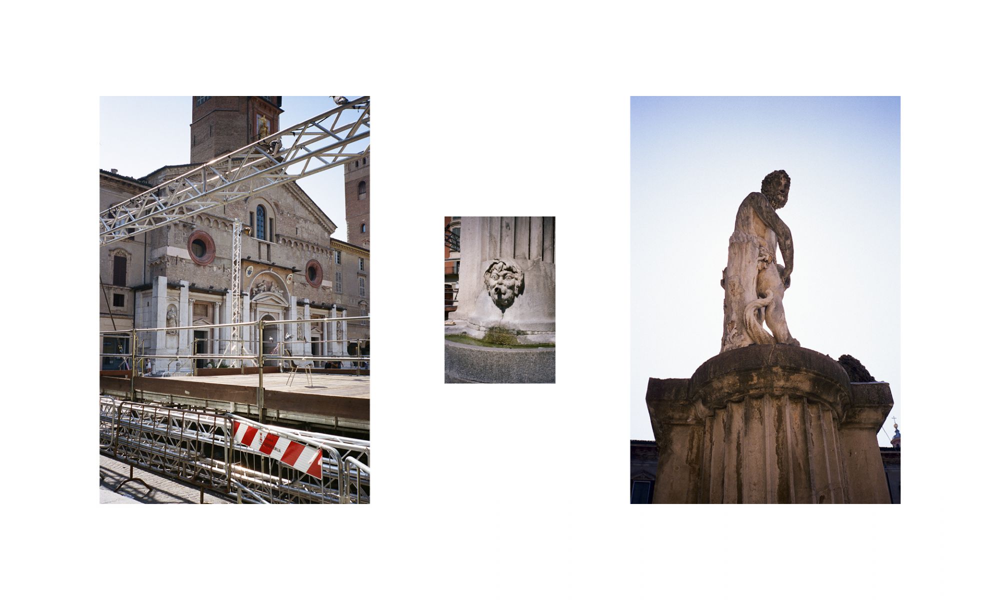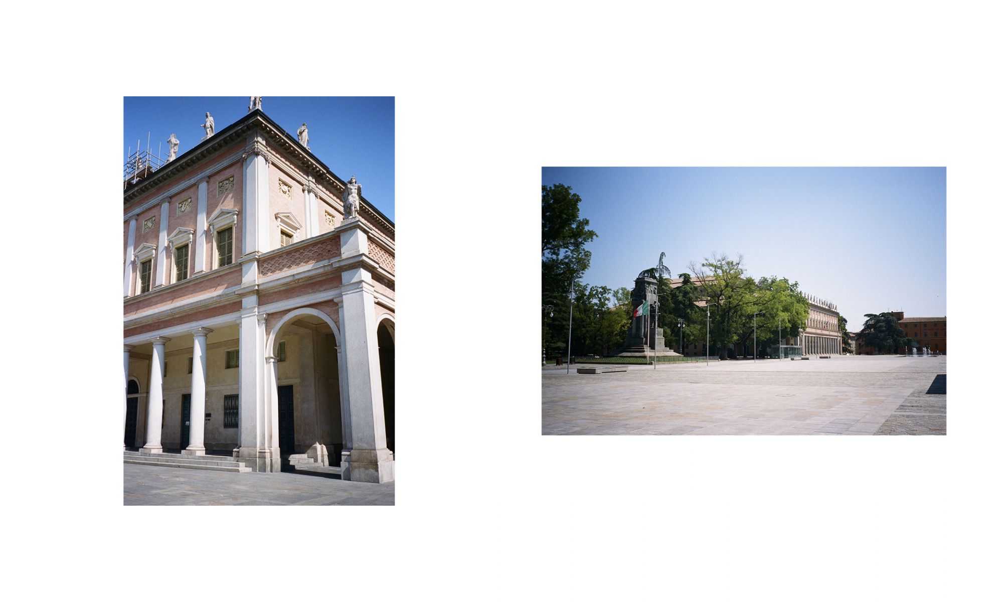 Le piccole vie del centro sono praticamente deserte, con una buona parte di negozi chiusi per ferie o che si animano solo nelle ore notturne, mentre le piazze principali sono rifugio per anziani o per chi non è ancora riuscito a godersi qualche giorno di vacanza e cerca riparo dall'aria umida della pianura padana. Ma è proprio in questi momenti di desolazione che il paesaggio urbano si trasforma e si rivela in tutta la sua bellezza. Dai leoni di piazza San Prospero alla statua del Crostolo in piazza Prampolini, dal teatro municipale alla natura del parco del popolo, grandi spazi aperti si raccolgo all’interno di questa città del Tricolore.