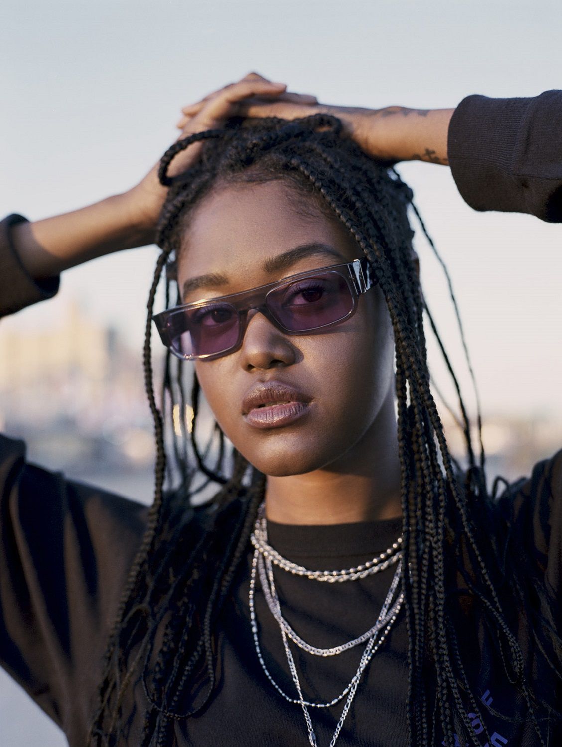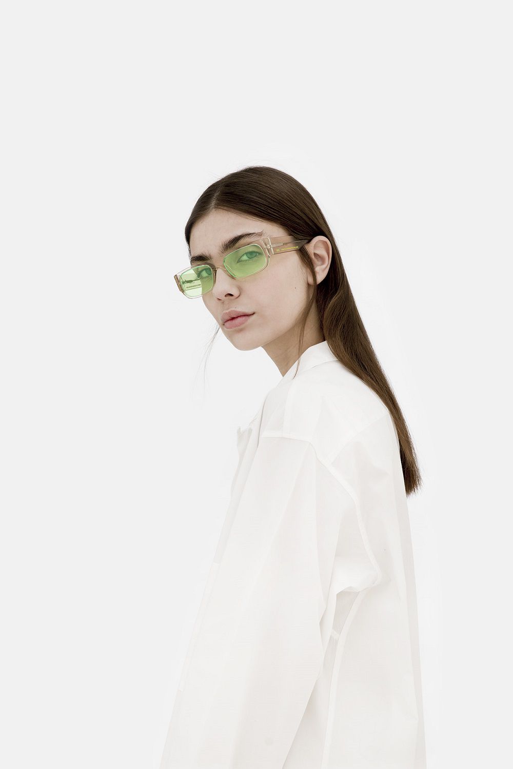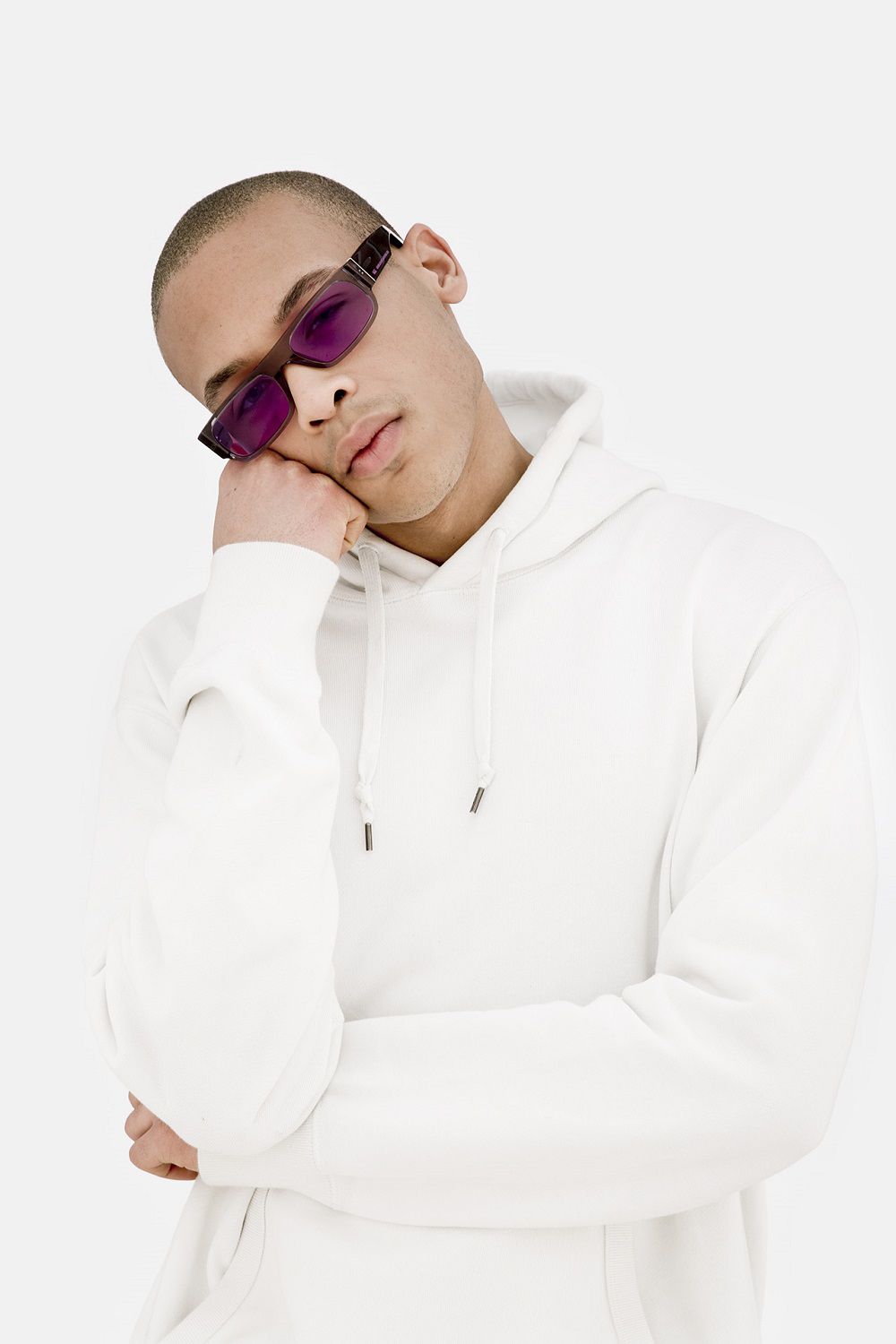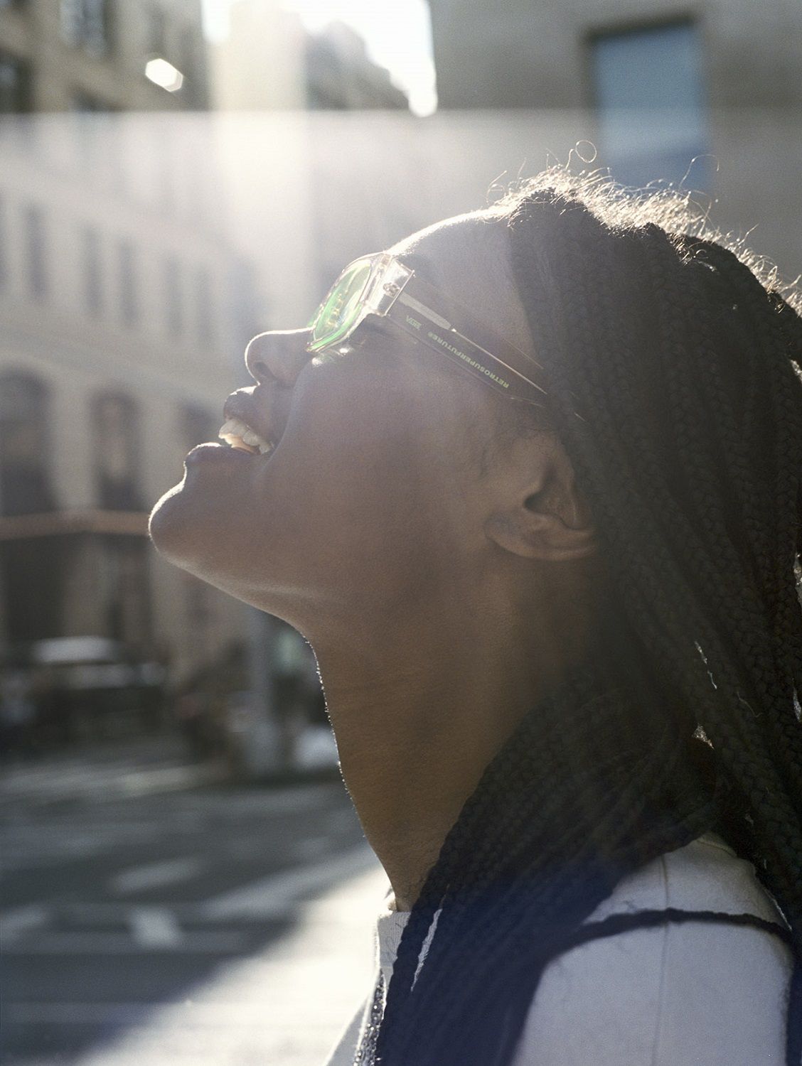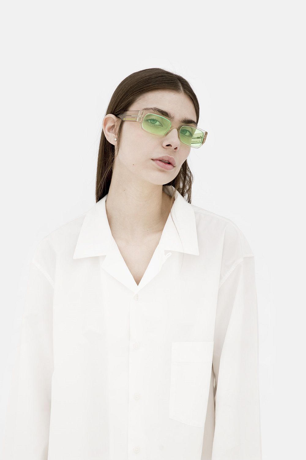 La nuova versione di RSF Smile, ispirata alle classiche icone street, presenta un design unico anni '90, con profilo basso e spesse stanghette, abbinate a lenti viola o lime e un cristallo di acetato nero o kaki. Completano il look scritte grafiche sull'esterno del telaio.