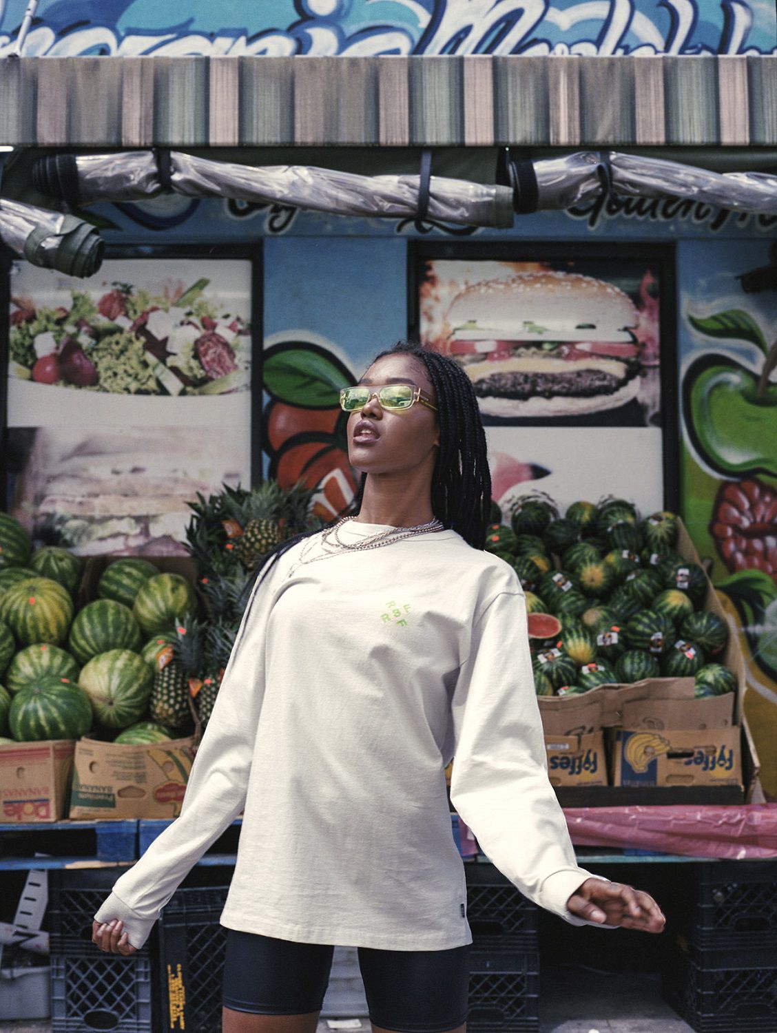 L’ultimo capo della capsule è una tee a maniche lunghe in cotone di qualità premium con dettagli grafici gommati stampati.