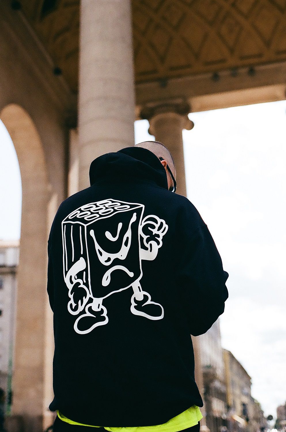IUTER ha deciso di omaggiare l’ultimo lavoro del produttore Night Skinny con una capsule collection. Il progetto, intitolato Mattoni, come il nuovo album di Skinny in uscita oggi, comprende due felpe con cappuccio, due t-shirt, un pantalone di tuta e un set di patch, declinati in nero, viola e rosa. Tutti i pezzi, disponibile online su iuter.com, sono decorati con un simpatico mattoncino cartoon disegnato da Daniel Sansavini.