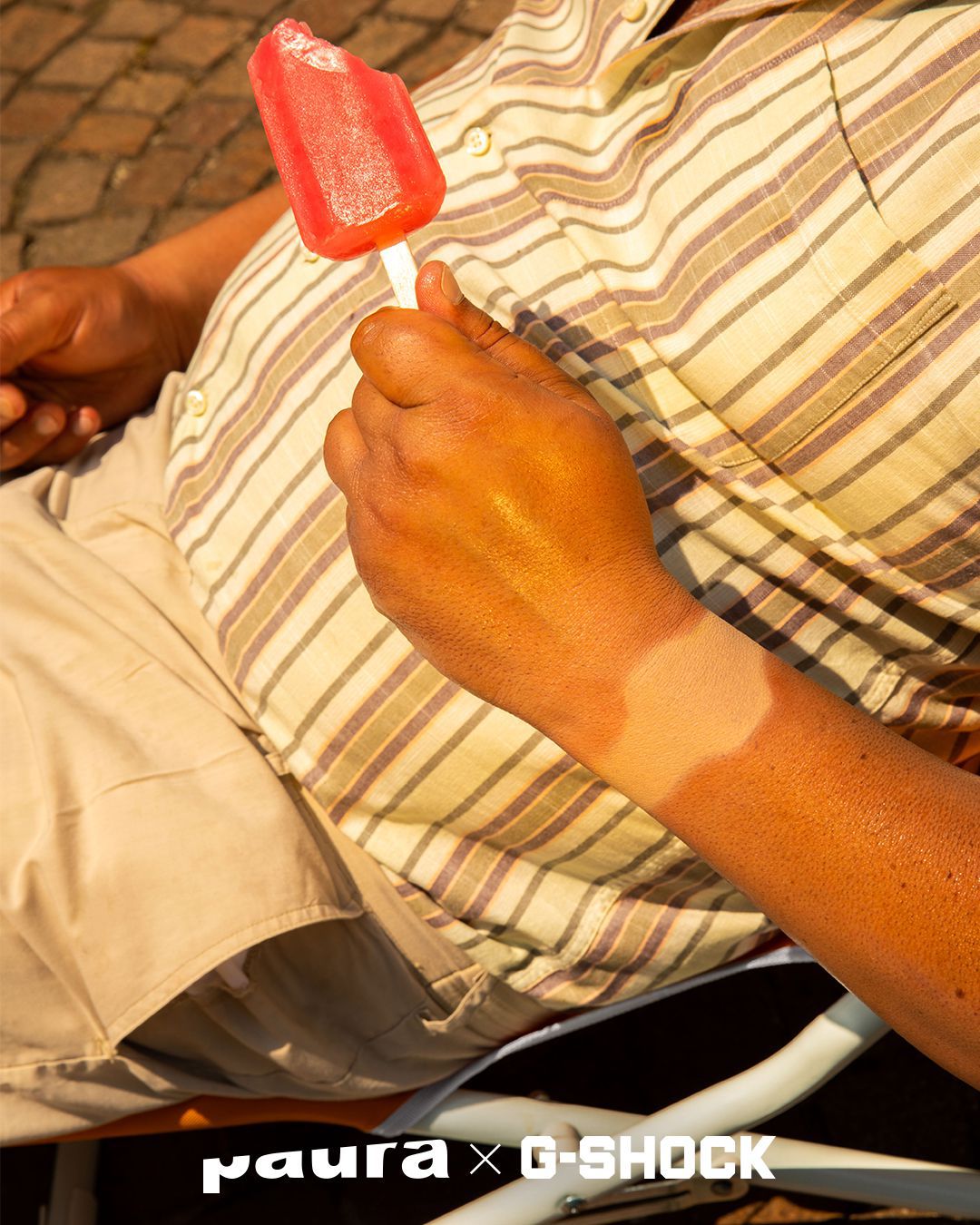 Ciò che colpisce ulteriormente del progetto è la campagna pubblicitaria, irriverente, provocatoria e fuori dagli schemi, che fa leva proprio sull’iconicità dell’orologio scelto come soggetto dell’unione tra Paura e G-SHOCK: il fotografo Adriano Cisani, con l’art direction di C41 Studio, ha scattato infatti una campagna in cui l’orologio effettivamente non si vede mai, ma il segno che lascia sulla pelle di chi lo indossa è assolutamente inconfondibile.