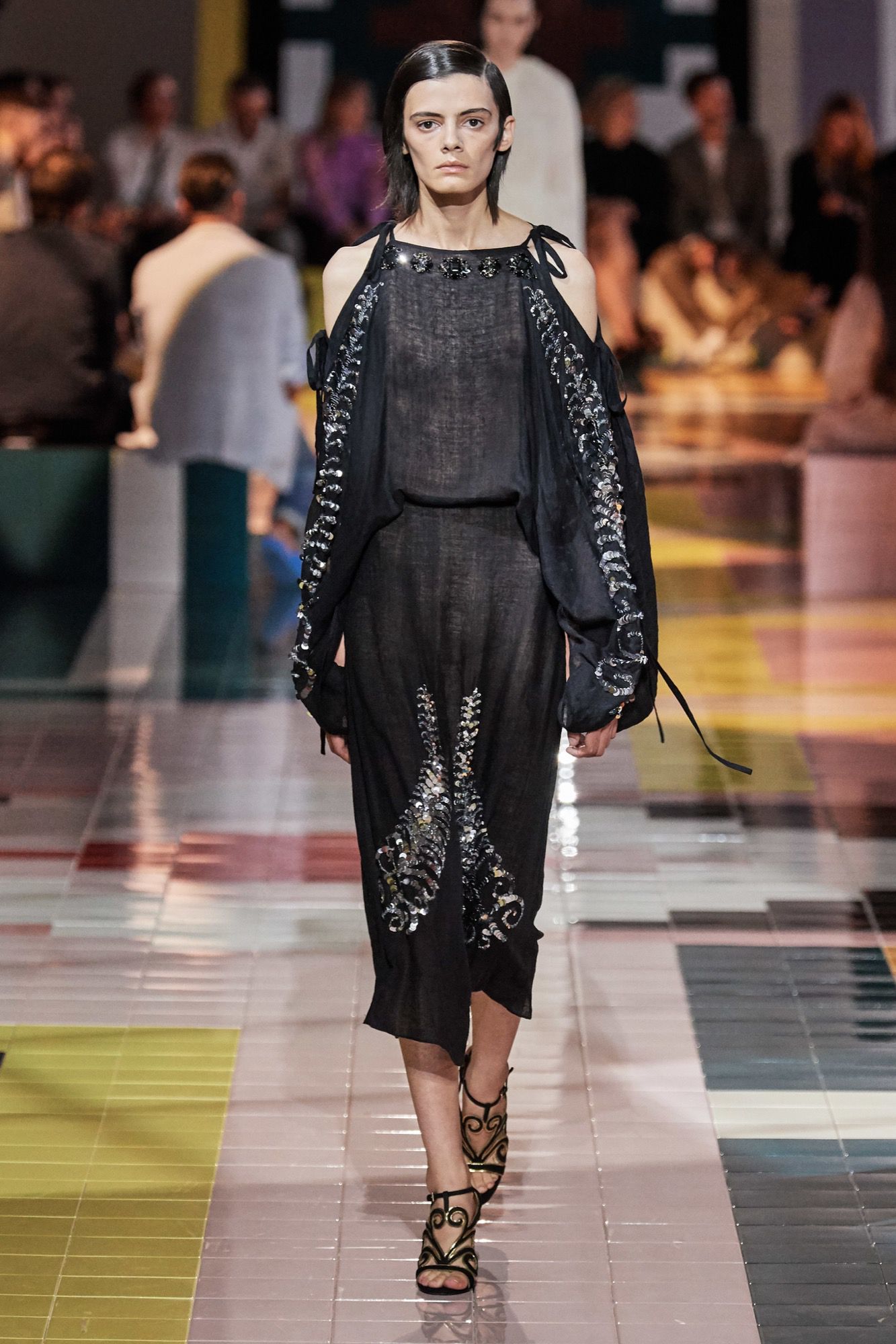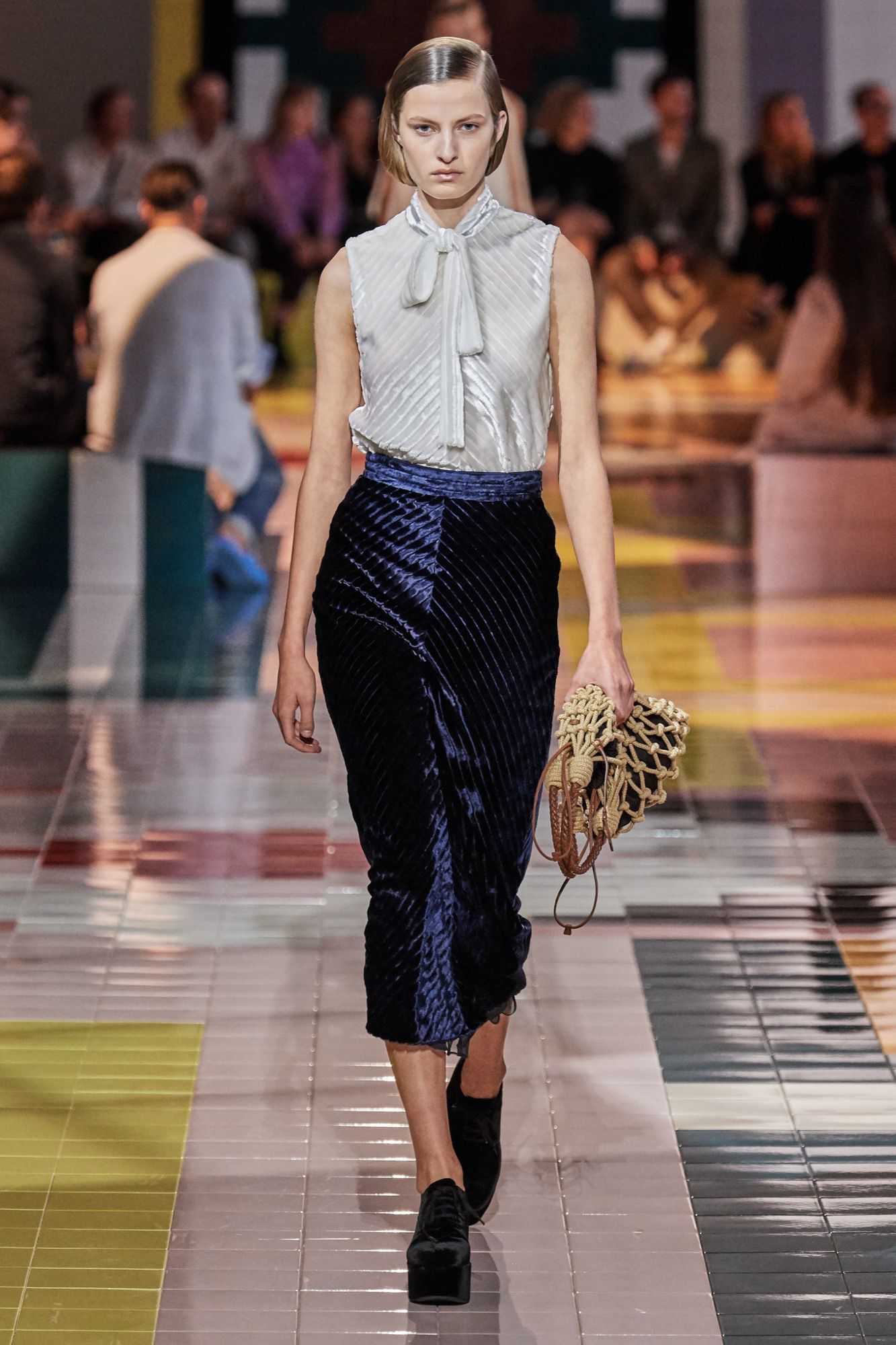 Far rientrare lo show di Prada tra i migliori di questa FW sarà probabilmente un'opinione impopolare, ma pazienza. Non c'è nessuno che di stagione in stagione sappia rinnovarsi, reinventarsi e soprendere come fa Miuccia. Quindi per la SS20, basta grafiche gotiche, Frankenstein colorati, al centro c'è la persona, che viene prima dei vestiti, lo stile personale prima dei trend. Prada gioca con il concetto di pretty, femminile, semplice, è come se andasse a togliere invece che a sovraccaricare, a spogliare invece che coprire. Ci sono accenni agli anni Cinquanta e riferimenti agli anni Settanta, vedi alla voce completo giacca pantaloni dal taglio perfetto. Miuccia gioca con i contrasti tra tessuti diversi portati insieme: macramè, velluto, paglia, pelle, paillettes, il mood è giocoso appunto, non bisogna prendersi troppo sul serio. Non sarà la collezione Prada più bella di sempre, ma senza dubbio ha saputo dialogare con la propria estetica riadattandola ad una donna più vera di quella vista nelle ultime stagioni.