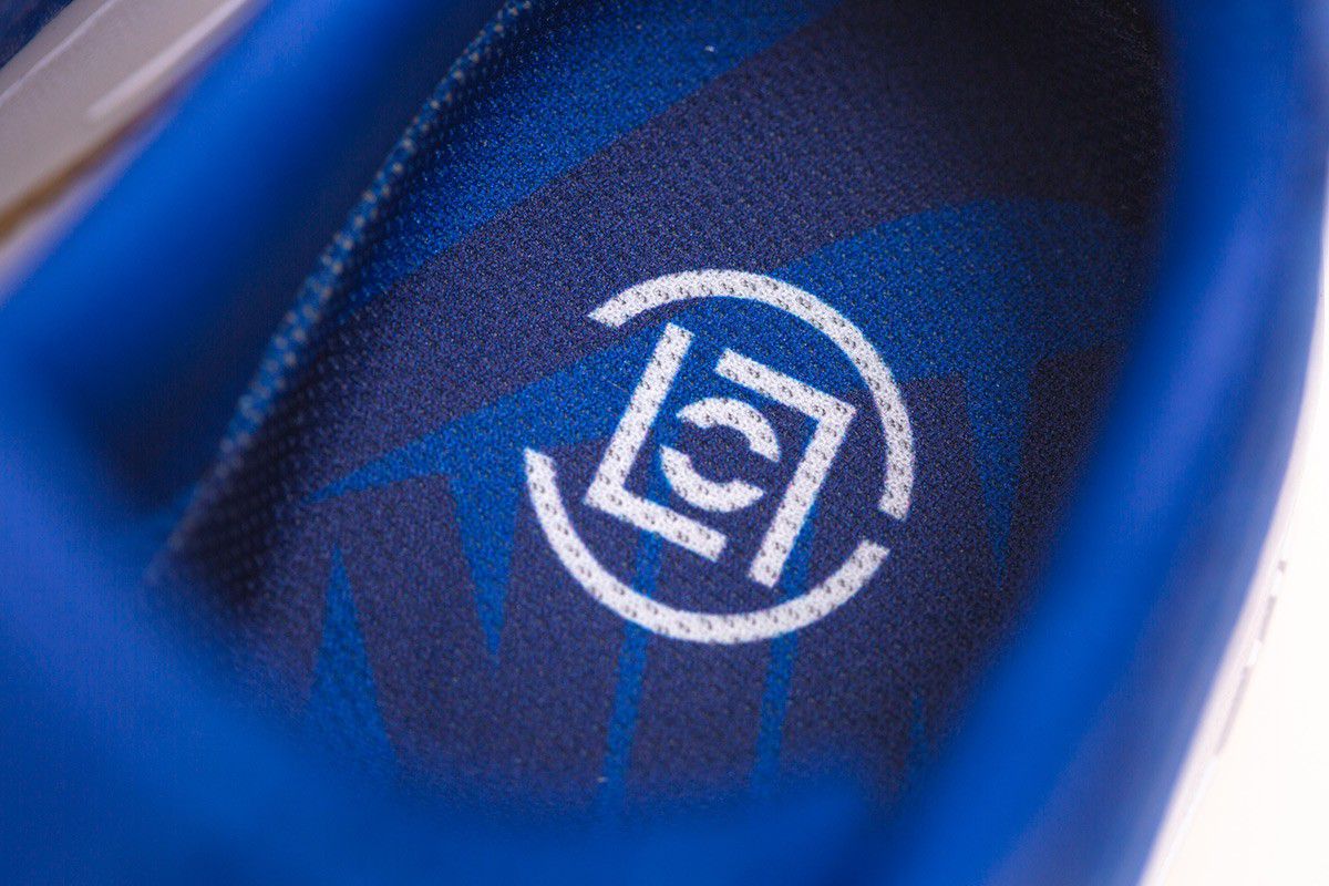 La caratterisitica principale della silhouette pensata dal team di CLOT è la longevità nel tempo, tant'è che con l'usura lo strato superficiale della tomaia in seta rivelerà ideogrammi cinesi a contrasto. Lo schema cromatico pensato vede l'utilizzo dell'University Blue applicato su tutta la tomaia, midsole bianca e suola color gum a contrasto.