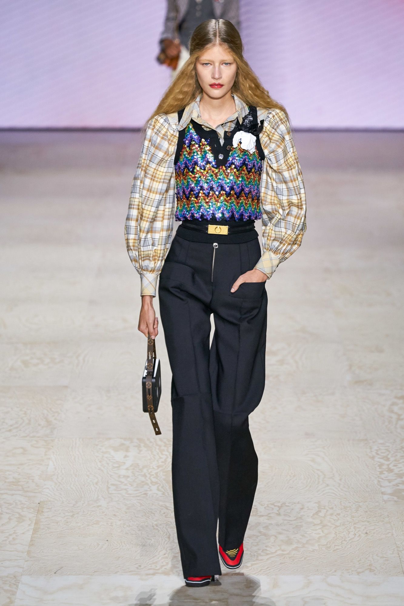 Le proposte Uomo e Donna di Louis Vuitton viaggiano su due binari paralleli. Nelle ultime stagioni, Nicolas Ghesquière ha tradotto in collezioni avanguardistiche ed eclettiche un futuro non troppo lontano, ma per la SS20 ha voluto guardare al passato. La Belle Époque francese ha avuto una portata dal punto di vista culturale senza precedenti, come ha raccontato lo stesso designer nel backstage della sfilata, è il periodo di Proust, ma anche dei primi movimenti per l'emancipazione della donna e degli albori della stessa Maison LV. Maniche a sbuffo, vest aderenti portati con pantaloni gessati, colletti rotondi, gonne stratificate testimoniano l'isprazione; gli accessori, primo fra tutti quella borsa-VHS, testimoniano il genio, basta un dettaglio giusto per vendere, anche solo su Instagram.