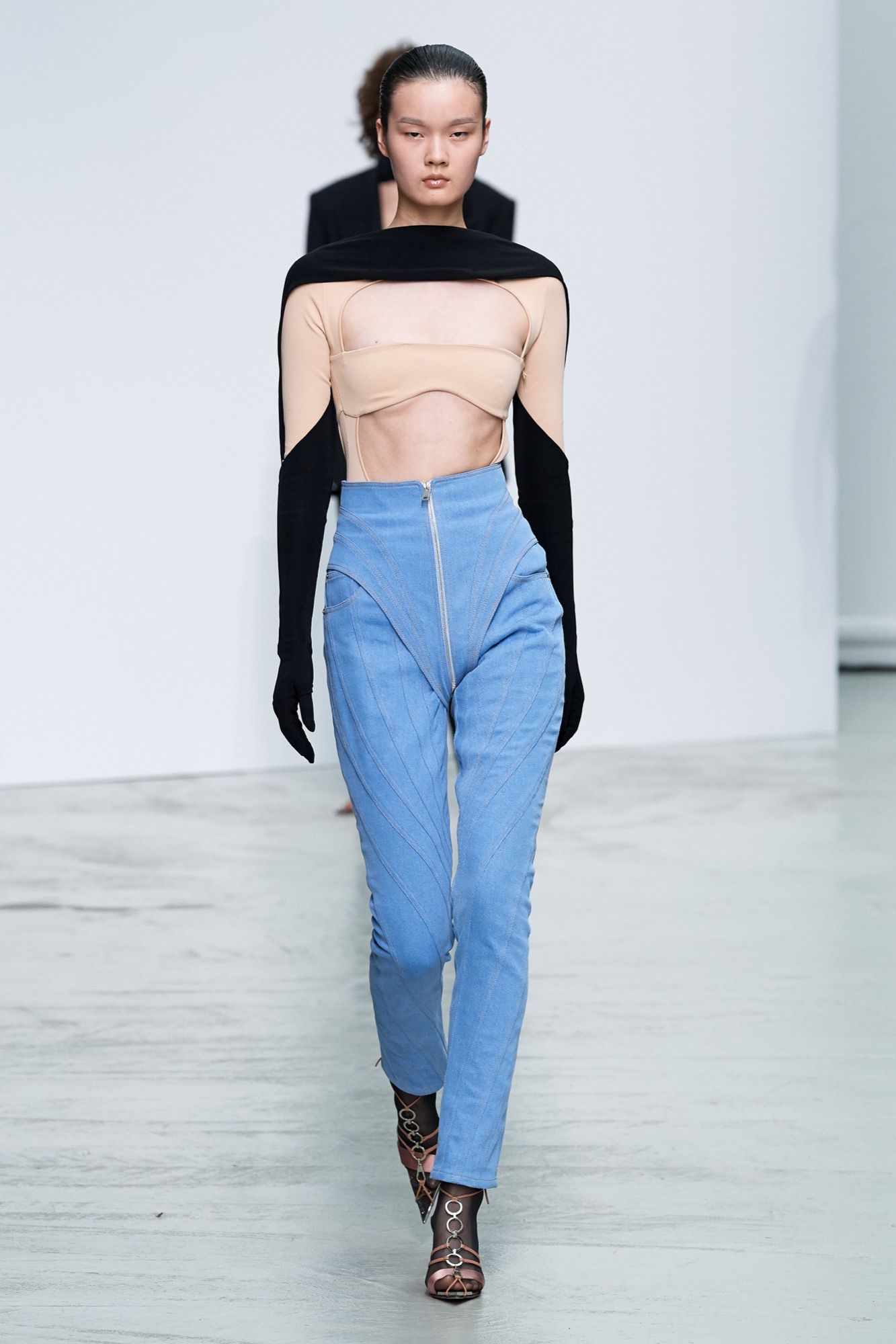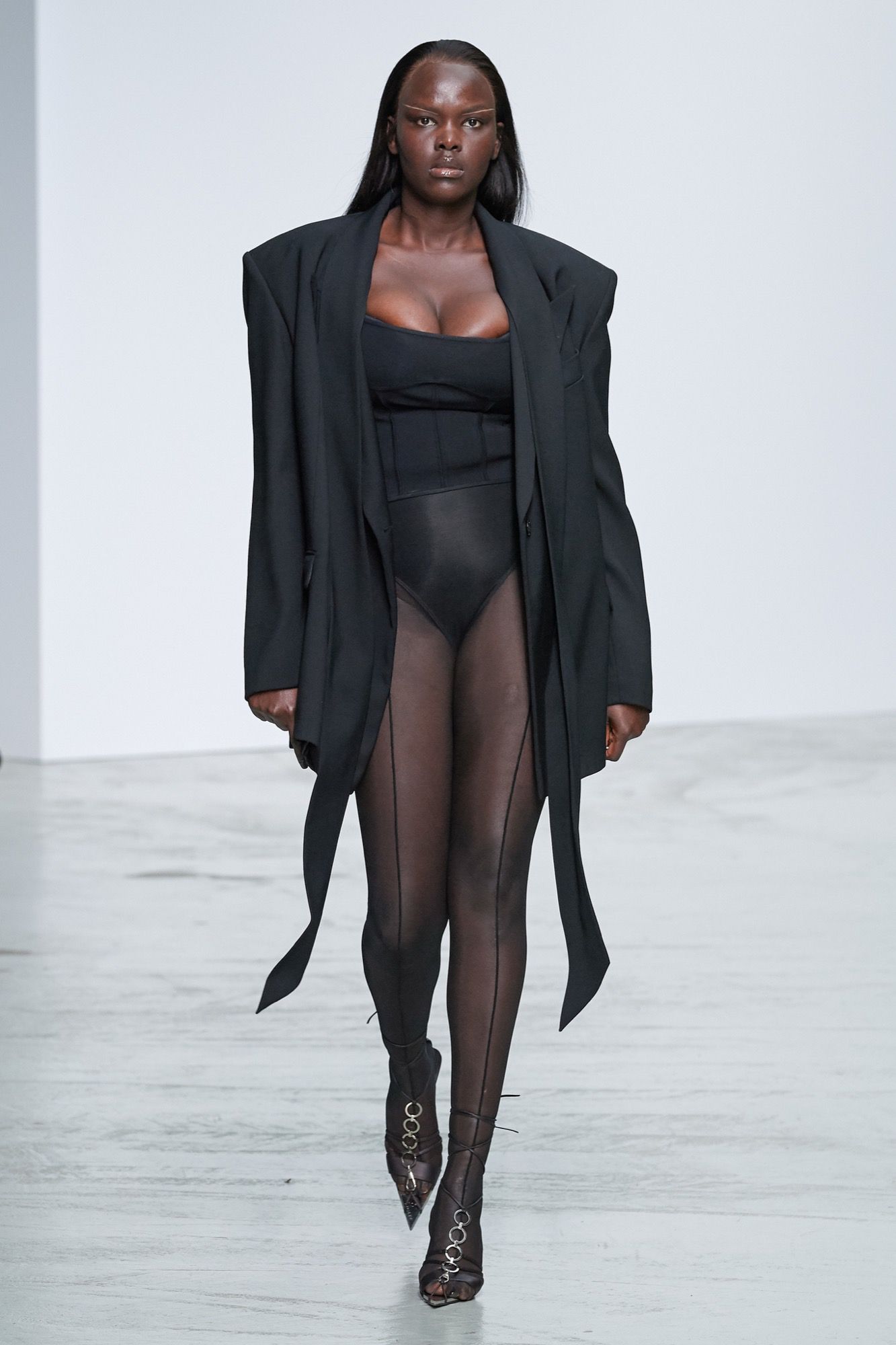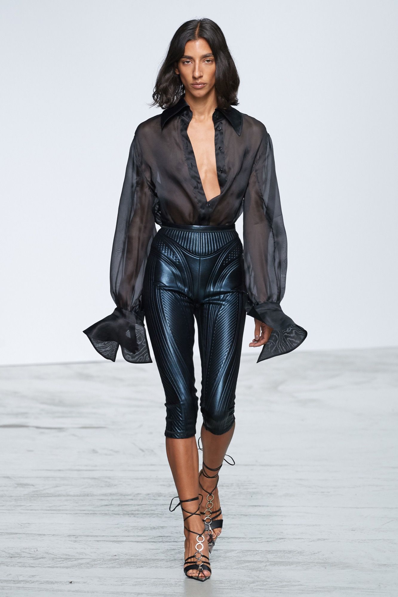 E' sempre molto difficile trovarsi alla guida di una Maison fondata da un designer carismatico e talentuoso, che l'ha plasmata secondo il suo gusto e la sua concezione di moda, il rischio di farsi schiacciare da un'eredità così pesante è sempre dietro l'angolo. Quella che ha portato Casey Cadwallader in passerella, però, è stata una sintesi quasi perfetta tra l'estetica di Thierry Mugler degli anni '80 e '90 e la concezione odierna di moda. Ci si rinnova attraverso un casting trasversale, che si apre con Bella Hadid, ma che vede la presenza di modelli di ogni razza e taglia, si mantengono poi quegli elementi profondamente connessi alla natura di Mugler: body sgambatissimi, reggiseni neri, giacche strutturate che accarezzano le forme del corpo, tagli che scoprono la pelle. E' evidente il lavoro meticoloso fatto sulle silhouette e sui tessuti, in bilico tra lingerie, tailoring e streetwear, il risultato è potente, audace, risponde forte alla domanda 'Cosa vuole indossare oggi una donna per sentirsi sensuale?', ed ecco che ritorna il discorso sulla persona che quegli abiti sceglie di indossarli.