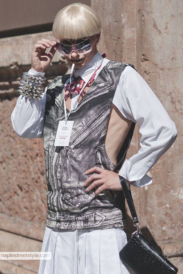 Lo startup alle 15.00 con Vivinne Westwood. Il marchio rende omaggio ai Giochi Olimpici di Londra 2012. Ad illuminare lo show ci pensano dapprima le installazioni luminose ad opera dell'artista Marco Lodola. La passerella è meno luminosa, meno brio, eccessi, ma forse persino Vivienne Westwood sta guardando di più al mercato. E così il guardaroba maschile ruba simboli e medaglie dai podi per tatuarli su fibbie, T-shirt e spille. Le scarpe sono di plastica colorata, preferibilmente di rosso, ad aggiungere simbolismo ci pensa una corona della vittoria sulla testa di qualche modello. C'è da dire che sotto sotto si riconosce una certa elaborazione dell'eleganza inglese.