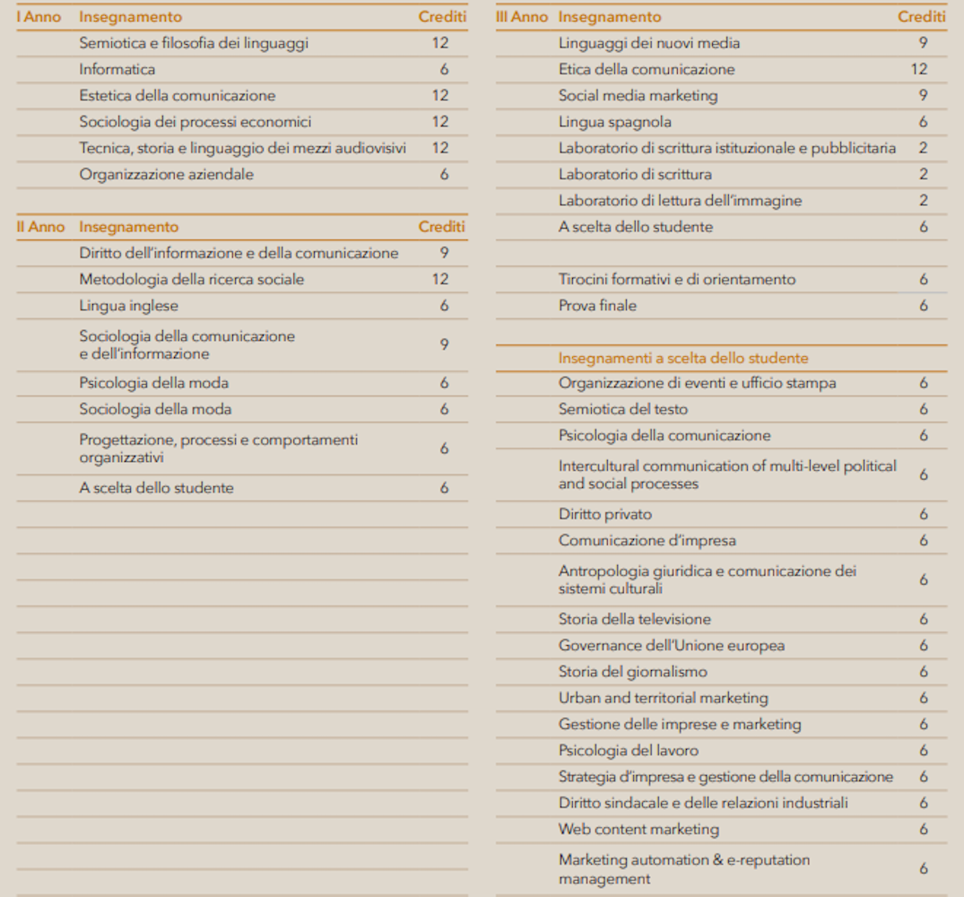 Il piano di studi si presenta più o meno come un regolare corso in marketing con l'aggiunta di semiotica e moda, e l'impressione è che anche le università private stiano in qualche maniera di cavalcare l'onda e il fascino che la fumosa parola influencer - la cui definizione è ancora tutta da scrivere - suscita tra i giovani e nell'opinione pubblica.