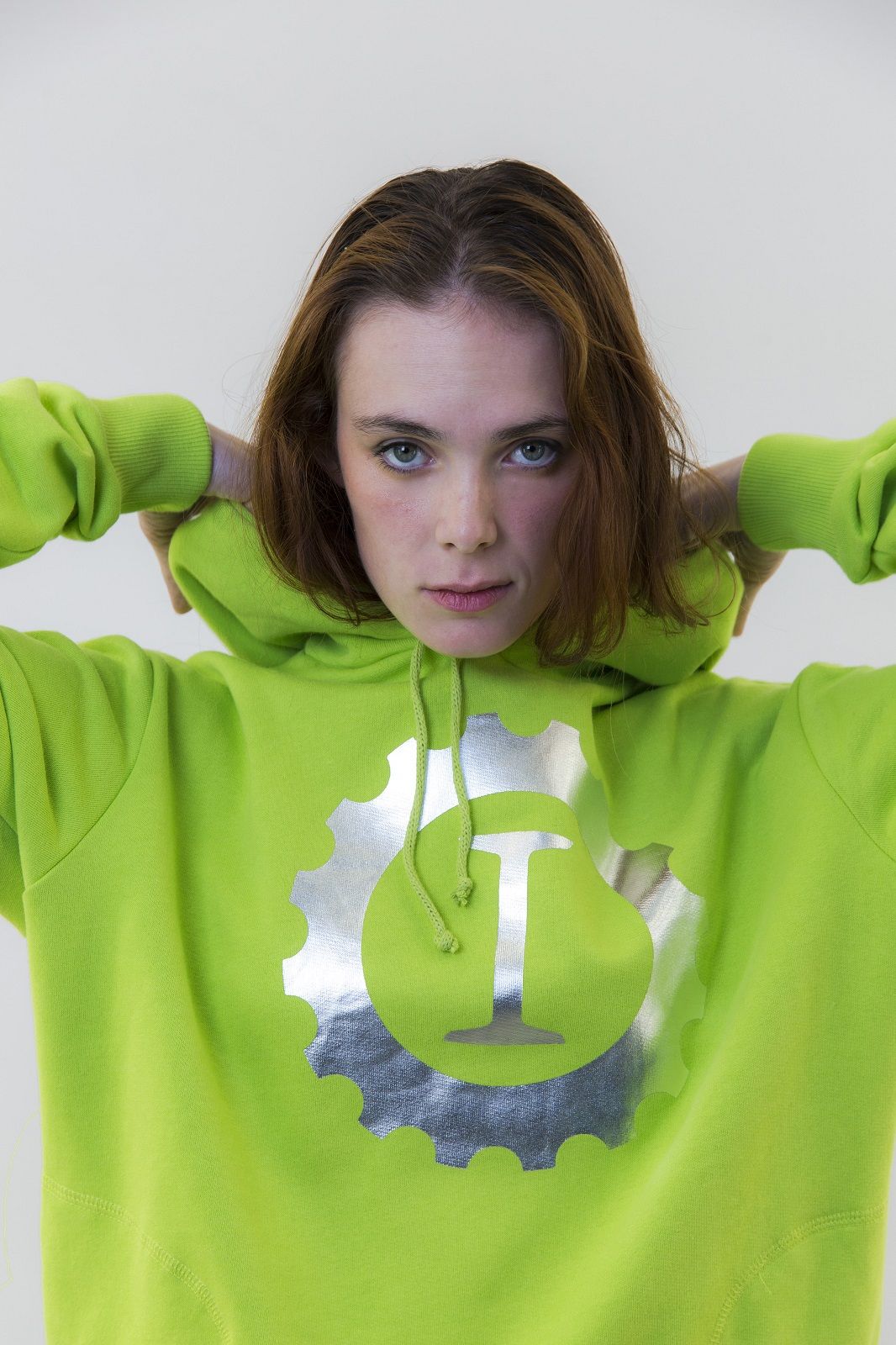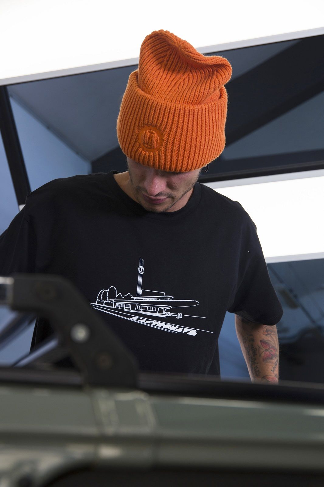 Sulle tees viene ripreso il celebre logo e lo sketch dell’ex stazione di servizio. Oltre alle magliette, la linea presenta anche la hoodie, con tasche laterali e logo (l'iconica ghiera) ton-sur-ton nelle varianti blu e off white, con logo metallic glide nella colorway acid-lime. Completano il total look il beanie hat, rigorosamente oversized con logo embroidered in tono e il baseball cap con ricami a contrasto.