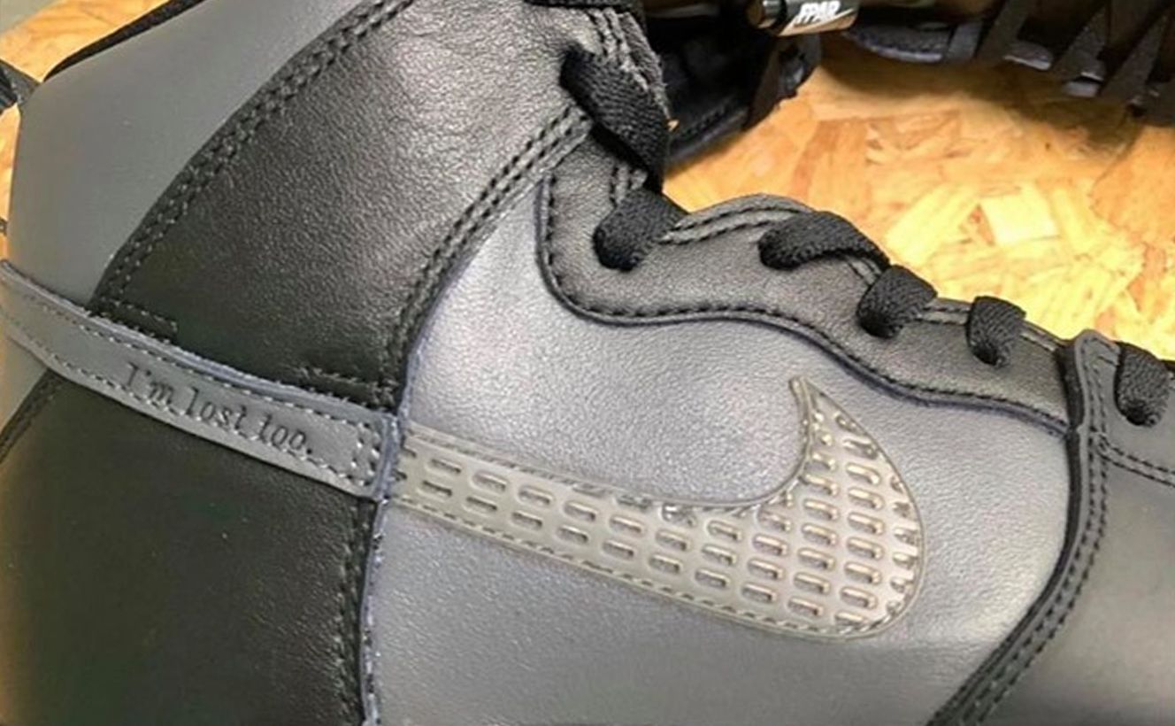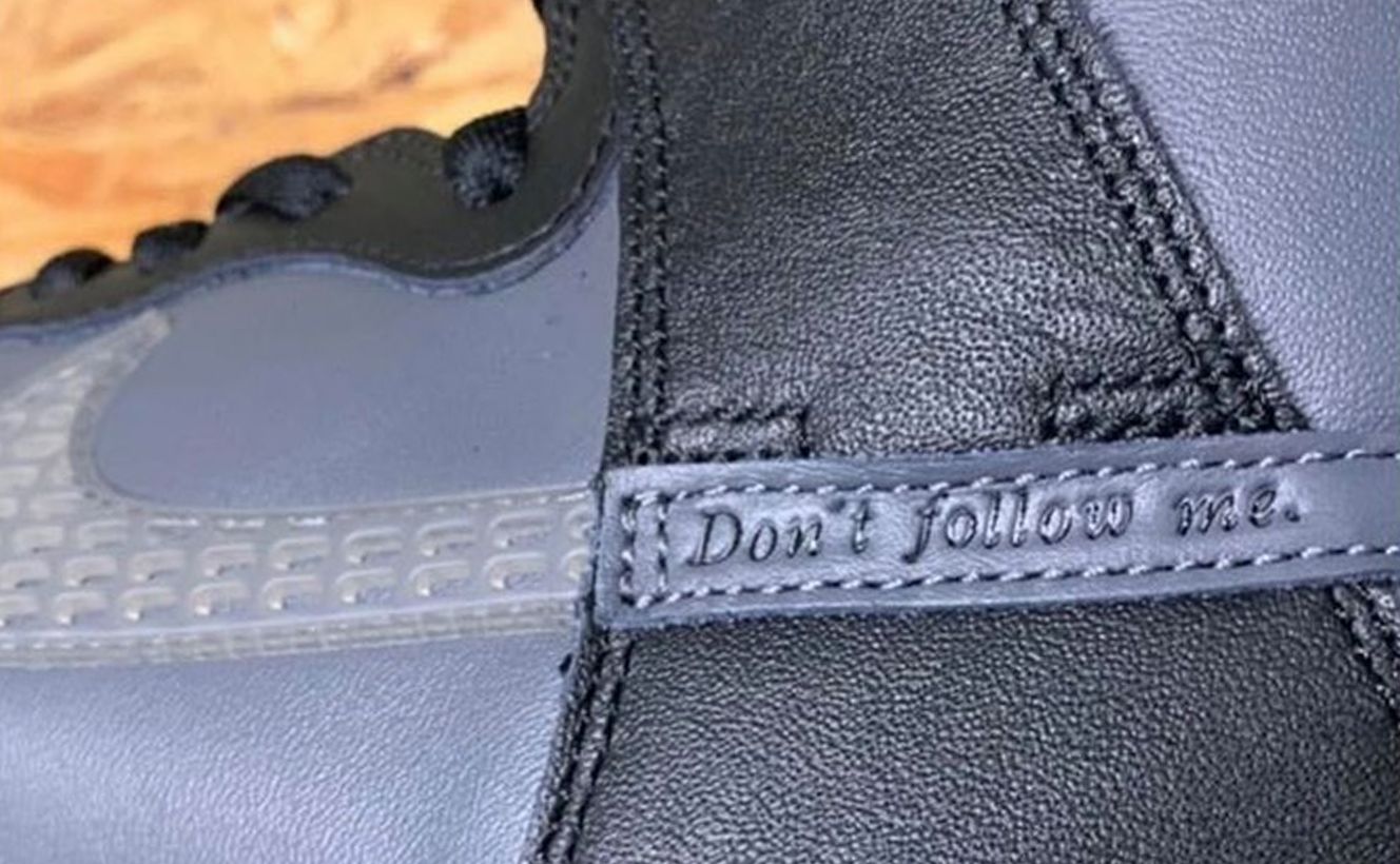 Il blocco cromatico risulta minimale, dove tomaia e suola si tingeranno nelle tinte nere e antracite- Completeranno il design frasi come "Don't follow me.", "I'm lost too.", "Trust No One" applicate sui pannelli della tomaia e da uno special box dal materiale plastico.