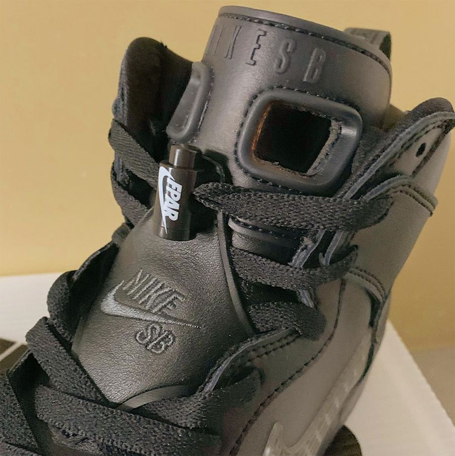 La classica linguetta frontale viene sostituita da quella gommata che ha reso iconiche le Jordan 6, arricchite dai lace locks brandizzati FPAR, mentre la retina delle Jordan 5 viene applicata per la creazione degli Swoosh laterali. Essendo un omaggio al mondo di Jordan, tutti i loghi verranno sostituti da quelli di Nike SB, Nike Air e FPAR.