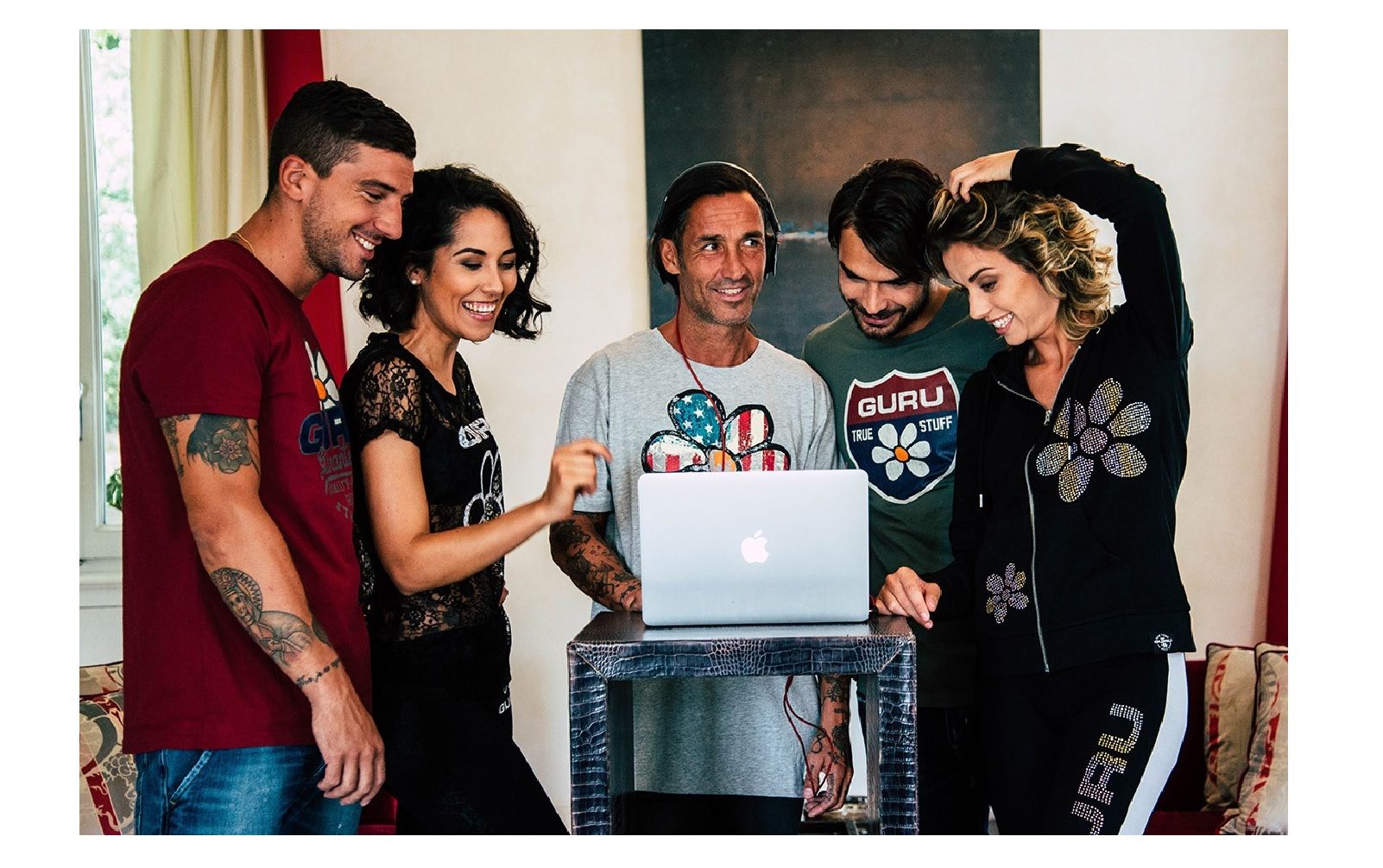 Il nome del progetto è Guru, scelto senza alcun riferimento alla cultura indiana o altro significato particolare, ma solo perché è una parola originale, facile da scrivere, che si pronuncia allo stesso modo in tutte le lingue. Nel corso del primo anno, su cinquemila magliette prodotte, ne vengono vendute mille. È allora che arriva la margherita a sei petali, un simbolo semplice capace di dare riconoscibilità all’azienda. Ora che c’è il logo, bisogna solo renderlo appetibile coinvolgendo i giusti testimonial.