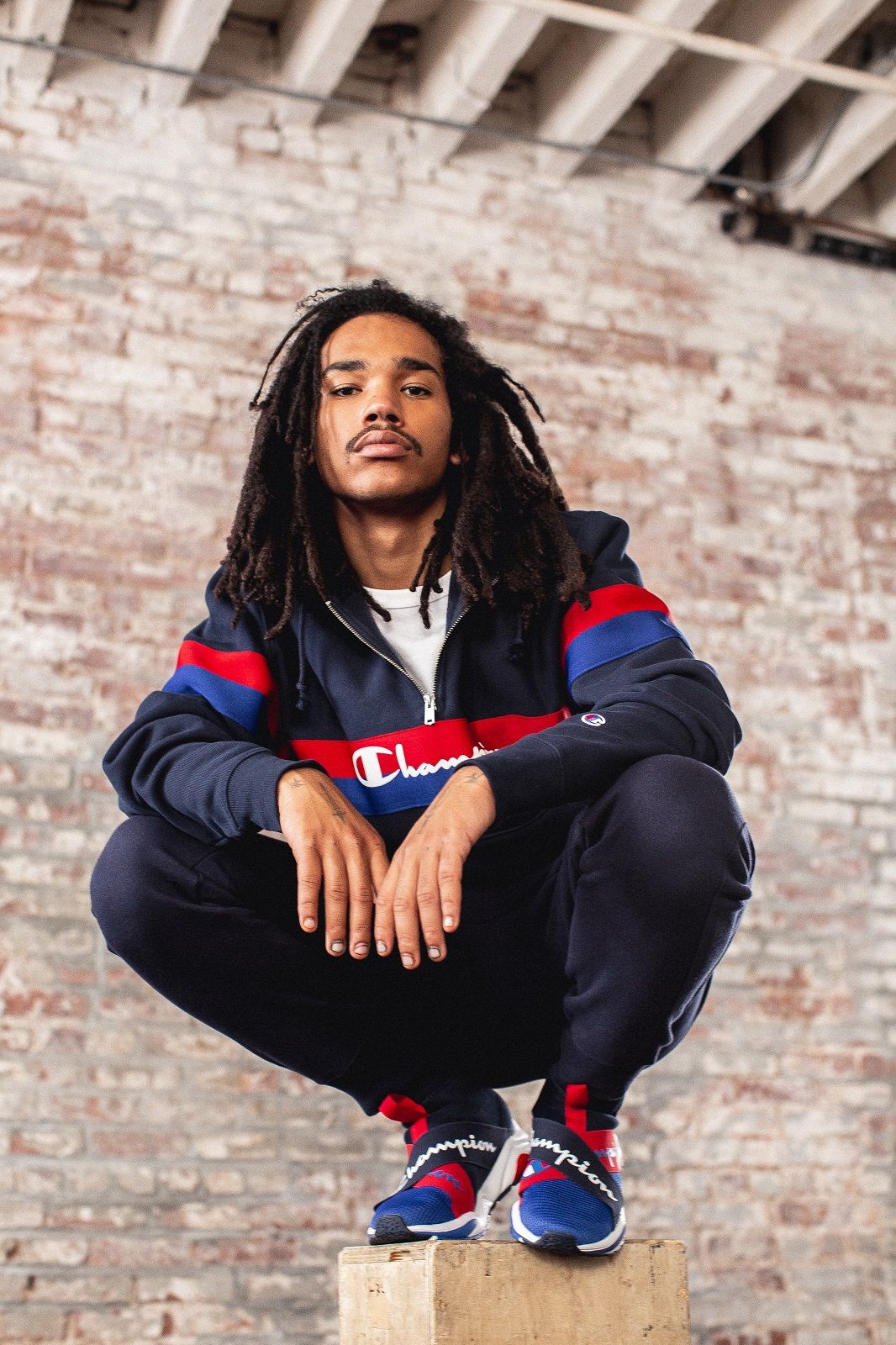 Luka Sabbat x CHAMPION® per i 100 anni del brand La campagna vede Luka Sabbat affiancato ai giovani del programma Art Start