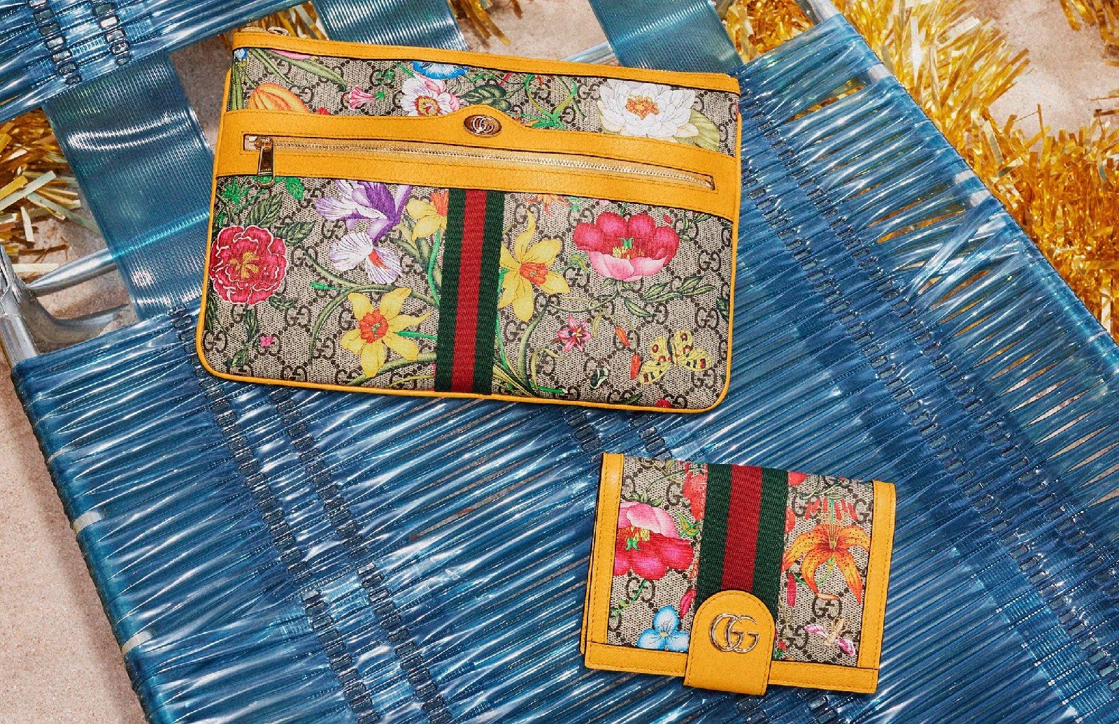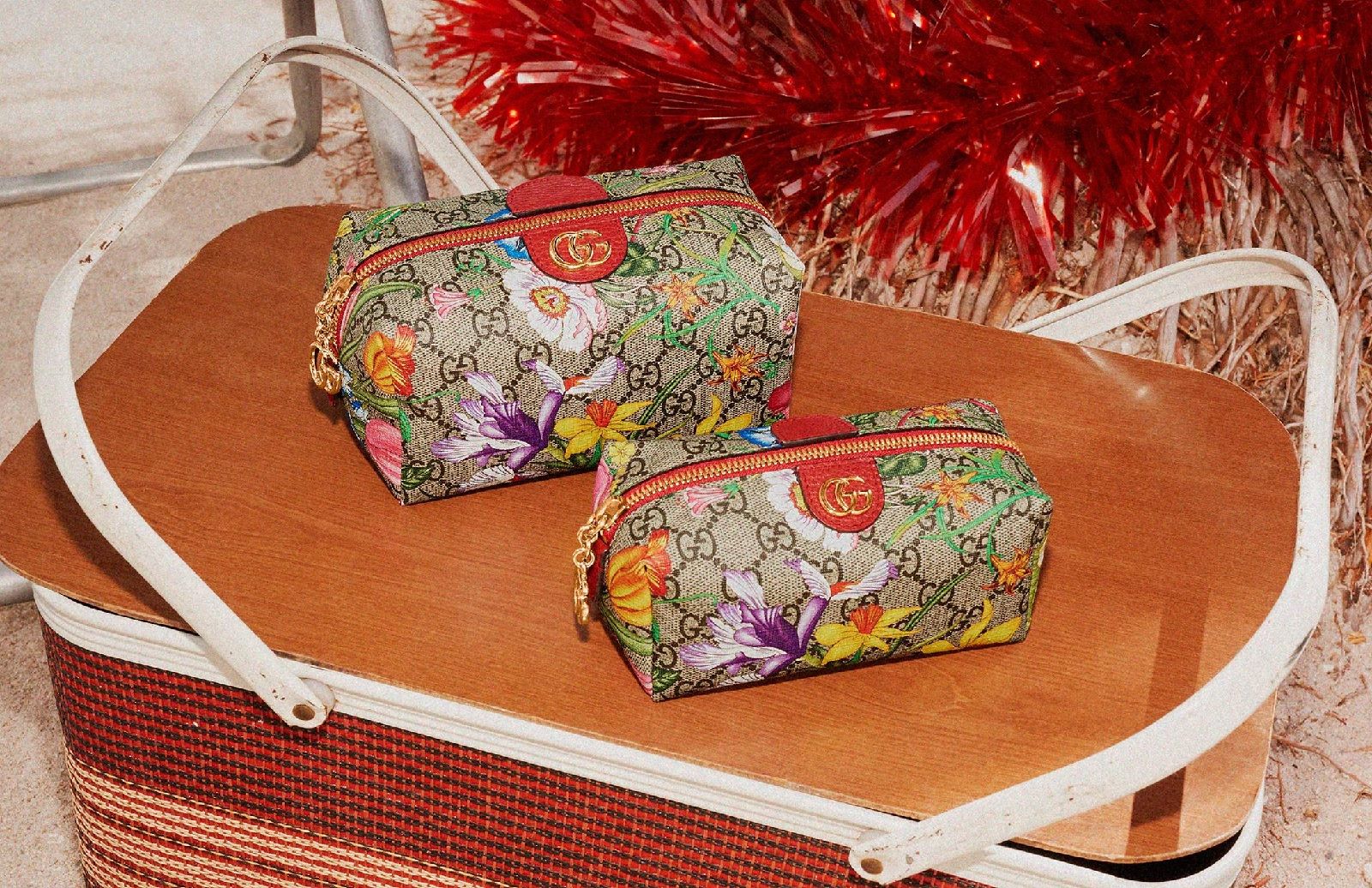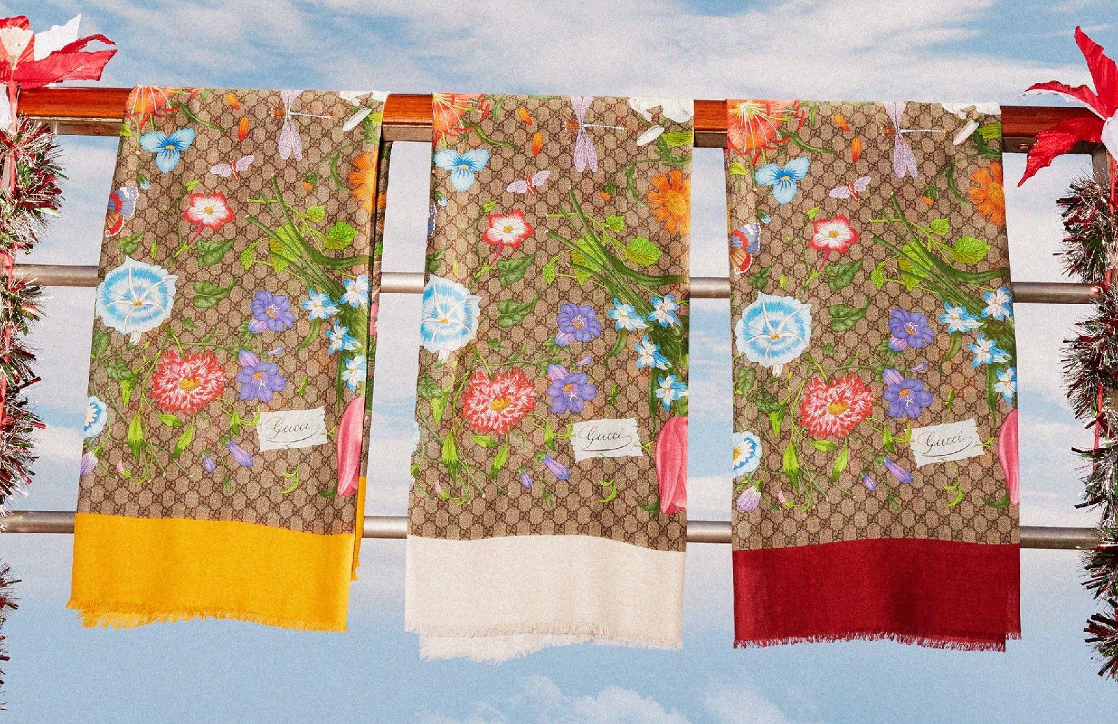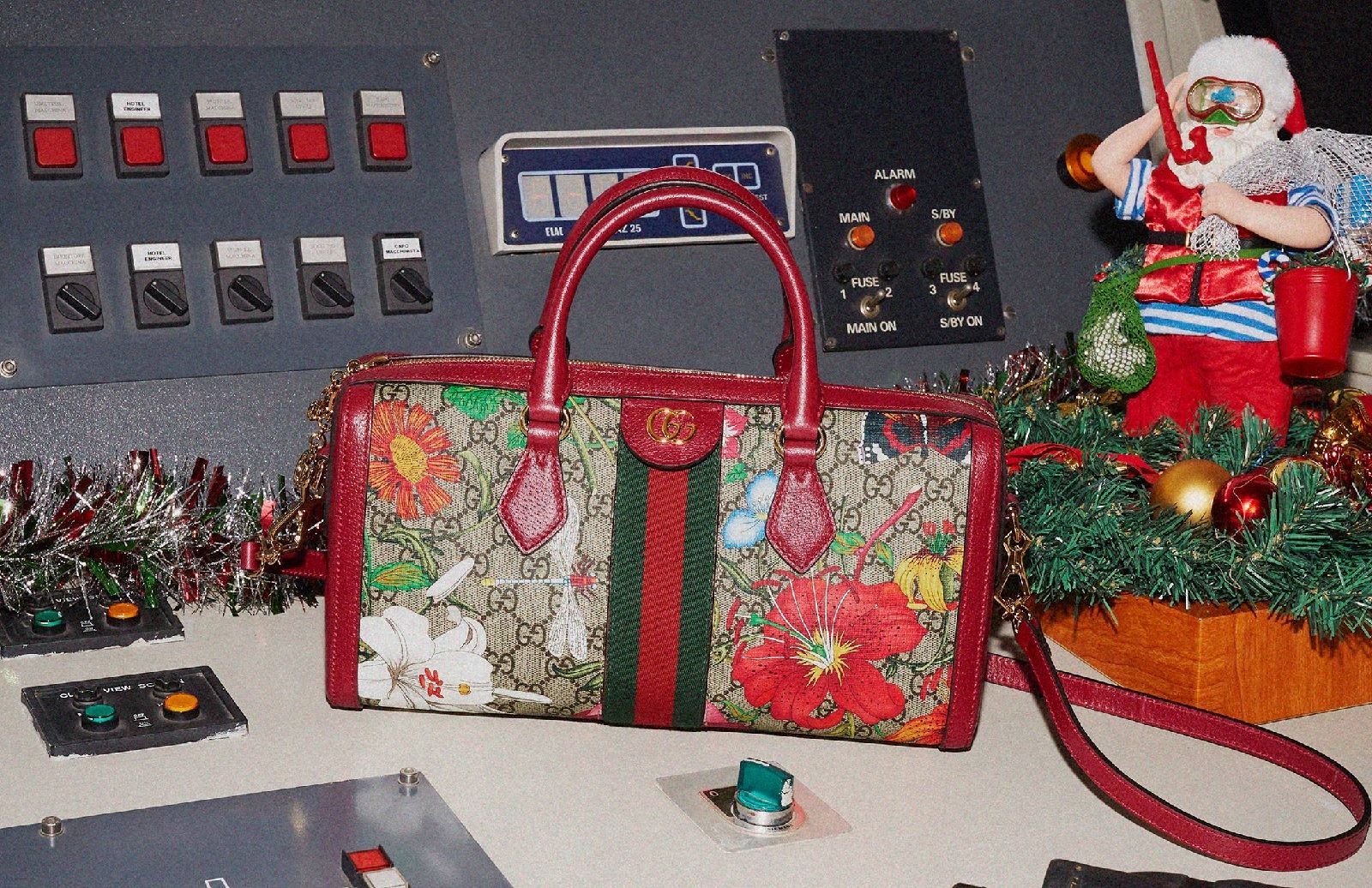 Protagonista la collezione Gift Giving 2019, una selezione di capi ready-to-wear, calzature e accessori realizzata nel nuovo tessuto GG stampato con i fiori e gli insetti dai colori brillanti caratteristici del motivo Gucci Flora, e rifinita in pelle rossa, gialla o bianca.