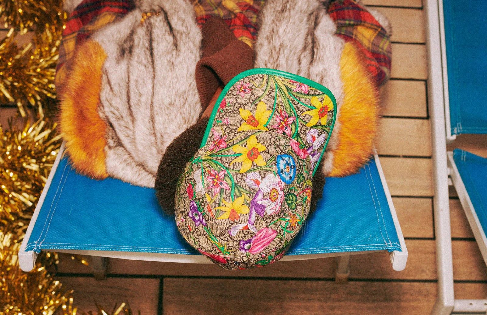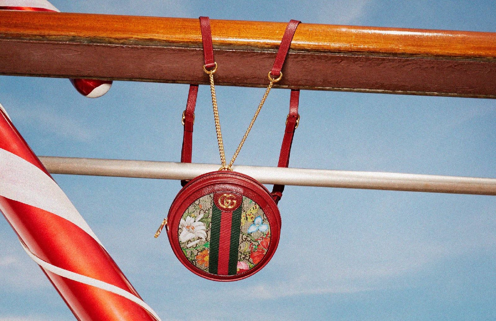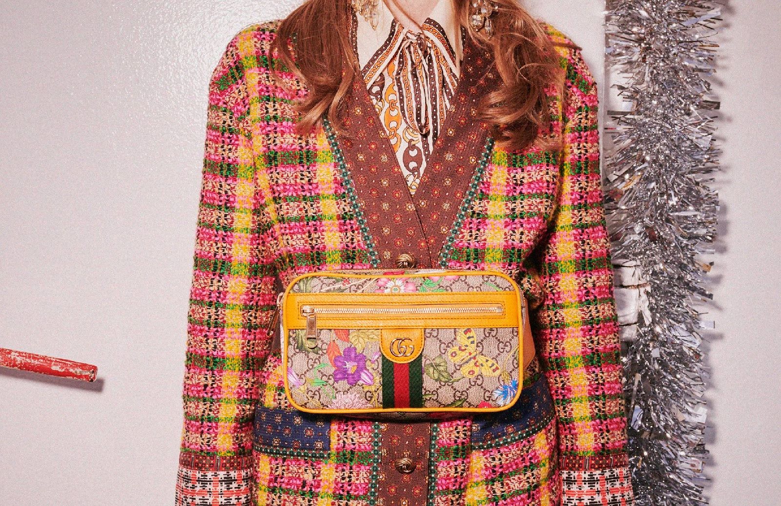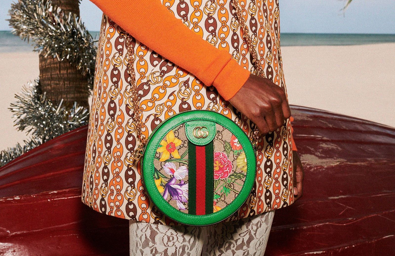Protagonista la collezione Gift Giving 2019, una selezione di capi ready-to-wear, calzature e accessori realizzata nel nuovo tessuto GG stampato con i fiori e gli insetti dai colori brillanti caratteristici del motivo Gucci Flora, e rifinita in pelle rossa, gialla o bianca.