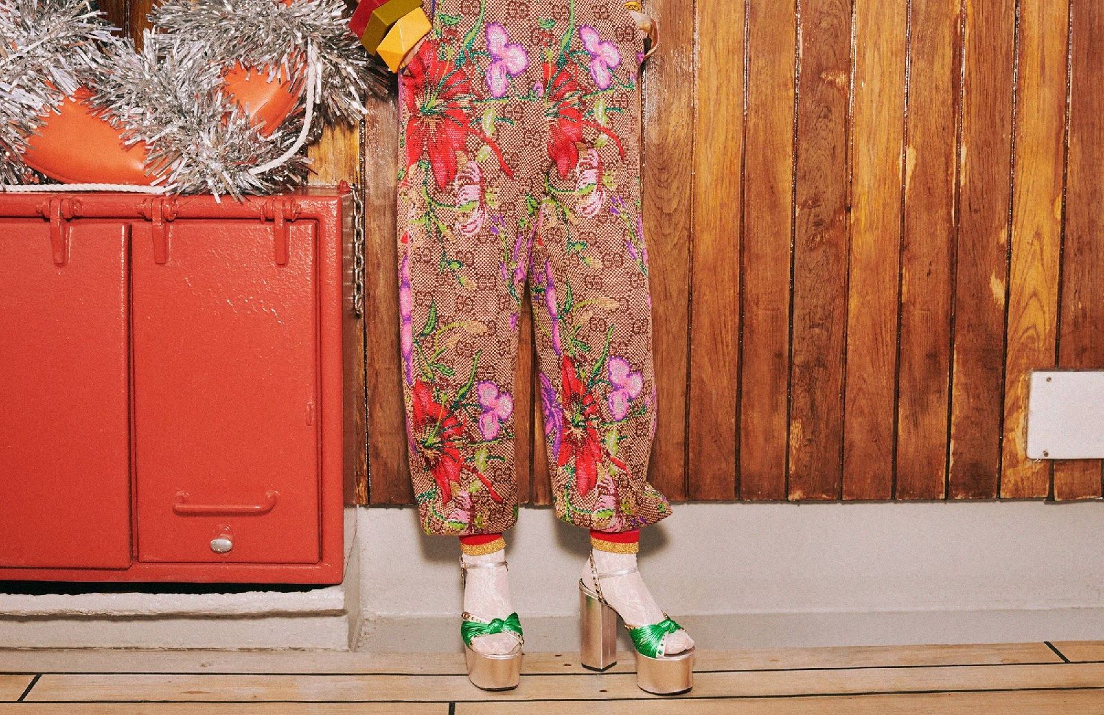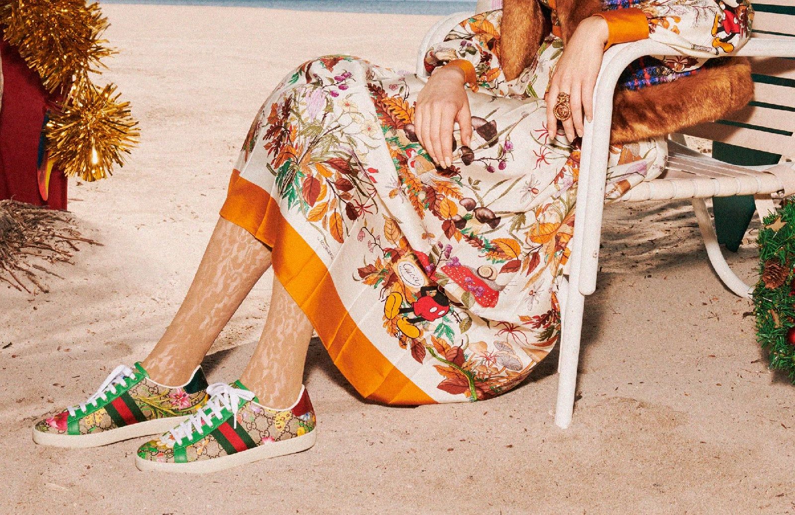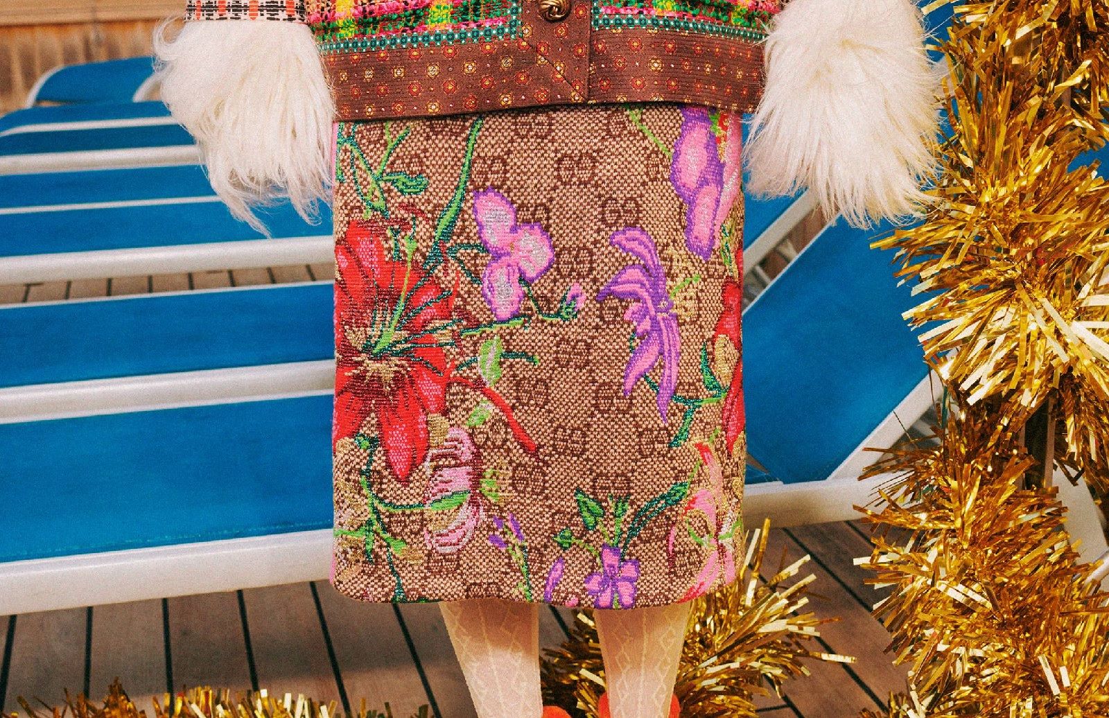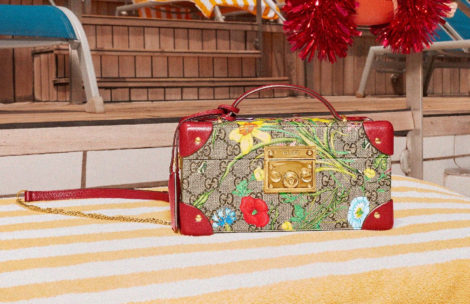 Protagonista la collezione Gift Giving 2019, una selezione di capi ready-to-wear, calzature e accessori realizzata nel nuovo tessuto GG stampato con i fiori e gli insetti dai colori brillanti caratteristici del motivo Gucci Flora, e rifinita in pelle rossa, gialla o bianca.