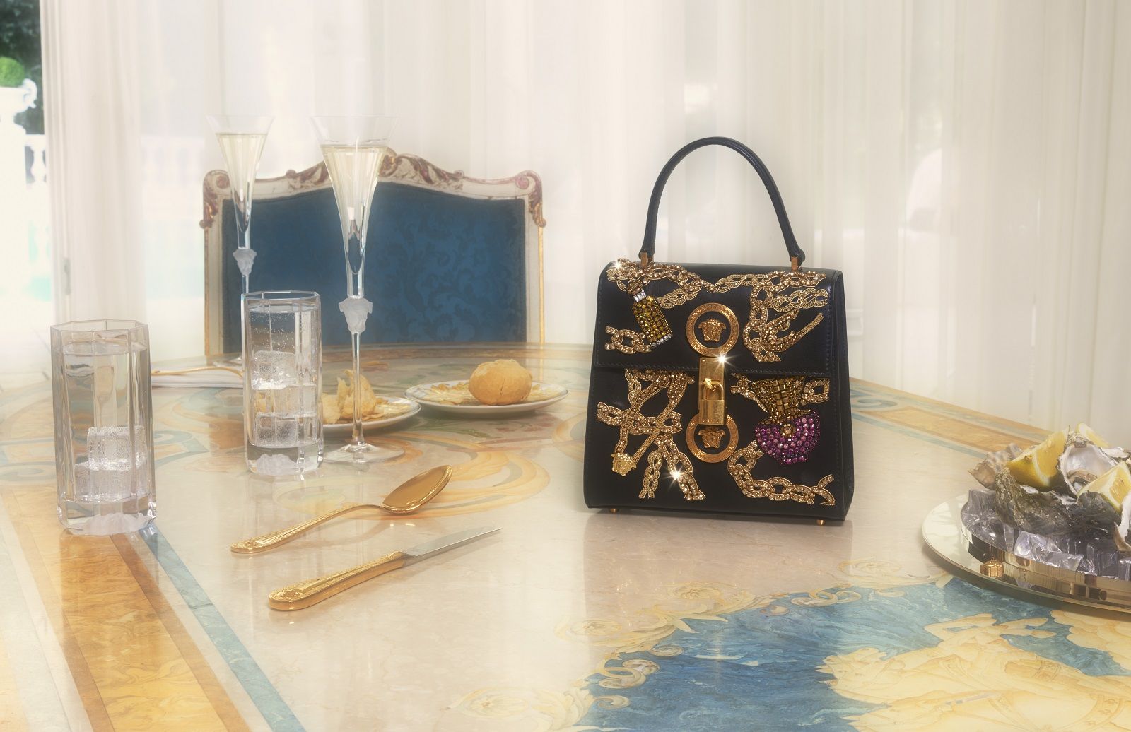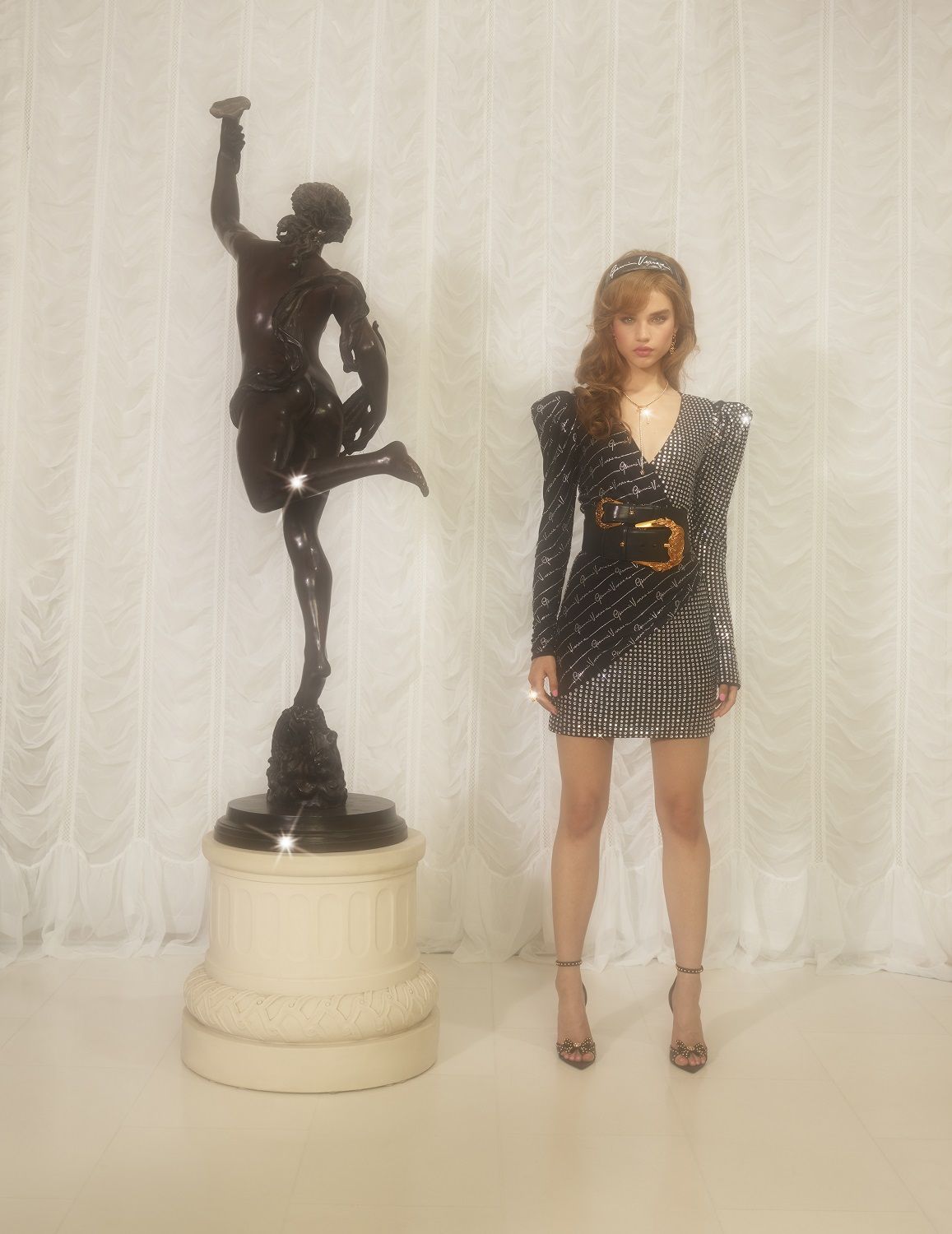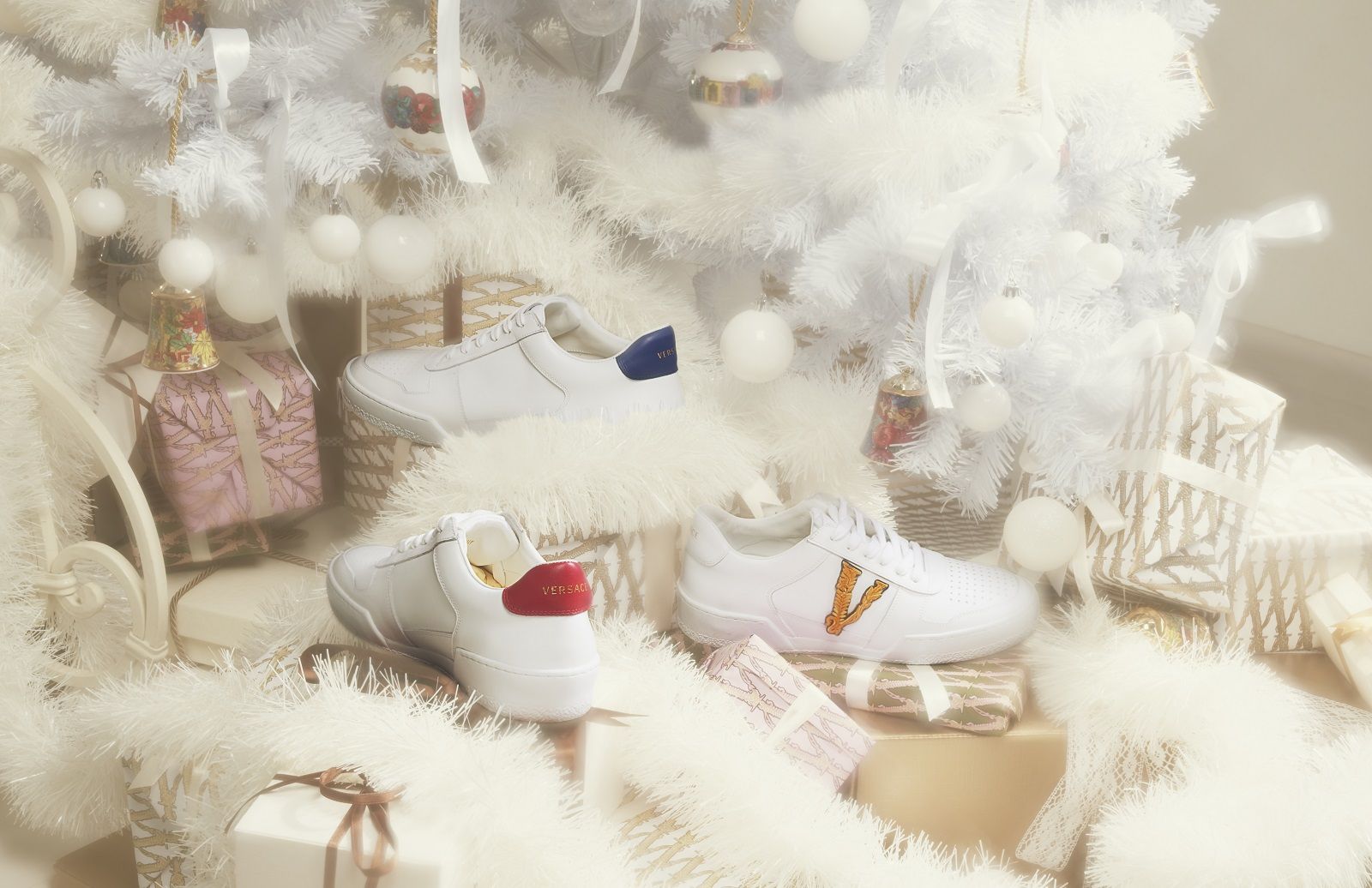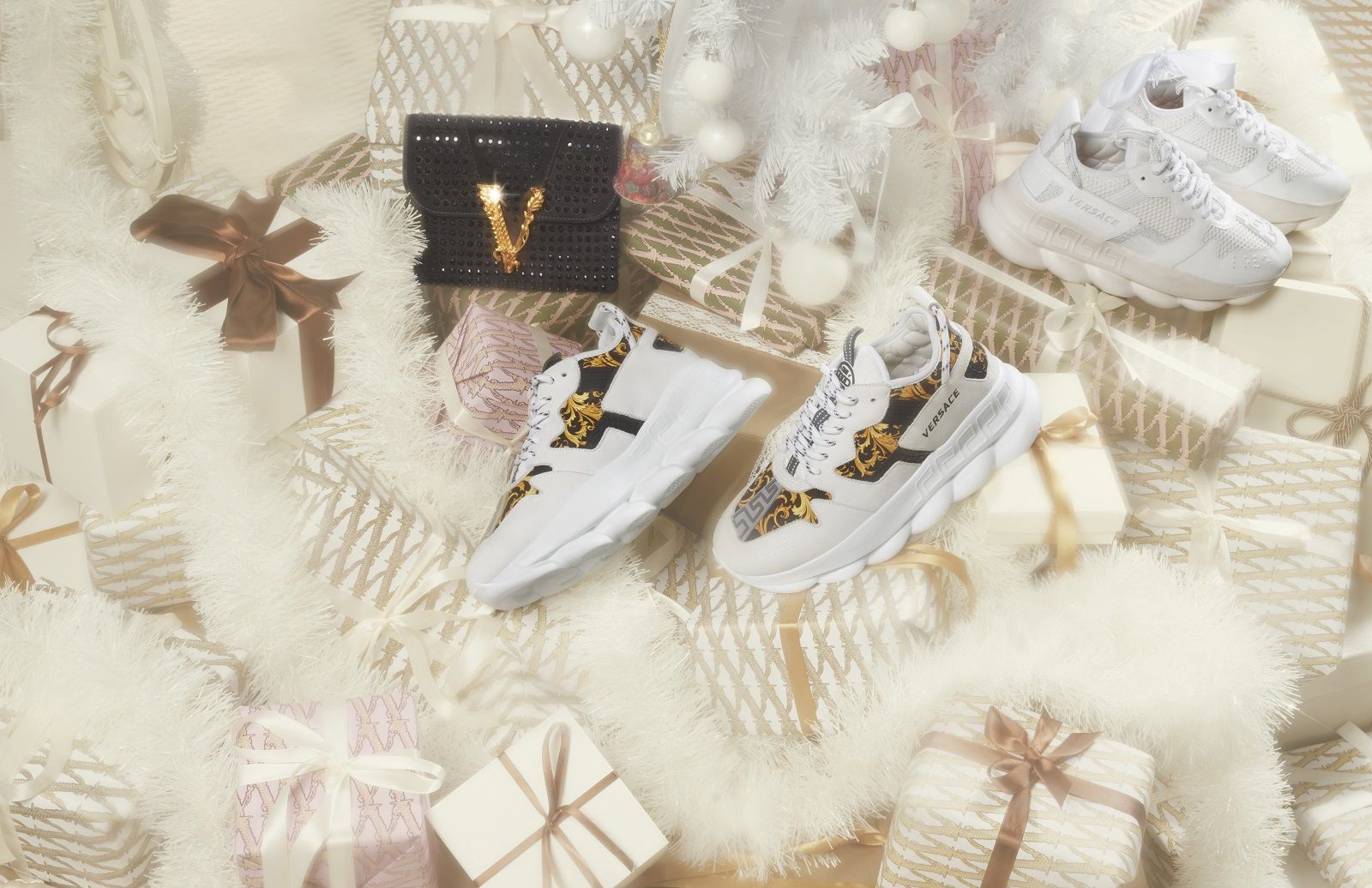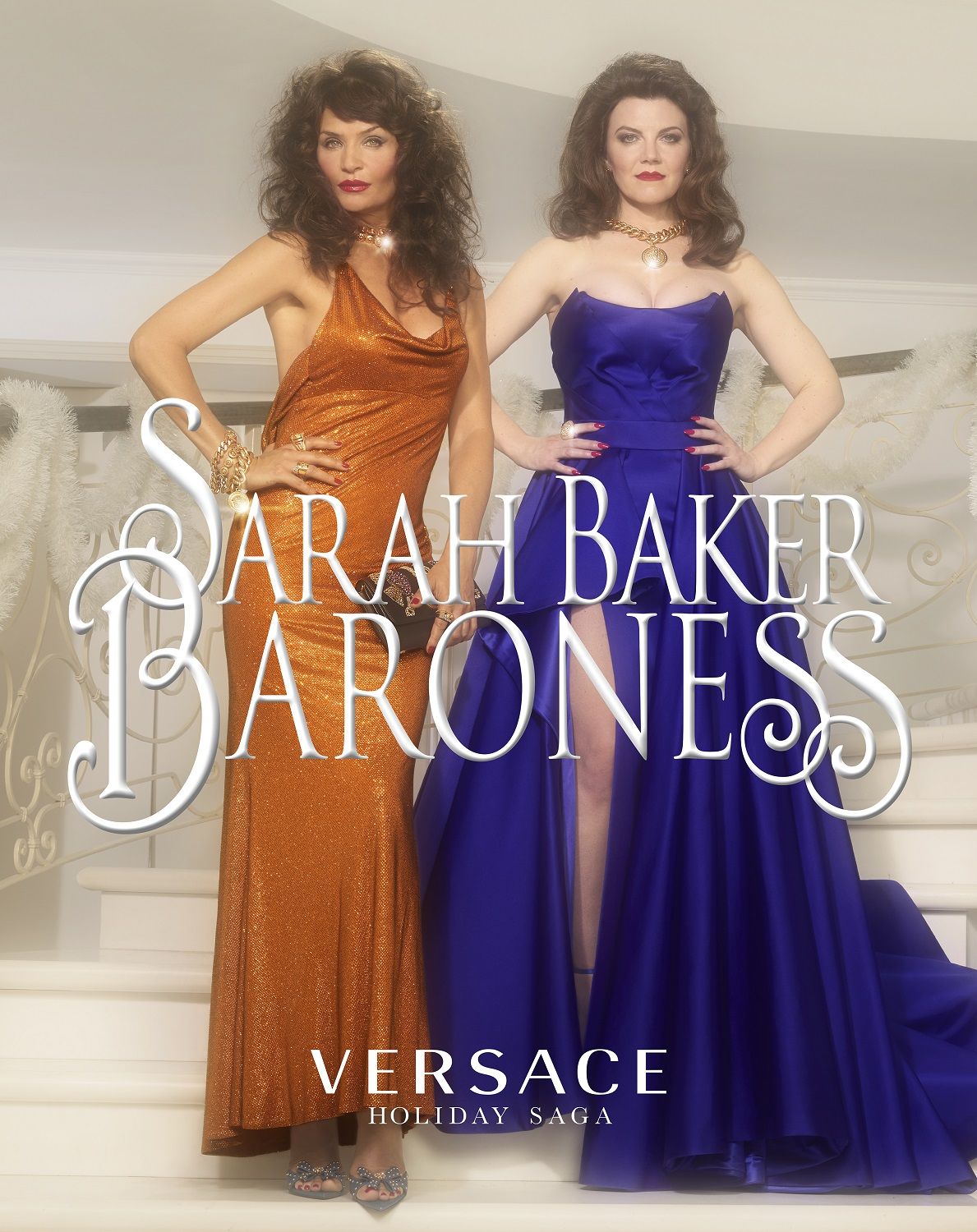 Versace celebra le Christmas Holidays 2019 con la sua personale soap opera realizzata in collaborazione con Sarah Baker e con protagonista la stessa artista britannica e la top model Helena Christensen nei panni di Angelina e The Baroness. La storia, divisa in sei capitoli, segue le loro vicende tra scandali e lusso, ma, a differenza di quanto accadeva negli show tv vintage, le due donne non sono arcinemiche che si fanno la guerra, ma femme fatale atipiche che si sostengono con forza e complicità. Al centro della scena insieme a Sarah ed Helena ci sono gli abiti da sera, le sneaker Chain Reaction e le borse Virtus; gli accessori e gli oggetti d’arredo della collezione Versace Home decorati con i codici iconici del brand, come la Medusa, la Greca, e la firma di Gianni Versace. Tutti disponibili sul sito versace.com.