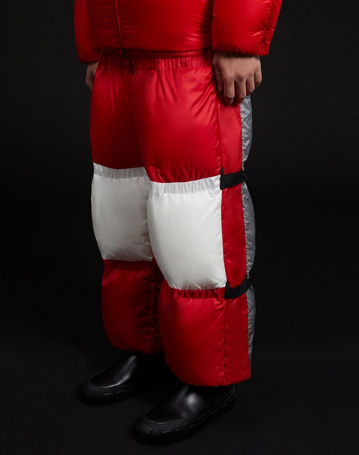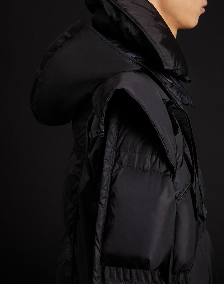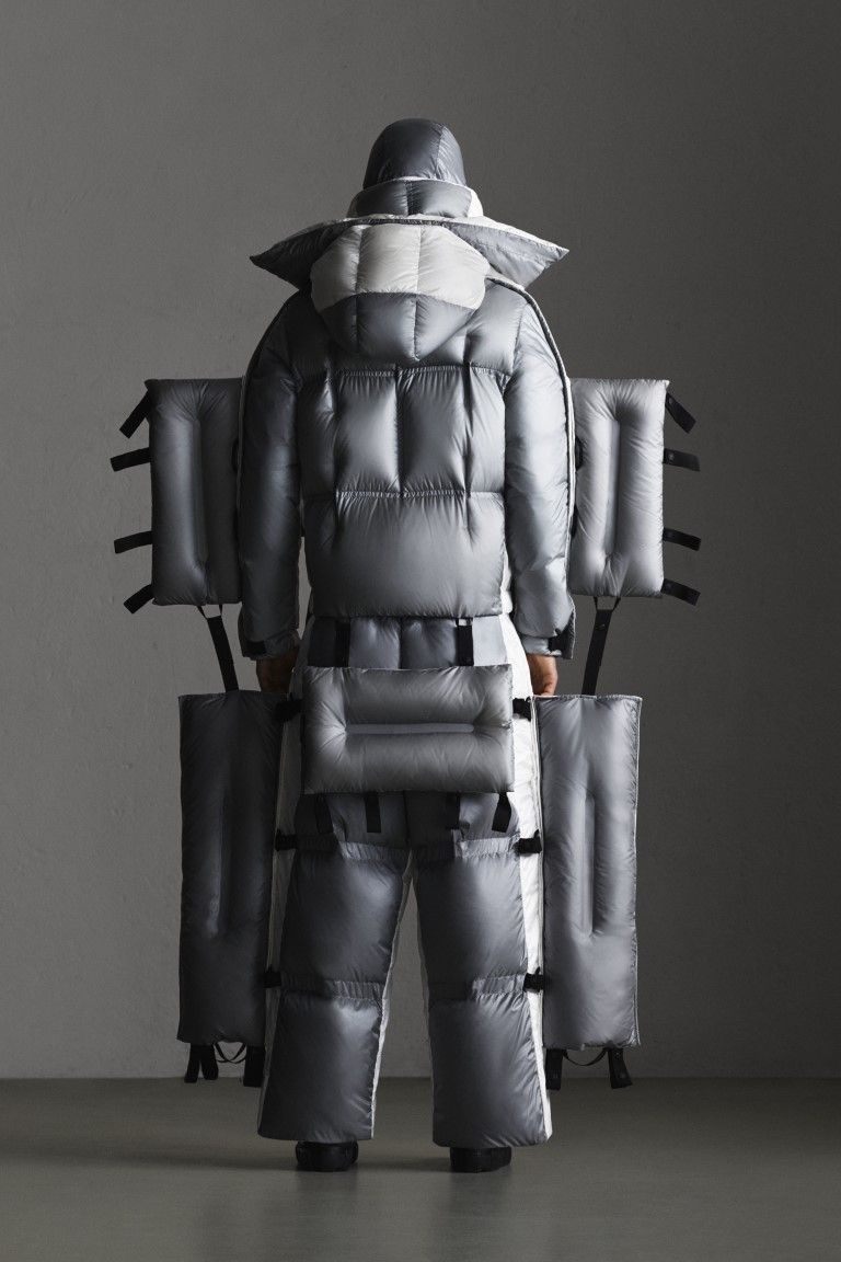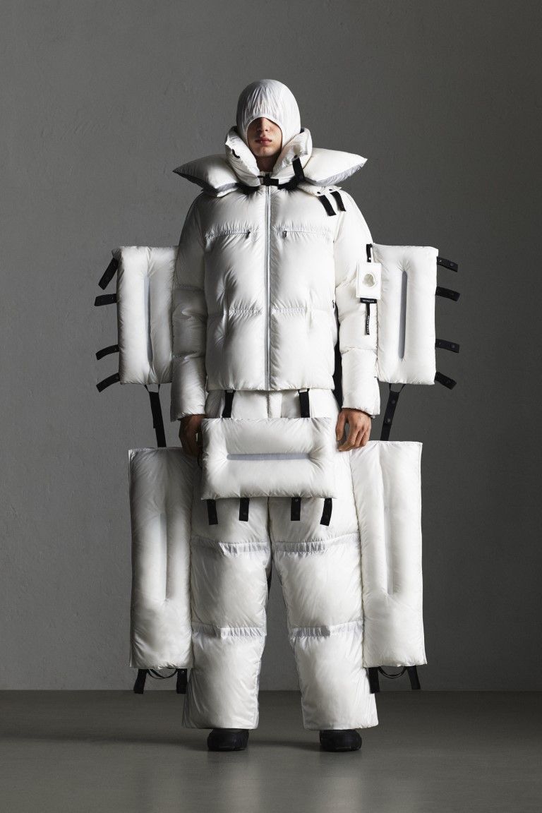 [La giacca] sembra pesante e tirata ma in realtà è un capo leggerissimo. Questo è parte del successo di Moncler come brand – è un capo perfetto per i viaggi perché può essere compattato in poco spazio. Non serve preoccuparsi di stirarlo col ferro o col vapore. La cosa fantastica della struttura di queste giacche è che si gonfiano da sole, in qualche modo […]. Quando stavamo creando i pezzi della collezione, avevamo una regola: stiamo costruendo il capo più leggero possibile?