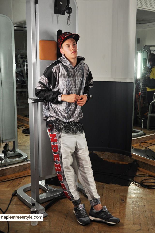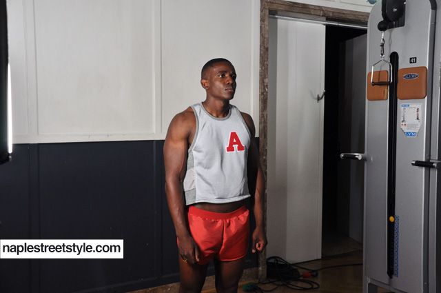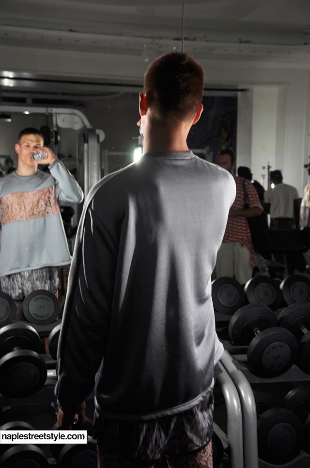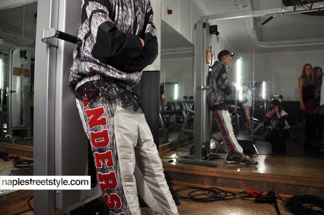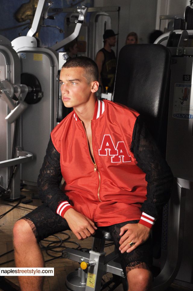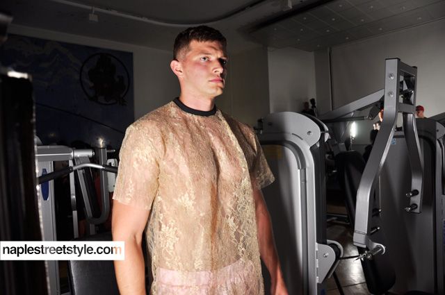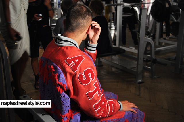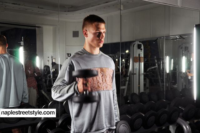 As every year, CPH Fashion week shows the Scandinavian designer’s talent who work hard to compare the town to the coolest city in the world. So thanks to the amazing designers‘s work, as Henrik Vibskov, Stine Goya and , the last Danish talent, Astrid Andersen, CPH is now a benchmark for fashion worldwide. Astrid Andersen, presents her SS 2012 collection in the swankiest gym in town, subverting fashion show conventions: a gang of well – trimmed Eastern Europe men pump iron showing a new streetstyle design. The sound of violins sign the unusual date between All Stars Olympic team and street gangsta.