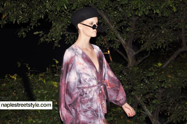 Lo show di Henrik Vibskov, invece è sempre il più atteso e come ogni anno non delude mai. Un vero e proprio evento che richiama non solo gli addetti specializzati ma soprattutto la folla di curiosi e fashion addicted pronti ad immortalare ad immortalarsi. Ambientata nei giardini del Gallery Forum plads, la performance è stata caratterizzata da un imponente struttura di porte girevoli che costituivano l’intera scenografia dello show. Ad ogni passaggio la porta si apriva quasi ad invitare lo spettatore ad entrare nel mondo complesso dello stilista dove ancora una volta l’accurata ed attenta reinterpretazione dei classici indumenti da lavoro , questa volta tocca agli antichi minatori, insieme all’utilizzo di colori forti e delle amate stampe floreali la facevano da padrone. Lo stile oversize non viene abbandonato anche se segue maggiormente le linee del corpo proprio a sottolineare la nuova maturità del designer.
