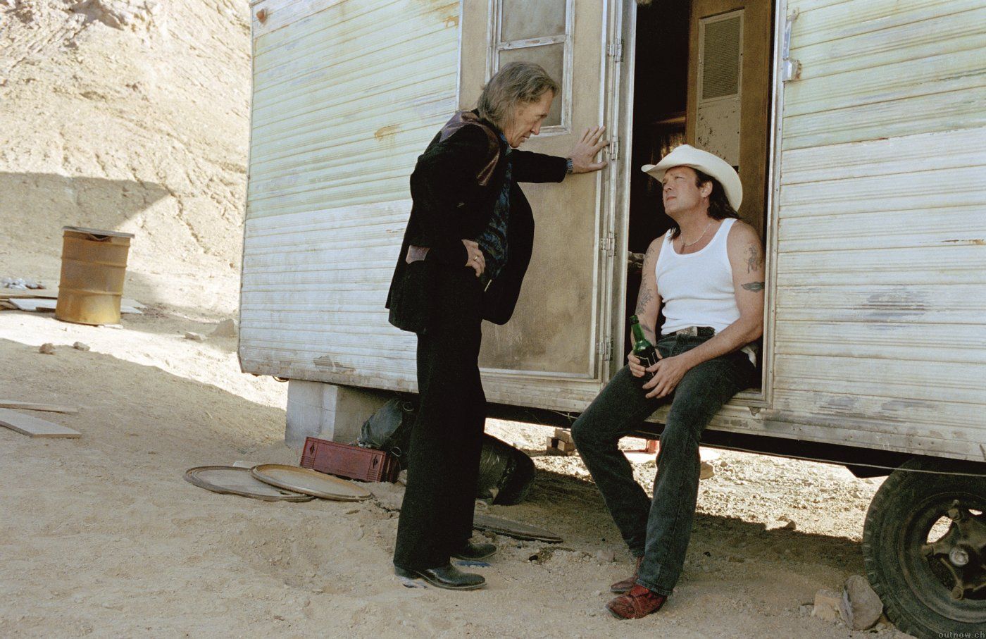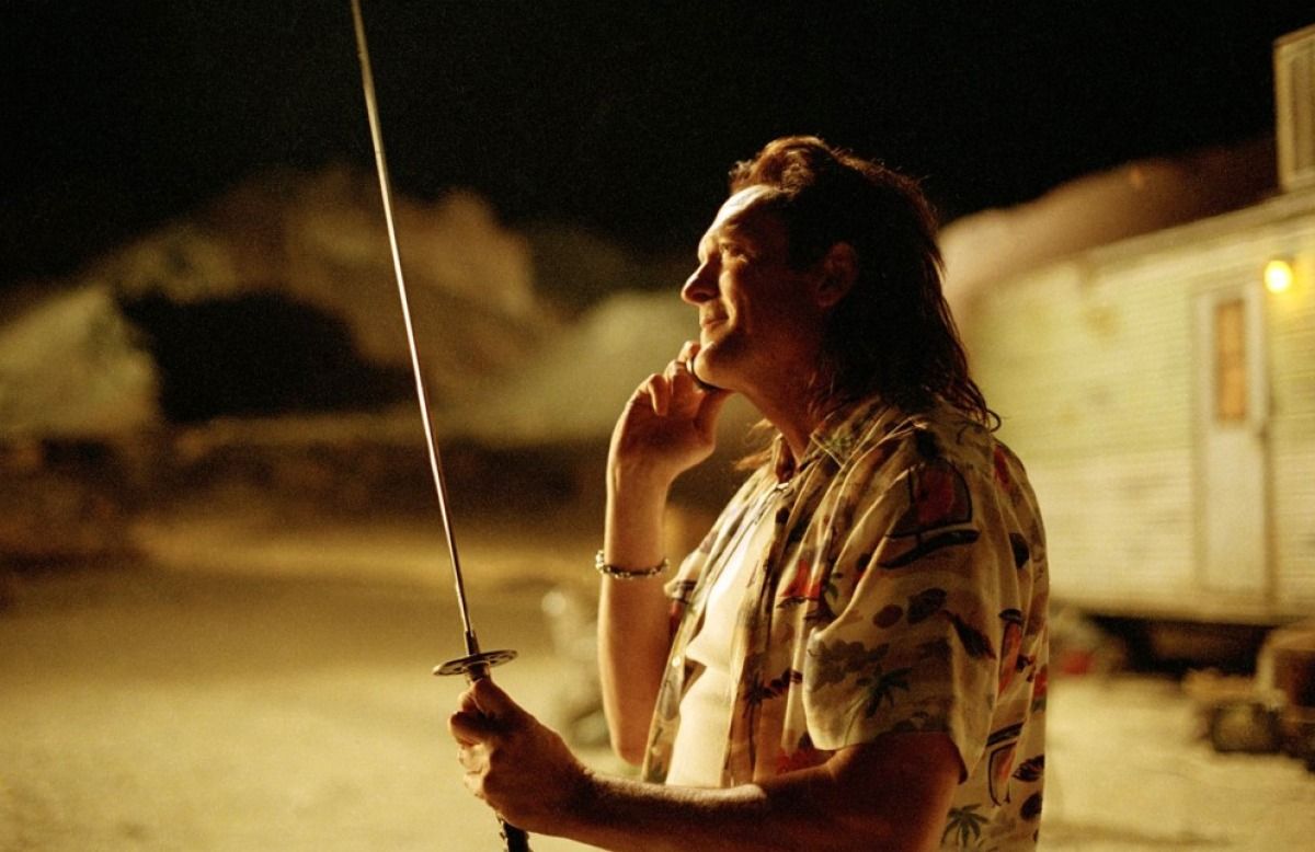 Anche se Kill Bill è un’epopea tutta al femminile, il racconto di come una madre si riunisce alla propria figlia, due personaggi maschili incidono profondamente sulla sua narrativa: il Bill del titolo, interpretato dall’iconico David Carradine e il sicario in pensione Budd. I loro due look sono assai simili e costituiscono due interpretazioni “alta” e “bassa” del medesimo trend: quello del cowboy-chic che ha dominato gran parte del 2019. Il personaggio di Bill è vestito con un completo nero con inserti in pelle, stivali neri e camicia: una moderna interpretazione del “man in black” degli spaghetti-western con un’estetica severa, che esprime autorità e forza. Il più vicino all’estetica contemporanea è il Budd di Michael Madsnen, che vediamo in jeans, stivali e cappello da cowboy e che sfoggia due camice diverse: una è la classica bowling shirt blu e nera, l’altra una camicia hawaiiana con stampe di onde e di palme. L’estetica del cowboy “moderno” è di sicuro la più grande profezia in fatto di moda contenuta nel film.