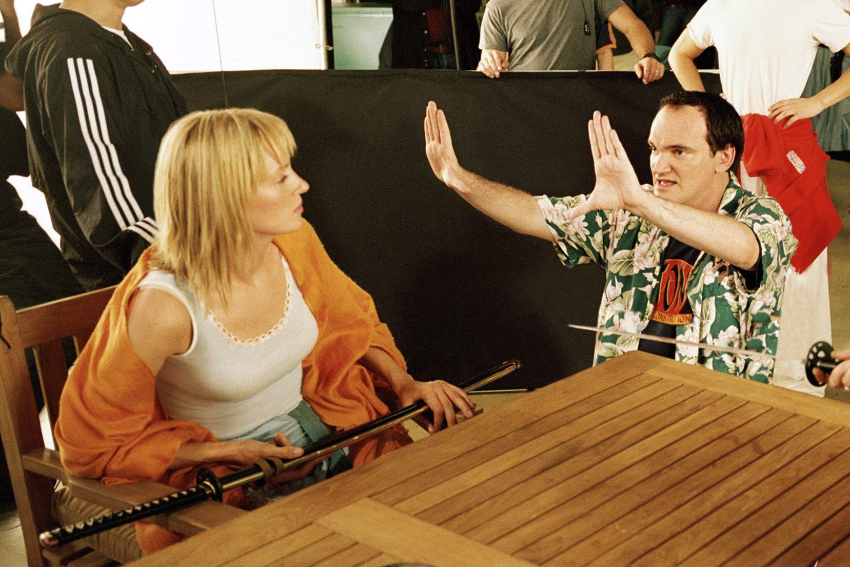 Il più iconico di tutti gli outfit è la tuta gialla e nera indossata da Uma Thurman durante il suo scontro con gli 88 Folli, una falange di assassini della yakuza in completo nero e maschera di pelle. Nessuna eroina d’azione, prima di questo momento, aveva sfoggiato un look così appariscente e colorato. Lo stereotipo dell’eroina anni ’90 prevedeva come unico outfit un onnipresente tuta nera o comunque dei vestiti estremamente rivelatori: Trinity di The Matrix e Selene di Underworld erano vestite di latex e pelle nera, la Nikita dell’omonimo film di Besson era spesso in lingerie e tacchi alti mentre Ellen Ripley di Alien e Sarah Connor di Terminator indossavano semplici canottiere. La Sposa di Uma Thurman invece non ha mai avuto niente di sensuale, nessuna scollatura, nessuna pelle scoperta. Il suo outfit giallo e nero e le sue Onitsuka Tiger Mexico 66 erano orientate alla praticità: la Sposa era una guerriera non una seduttrice.