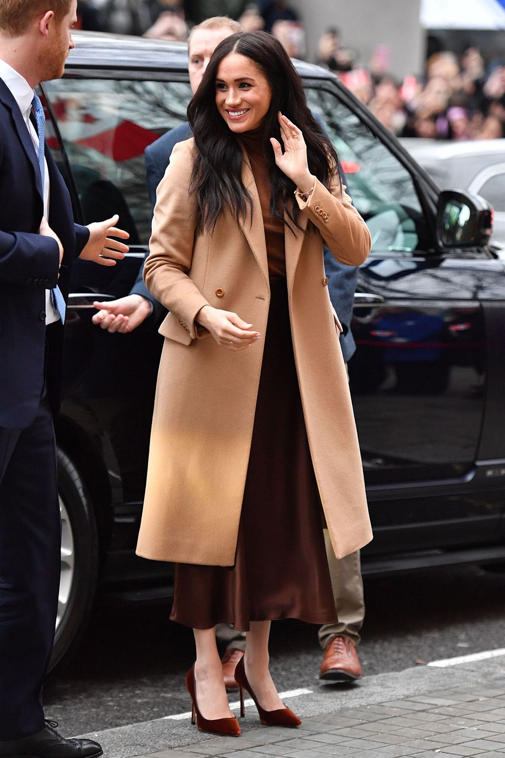 Nella sua prima apparizione pubblica dell'anno, in Canada qualche giorno fa, la Duchessa del Sussex ha indossato un cappotto color cammello che ha provocato un aumento del 230% in 36 ore per capi simili, mentre le ricerche per le pumps di Jimmy Choo Romy sono aumentate del 126%.
