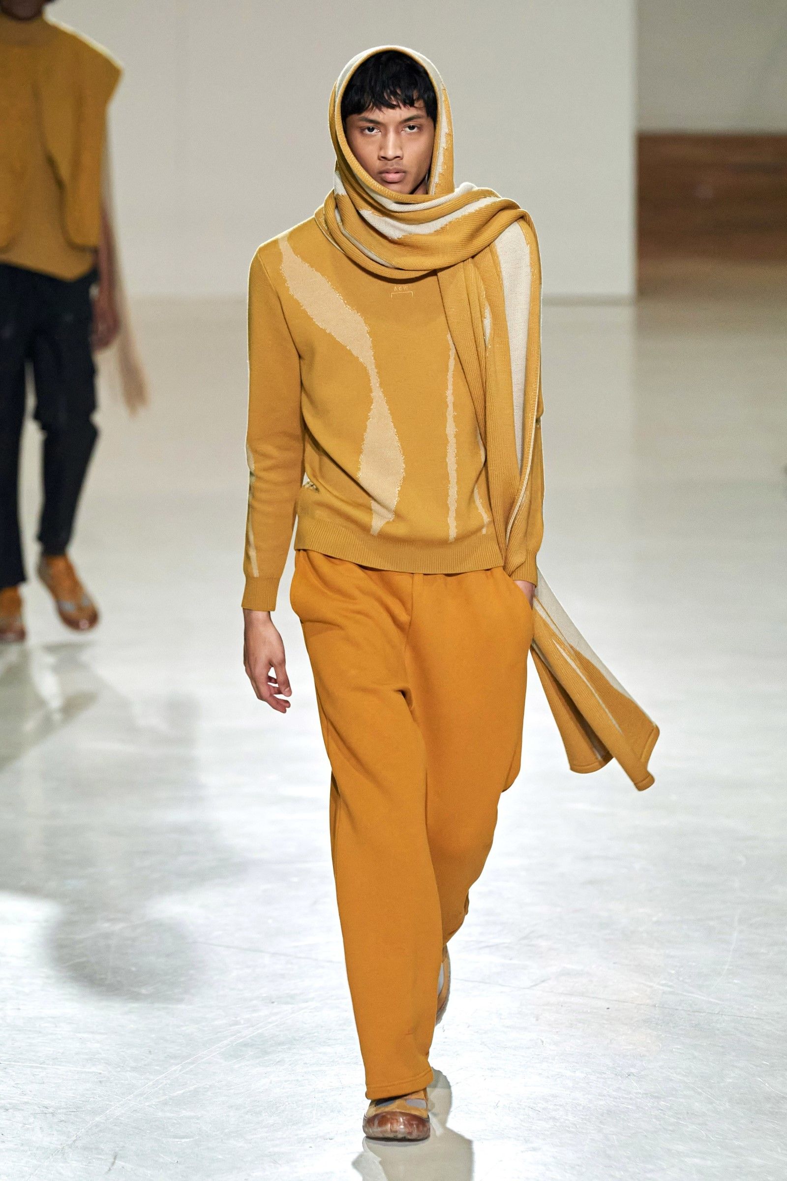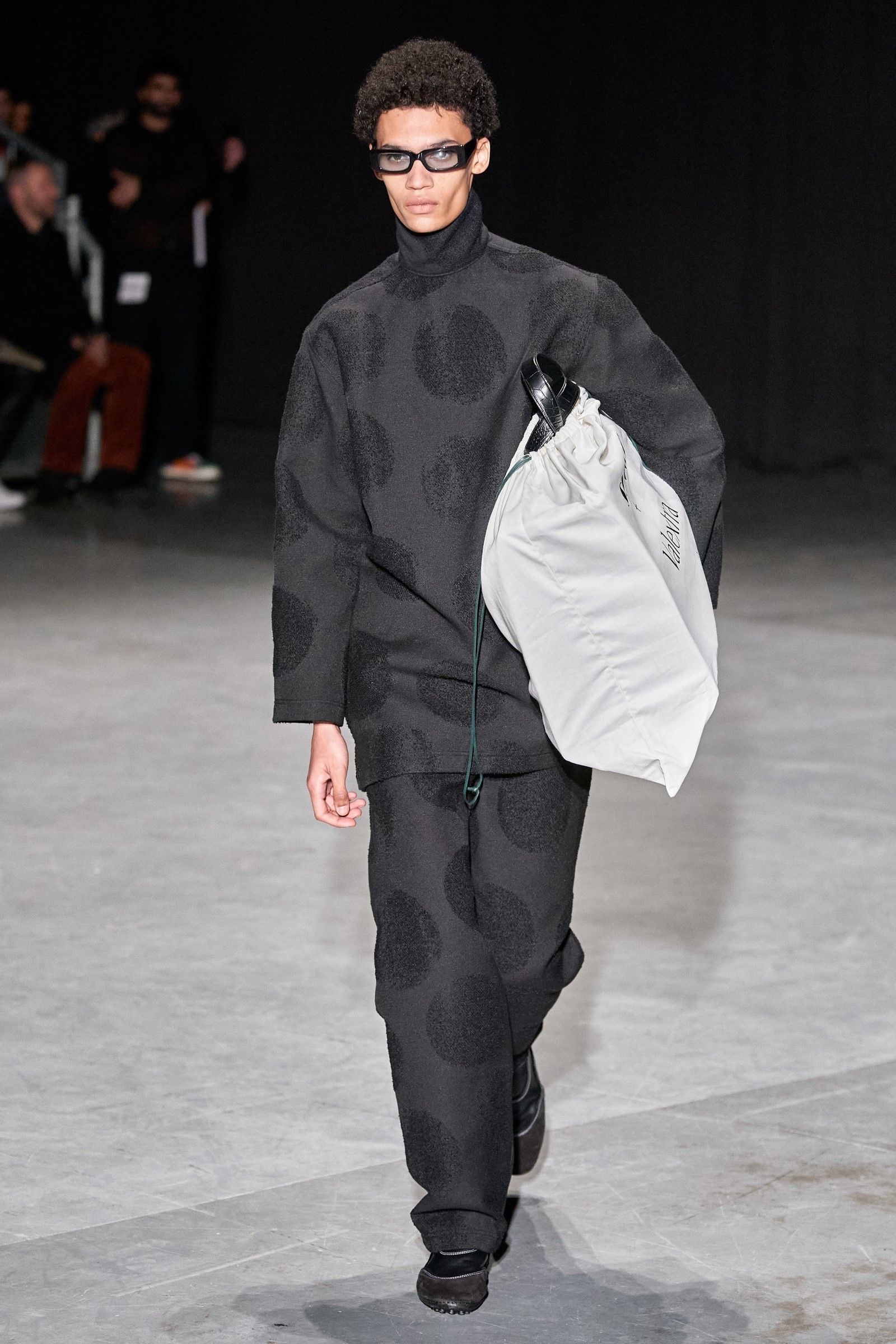 Il designer britannico Samuel Ross ha presentato il suo lavoro al pubblico milanese per la prima volta in questa stagione. Come protetto di Virgil Abloh, il suo lavoro documenta l'evoluzione dello streetwear. Il designer di A-COLD-WALL* ama scavare in profondità per i suoi concetti, e in questa stagione ha tratto ispirazione dai 300,000 anni di storia dell’homo sapiens sulla Terra. La collezione stessa era un crossover tra streetwear e workwear. Dettagli intricati emergevano da modelli e colori vivaci. Anche se non è lo spettacolo plateale che molti si aspettavano, il designer ha spostato la sua attenzione sulla creazione di una collezione di vestiti facilmente spendibili nel mercato dello streetwear.