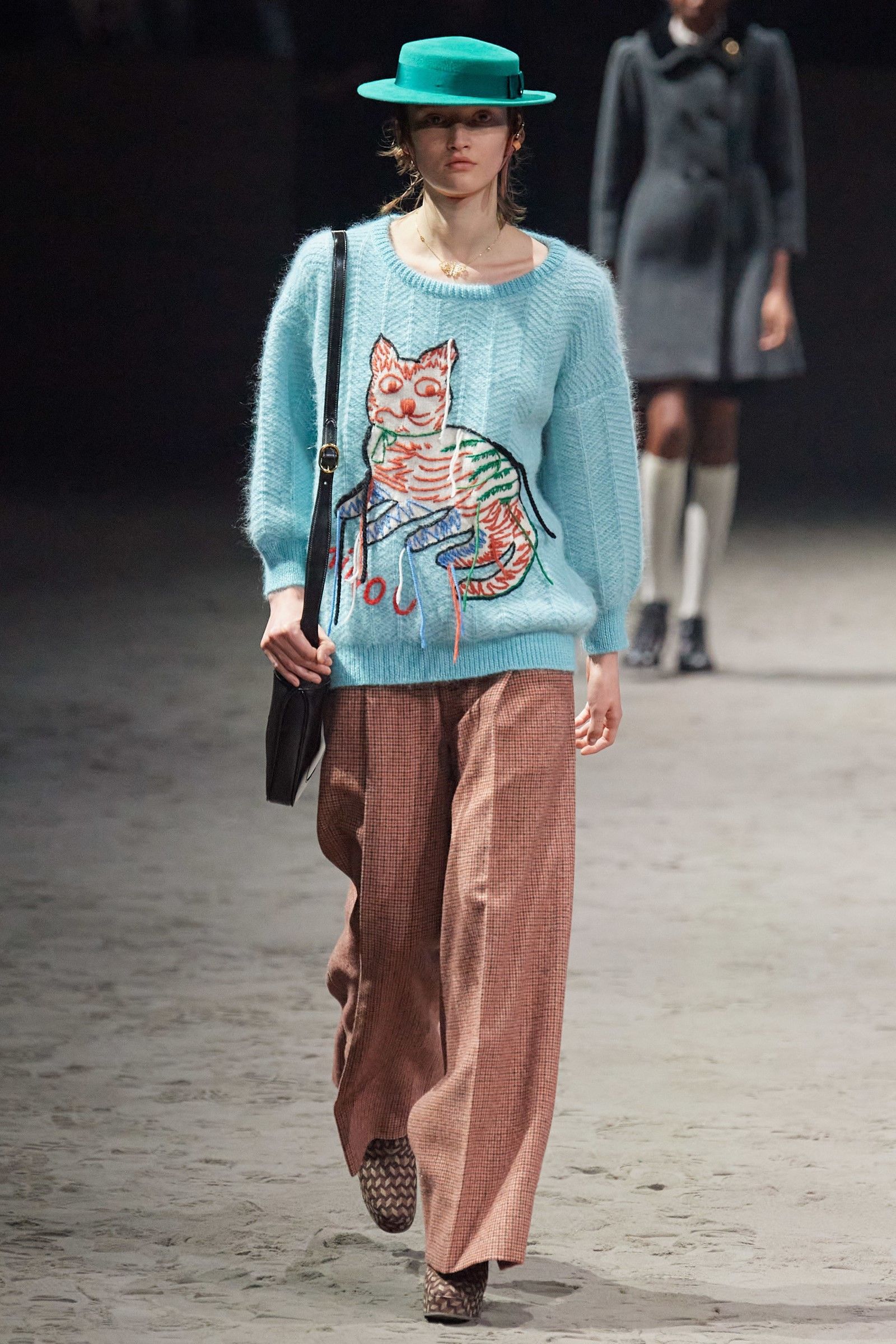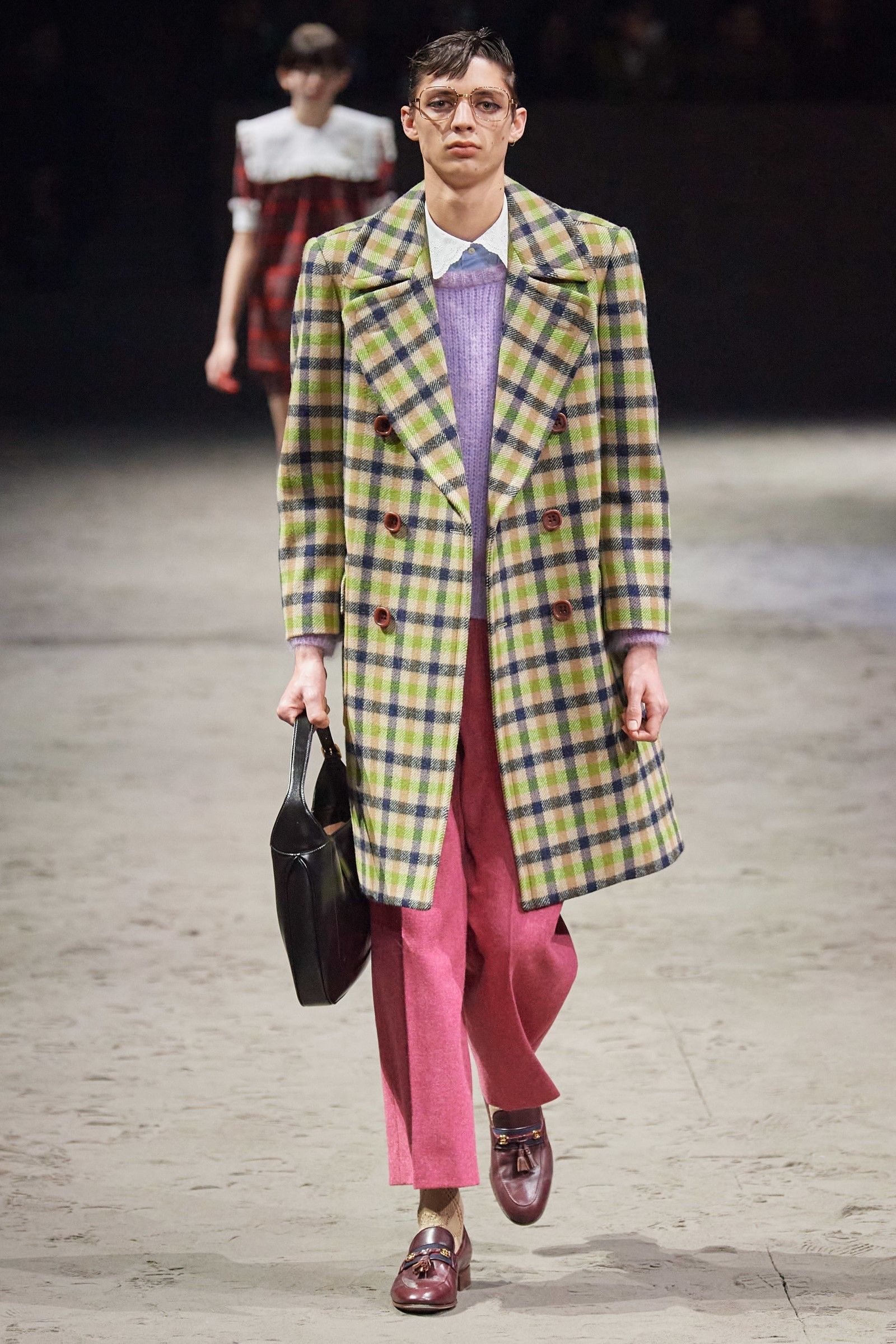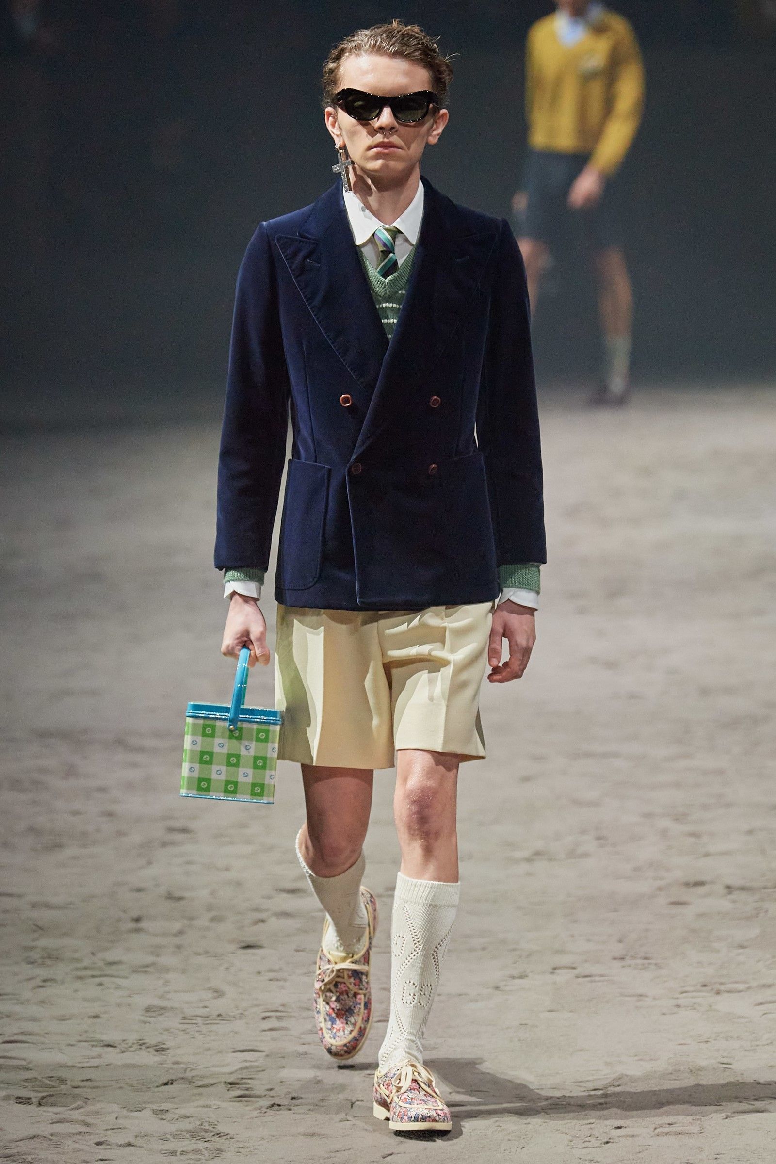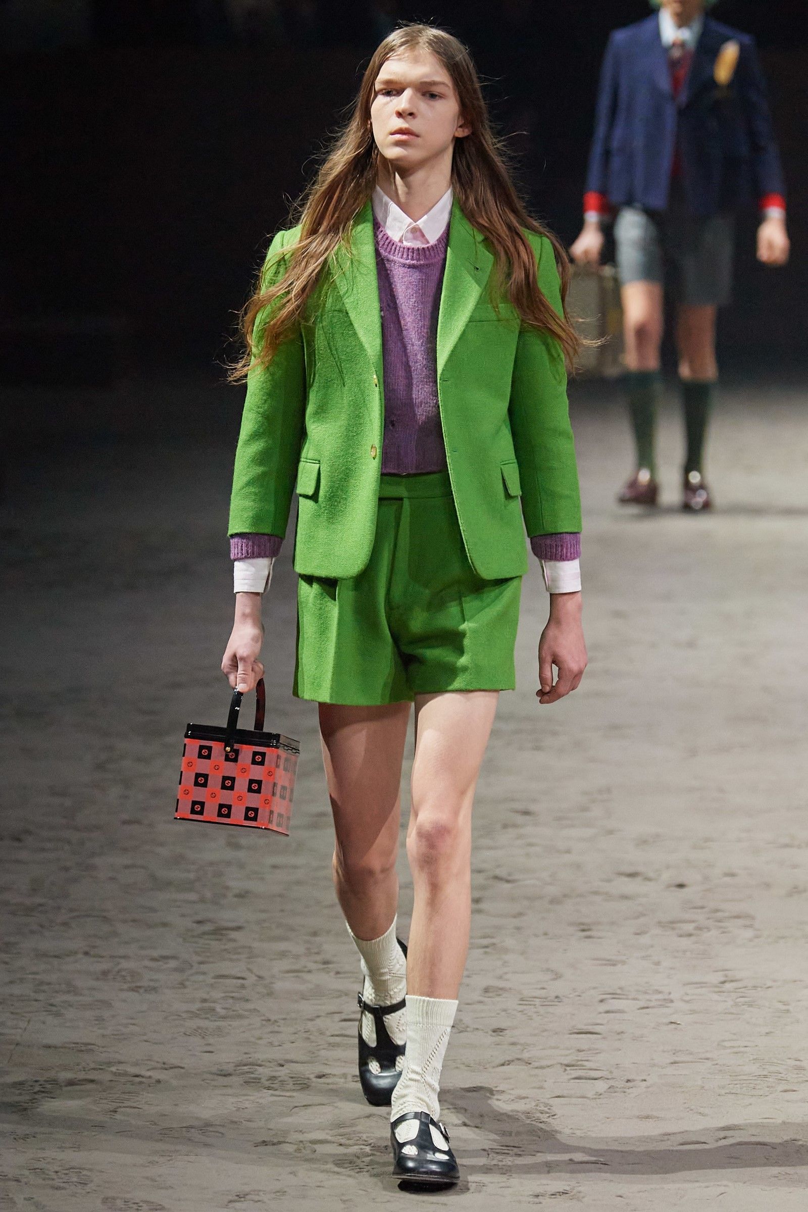 Alessandro Michele, invece, che celebrava il suo quinto anniversario in Gucci, ha colto l'occasione per sfidare del tutto la definizione moderna della mascolinità. La sua collezione ha decostruito i principi tradizionali dell'abbigliamento maschile e li ha assemblati senza soluzione di continuità con aspetti femminili, dando vita a una collezione dall’aspetto gender-neutral. Invece di scegliere uno degli estremi nello spettro dei generi, si è posizionato a metà. Ogni look era tanto adatto alla donna quanto all'uomo, sia che si tratti di un mini abito, che di un crop-top o di un abito classico. In omaggio al proprio anniversario, il designer ha anche rivisitato alcuni dei suoi pezzi più popolari. Gli iconici mule Princetown di Gucci hanno fatto un ritorno così come alcuni altri pezzi storici.