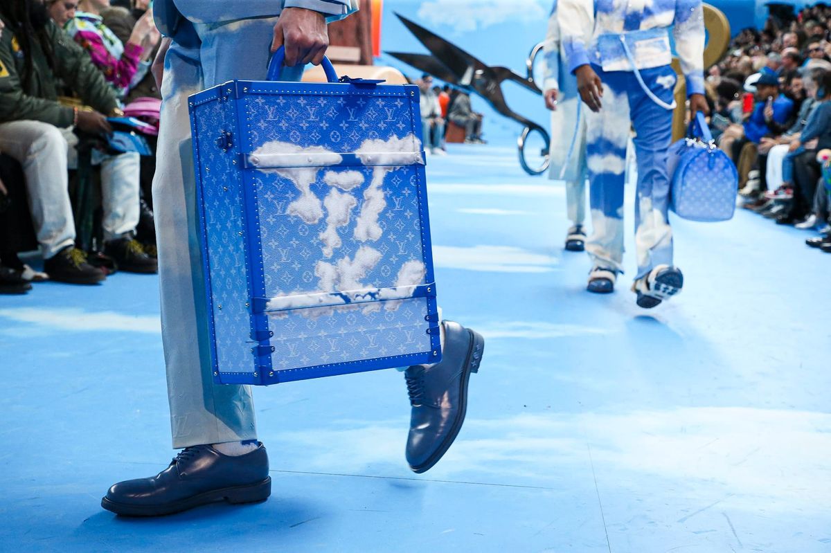Lo show intitolato “Heaven on Earth” è ambientato in un paradiso onirico e artificiale con oggetti sproporzionati e nuove bianche a macchiare lo sfondo azzurro del setting, citazione del film The Truman Show. Nella sfilata di Virgil tempo non esiste, si ferma - o va alla rovescia - smette di imporre la sua tirannia inesorabile sull’Uomo e lo proietta in una dimensione d’incanto, dove le regole del mondo non esistono. I riferimenti all’arte surrealista - in particolare a René Magritte - sono evidenti e da sempre cari a Virgil: il movimento artistico iniziato negli anni ‘20 era interessato all’inversione dell'ordinario, ridefinendo il familiare di nuovo significato. Dalì imita l’arte nella vita, lo streetwear di Virgil imita vestito formale.