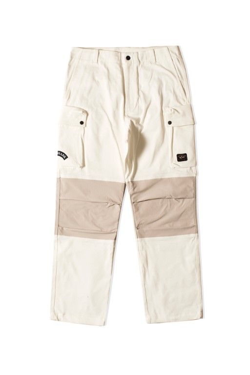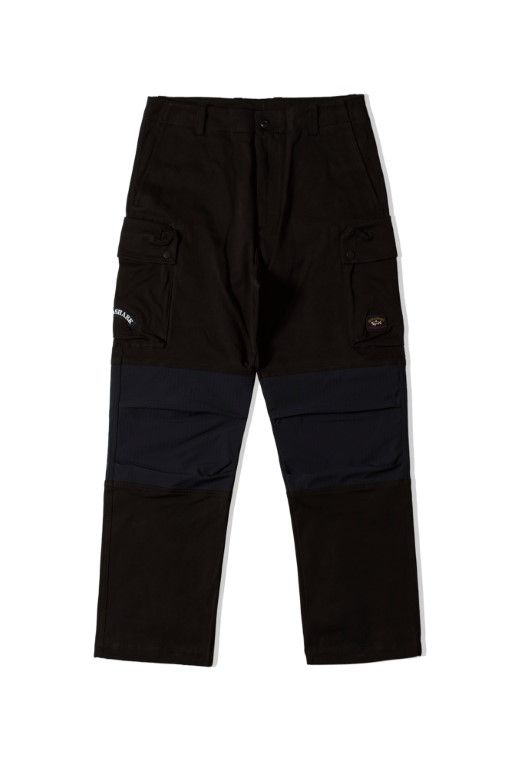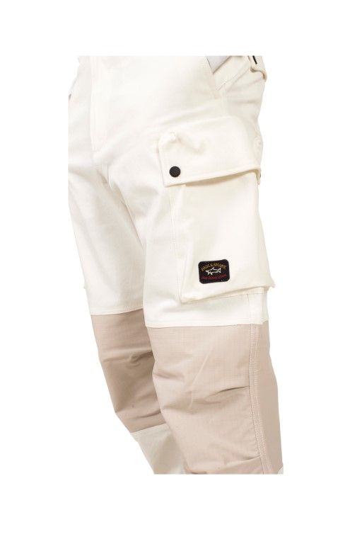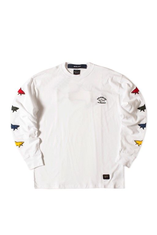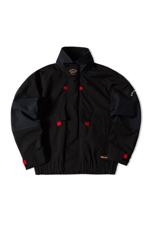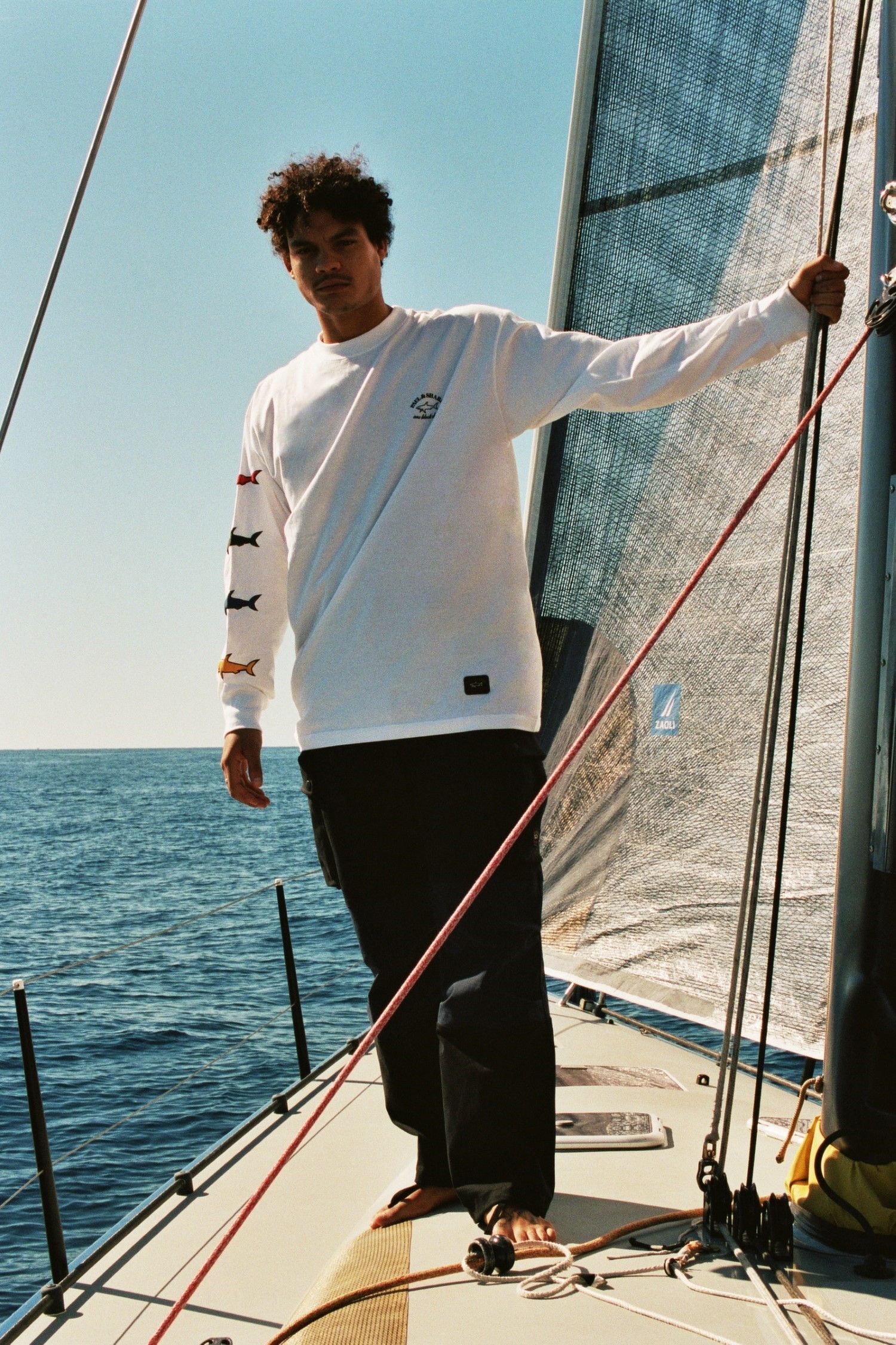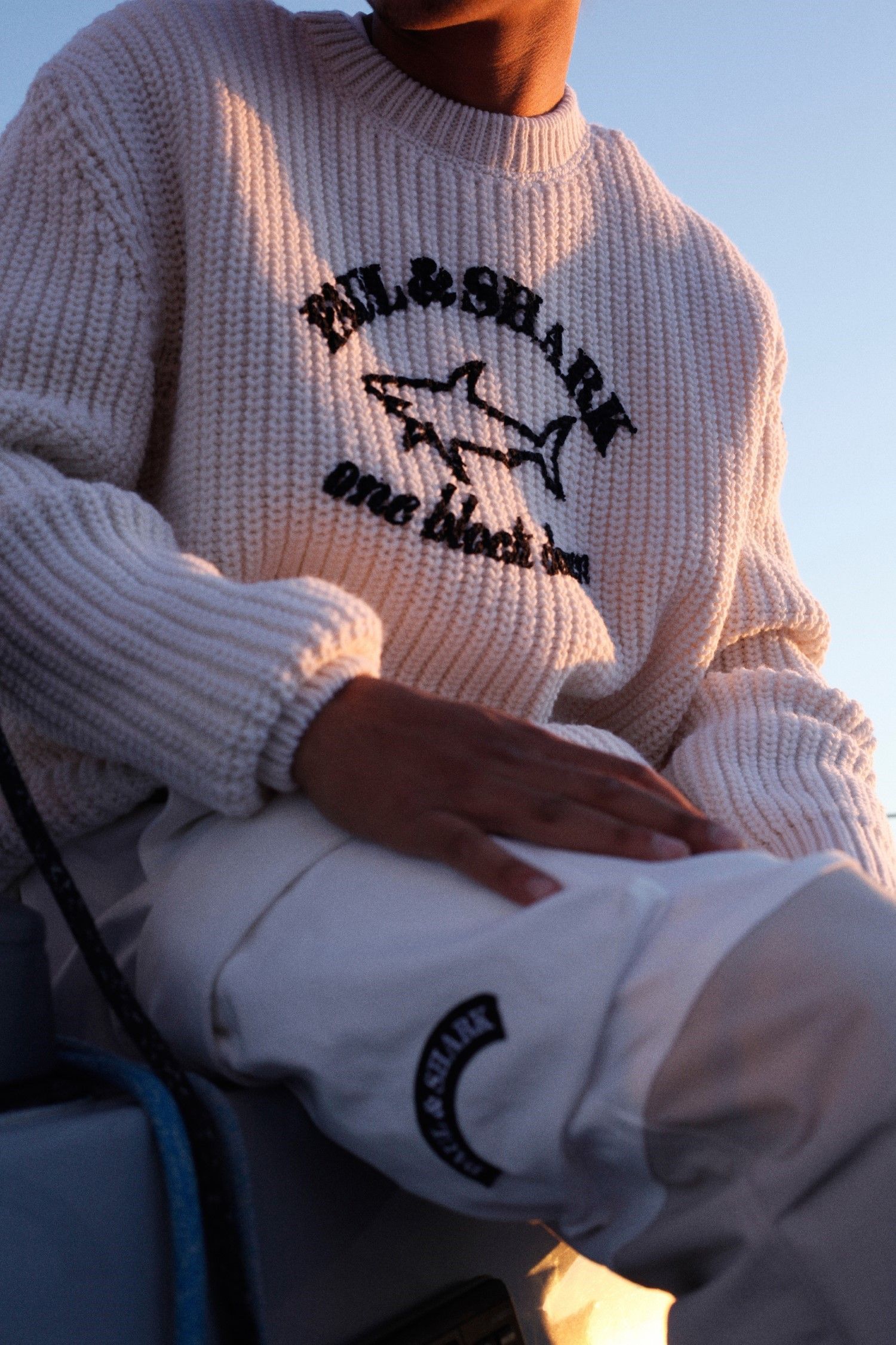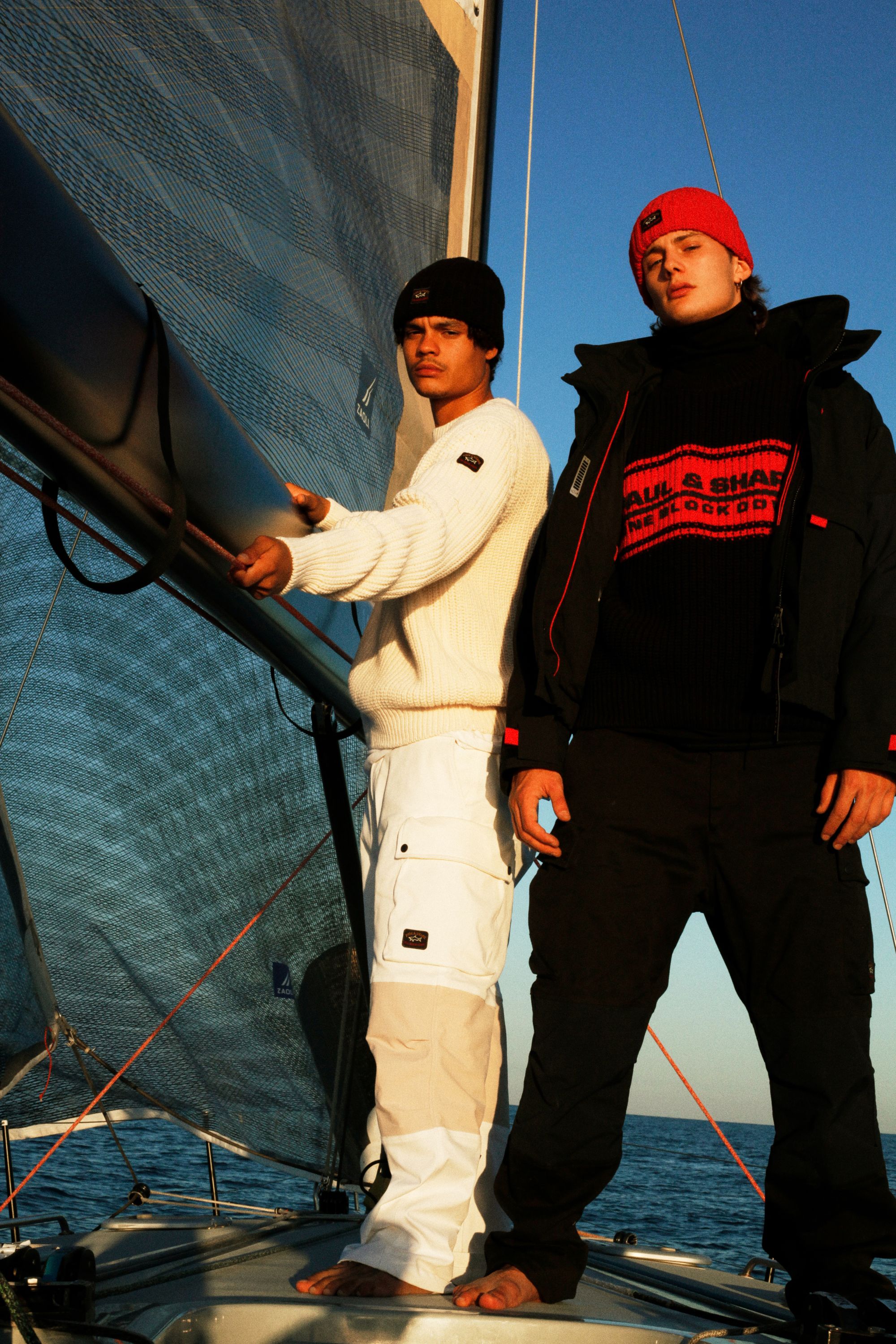 I due item più interessanti della collezione sono i pantaloni tecnici e la maglieria. I pantaloni cargo, presenti nelle colorway bianca e nera, hanno un fit largo e due voluminose tasche a soffietto su una delle quali si trova la classica patch di Paul & Shark, mentre sul retro del ginocchio sinistro una placca in gomma presenta un doppio branding. Il maglione, sia nella colorazione rossa e nera che in quella total white, è invece direttamente ispirato ai classici maglioni da marinaio e il nome dei due brand è ricamato sul petto. Il resto della collezione include outerwear, long-sleeve, felpe crewneck e accessori come cappelli e portachiavi.