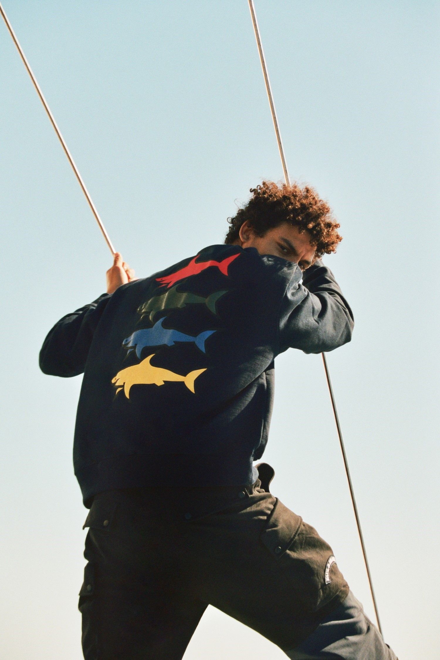 La collezione è insieme una moderna rilettura dell’uniforme da pescatore e una fusione fra lo yachtwear e le sensibilità streetwear di One Block Down. I migliori design dell’archivio di Paul & Shark sono stati rivisitati con nuove colorway, dettagli di lavorazione e con una rivisitazione del logo che raffigura lo squalo.