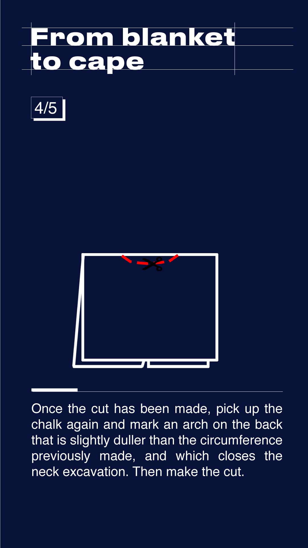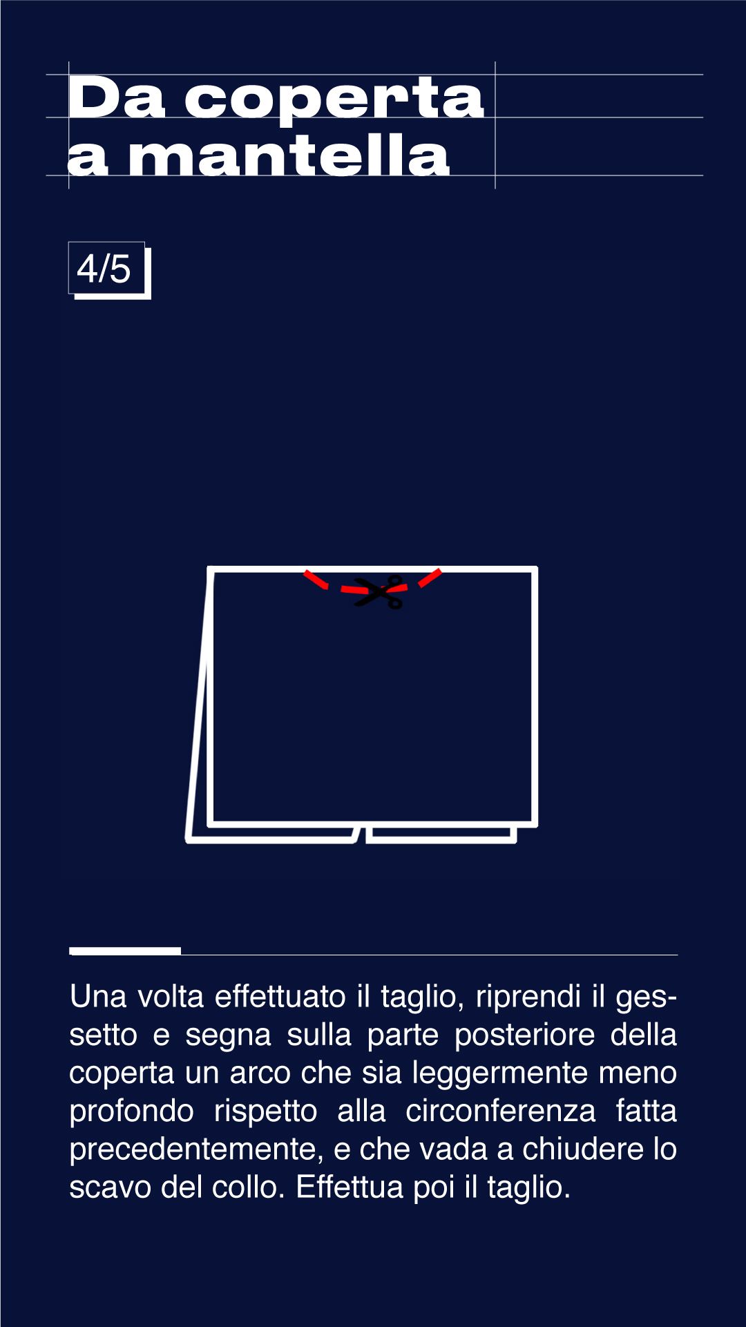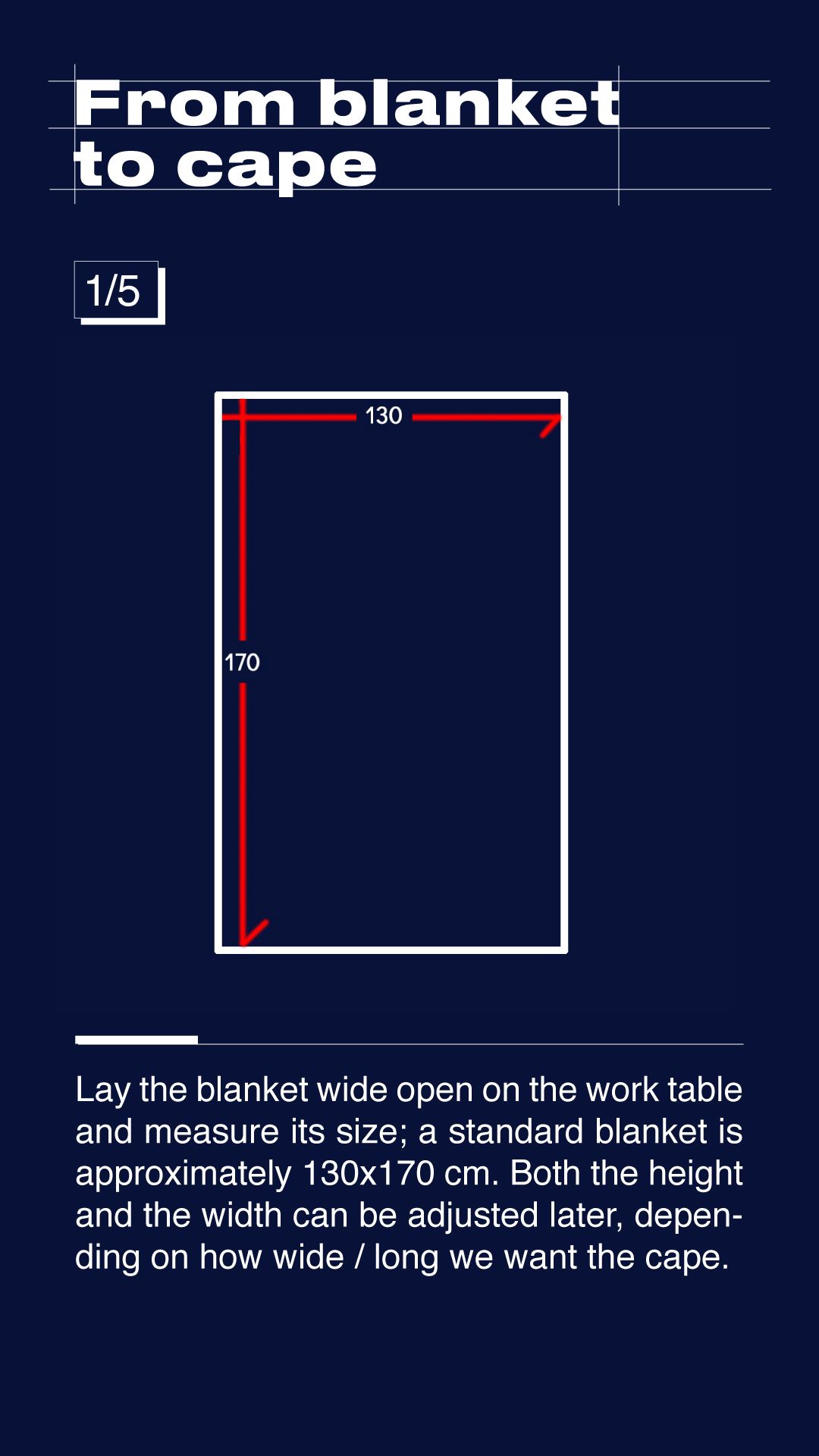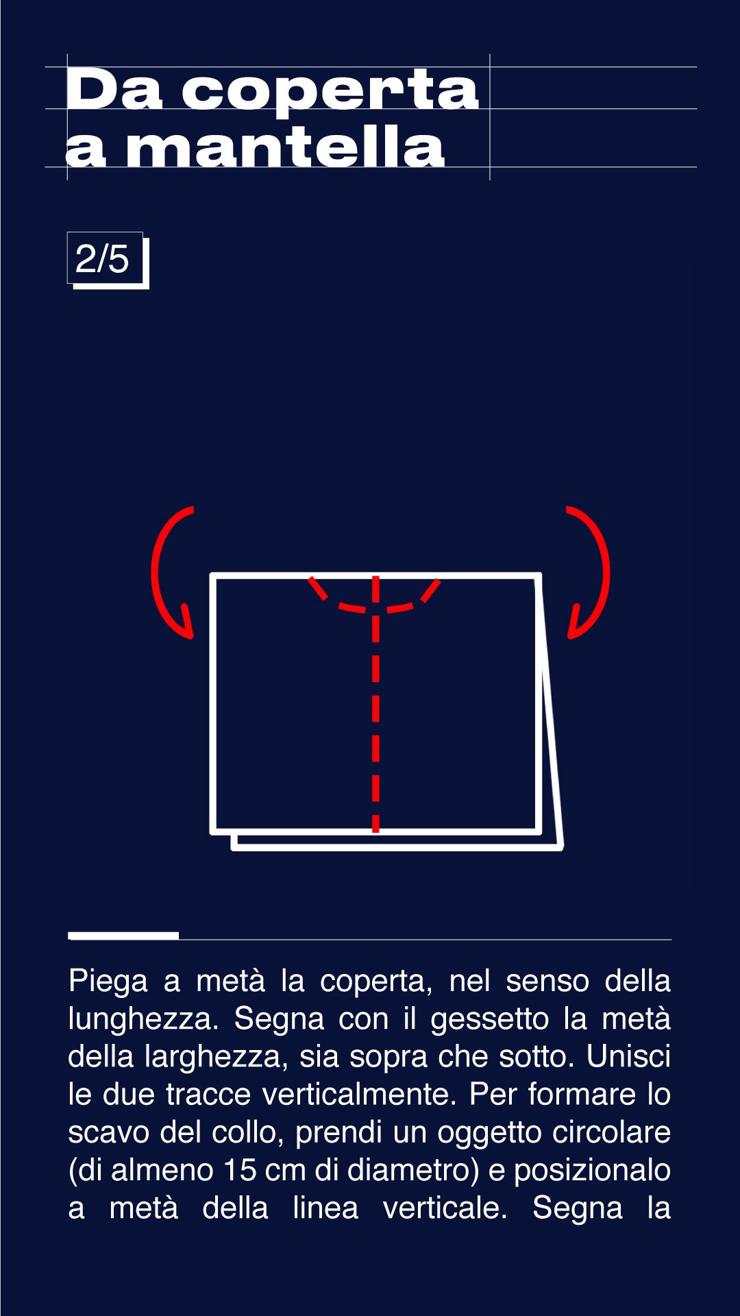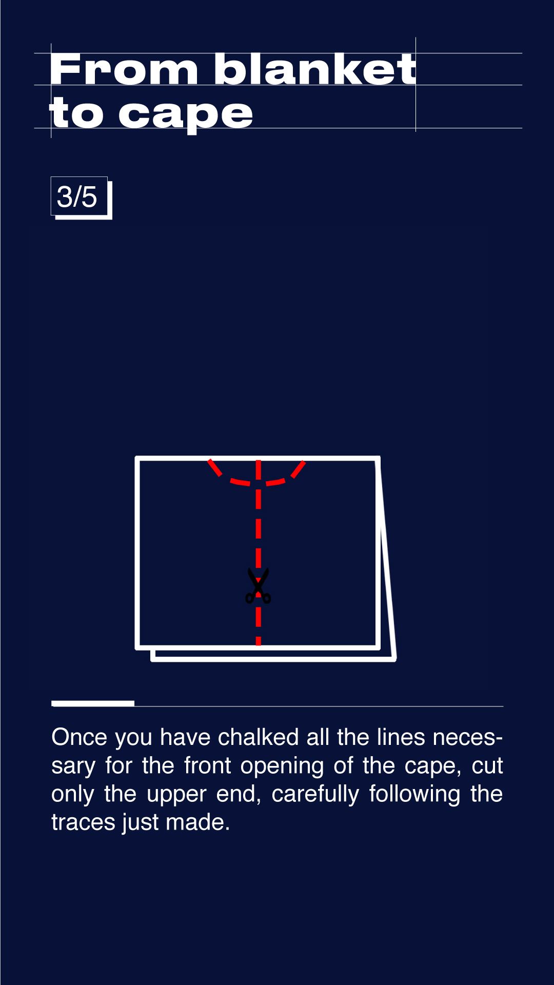 Partendo da questa consapevolezza, il pile che abbiamo tutti a casa non sarà sicuramente un tessuto riciclato, ma possiamo pensarci noi a renderlo tale, trasformando una semplice coperta in una mantella da indossare nelle giornate più fredde. La coperta utilizzata è un plaid 130x170 cm, 100% poliestere, di colore bianco e con frange alle due estremità. Per rendere la futura mantella più minimale e semplice possibile, occorre eliminare le frange, lasciando le due estremità a taglio vivo, senza rifiniture inutili. Less is more.