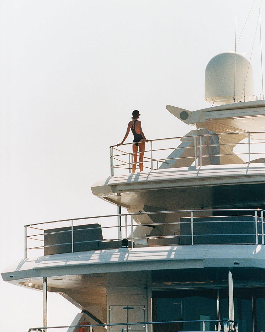 A sublimare l'idea di estraneità, di allontanamento da un mondo comune e accessibile a tutti, Lebon ha giocato con codici visivi e inquadrature che fanno riferimento ai classici scatti dei paparazzi, che passano le estati puntando l'obiettivo verso gli yacht di celeb e star. Sebbene questo tipo di fotografia non sia una novità assoluta nel mondo della moda - Balenciaga ci costruì un’intera campagna nel 2018 - in questo caso sembra che la citazione sia univoca: Lady D con un costume intero azzurro fotografata sul trampolino di uno yacht in Francia nel 1997, l’anno della sua morte.